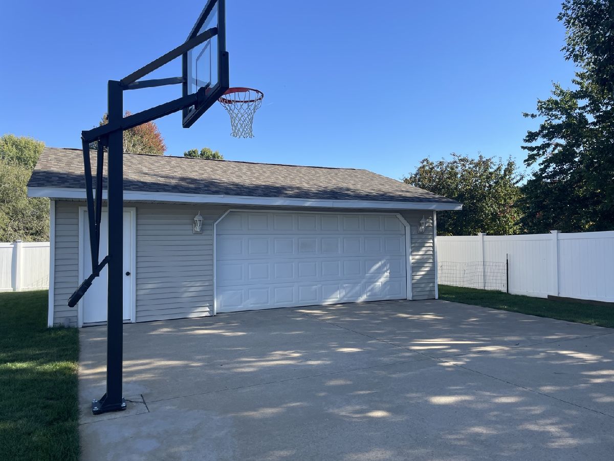 Gorgeous home in East Coloma area! Perfect family home with 3 bedrooms, 2 1/2 baths. Grand living room features vaulted ceiling and gas fireplace. Sunshine bright kitchen/dining area with breakfast bar. Main floor laundry and handy 1/2 bath. Roomy bedrooms and main bath with tub/shower and double sink vanity. Primary bedroom features 2 closets and private bath with jetted tub. You'll love the extra space offered in the full finished basement, game room area, family room and separate workout room. Furnace-2024. Central Air-2017. Roof-2023. Iron Filter-2025. Water softener-2022. Drainfield-2023.There's an attached, finished 2 car garage and an additional 2 1/2 car garage with basketball court in the backyard! Beautiful paver patio. Fully privacy fenced yard. And an adorable playhouse!