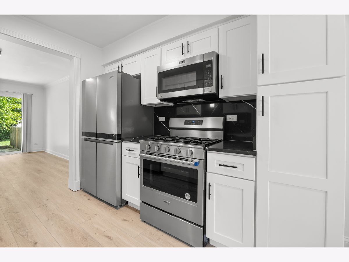A place to call home: Totally Rehabbed 3-Bedroom Duplex. Step inside this beautiful, completely rehabbed 3-bedroom, 2.5-bath duplex and discover your new home! This residence offers expansive living space with a fresh, contemporary feel, featuring new LVP flooring and a fresh coat of paint throughout. The eat-in kitchen is a chef's delight, boasting brand new cabinets, quartz countertops with a stylish backsplash, and all new stainless-steel appliances. Every bathroom has been thoughtfully redone with new vanities, bathtubs, shower surrounds, and modern light fixtures. Enjoy abundant natural light thanks to all new windows and a new patio door that leads to a large, private patio and yard-perfect for entertaining or simply relaxing outdoors. Located is fantastic! This home provides the perfect blend of comfort and convenience. The best part? There are no association fees.