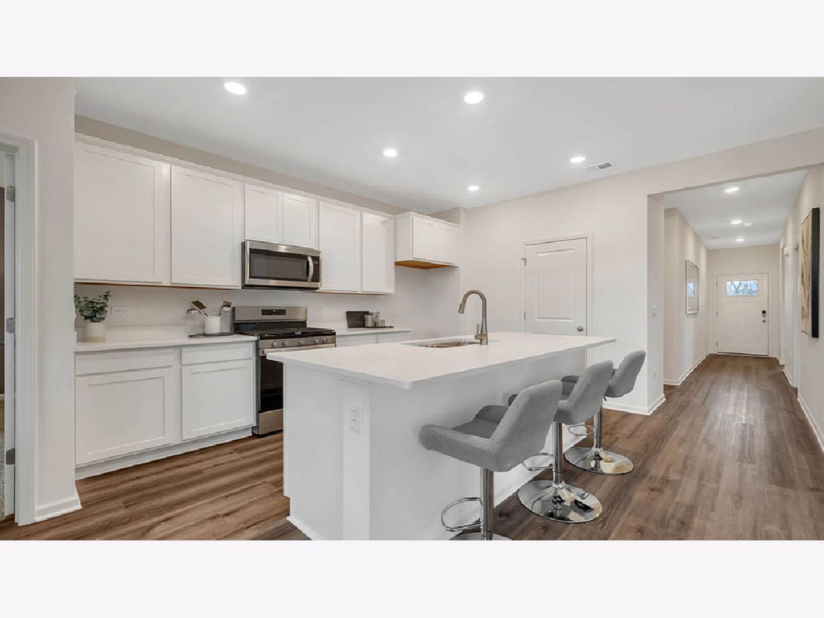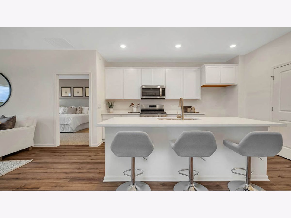 Envision yourself at 1105 Bluebell Lane, Bartlett, Illinois, a beautiful new home in The Grasslands community. This ranch duplex home will be ready for a Summer move-in! Homesite includes fully sodded yard, landscaping and covered back patio. The Taylor offers 1,505 square feet of living space with 3 bedrooms, 2 baths, and 9-foot ceilings. When you first enter the home you will see the secondary bedroom, full bathroom, and linen closet. Down the hall, you will walk into the open concept great room, kitchen, and dining. The kitchen layout includes a large island with an overhang for stools, 42-inch designer cabinetry with crown molding and soft close drawers. Additionally, the kitchen features a pantry, modern stainless-steel appliances, quartz countertops, and easy-to-maintain luxury vinyl plank flooring. Enjoy your private get away with your spacious primary bedroom and en suite bathroom with a raised height dual sink, quartz top vanity, and walk-in shower with clear glass shower doors. All Chicago homes include our America's Smart Home Technology, featuring a smart video doorbell, smart Honeywell thermostat, smart door lock, Deako smart light switches and more. Photos are of actual home.