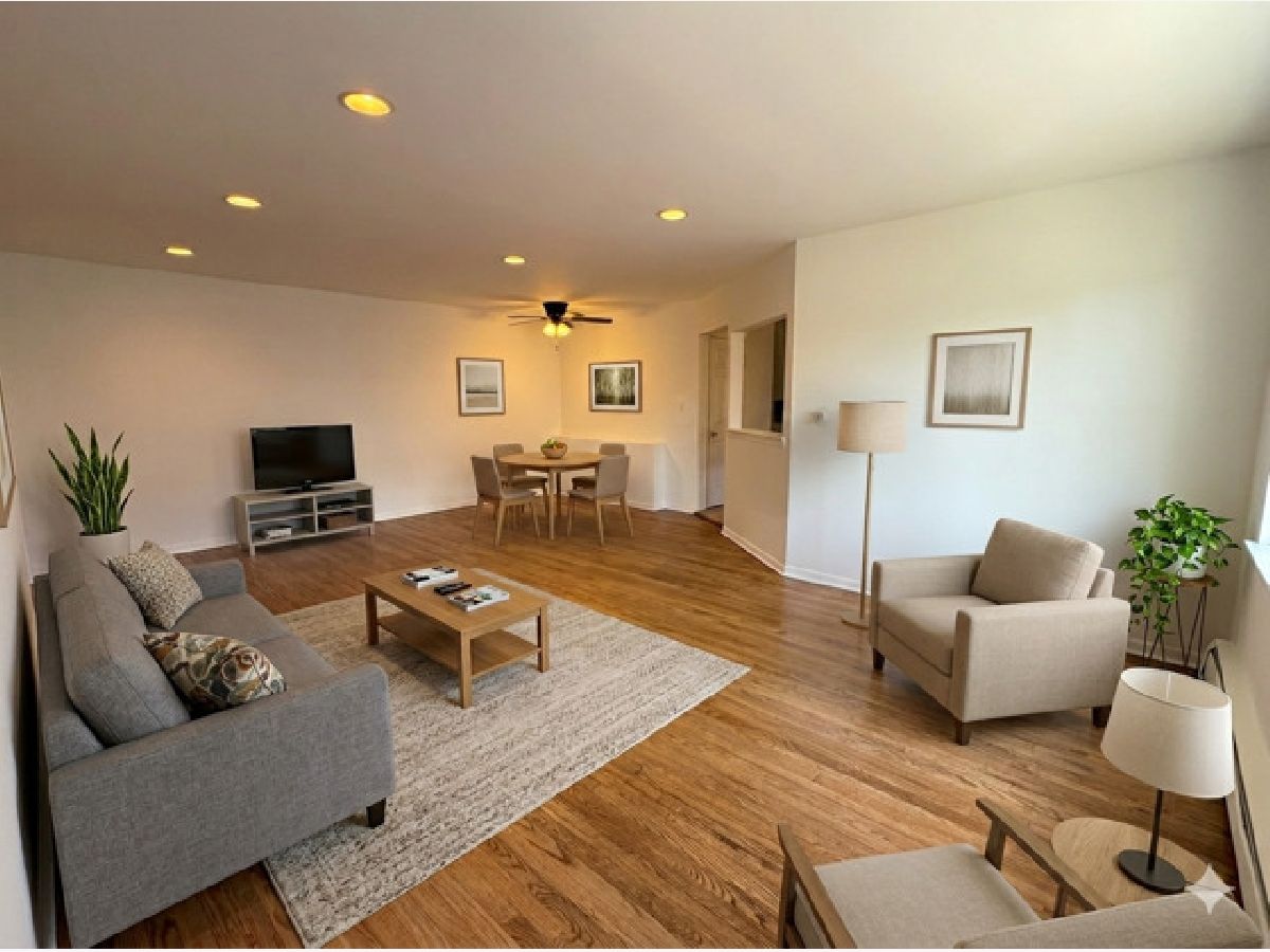 Welcome home to this thoughtfully updated 2 bedroom, 1 bath condo offering comfort, convenience, and move-in ready appeal. Ideally located near the expressway entrance, O'Hare Airport, restaurants and shopping. Recent improvements throughout the unit provide a fresh, modern feel. The entire condo has been professionally painted and features refinished hardwood floors in the living room, dining area, and both bedrooms. The kitchen has been completely refreshed with new cabinets, countertops, sink, fixtures, hardware, and updated lighting. The bathroom has also been updated with a new vanity, sink, refinished tub, new shower head. Additional upgrades include new door hardware, ceiling light fixtures and plumbing improvements The building offers convenient coin laundry in the basement, dedicated bike storage, and an individual storage locker. One assigned parking space in the exterior lot is included. This area serviced by school bus transportation, this property feeds into Elk Grove High School and District 59 elementary schools. Pool and park in the courtyard round out this area you can call home. A fantastic opportunity, don't wait! See this one before it's too late!