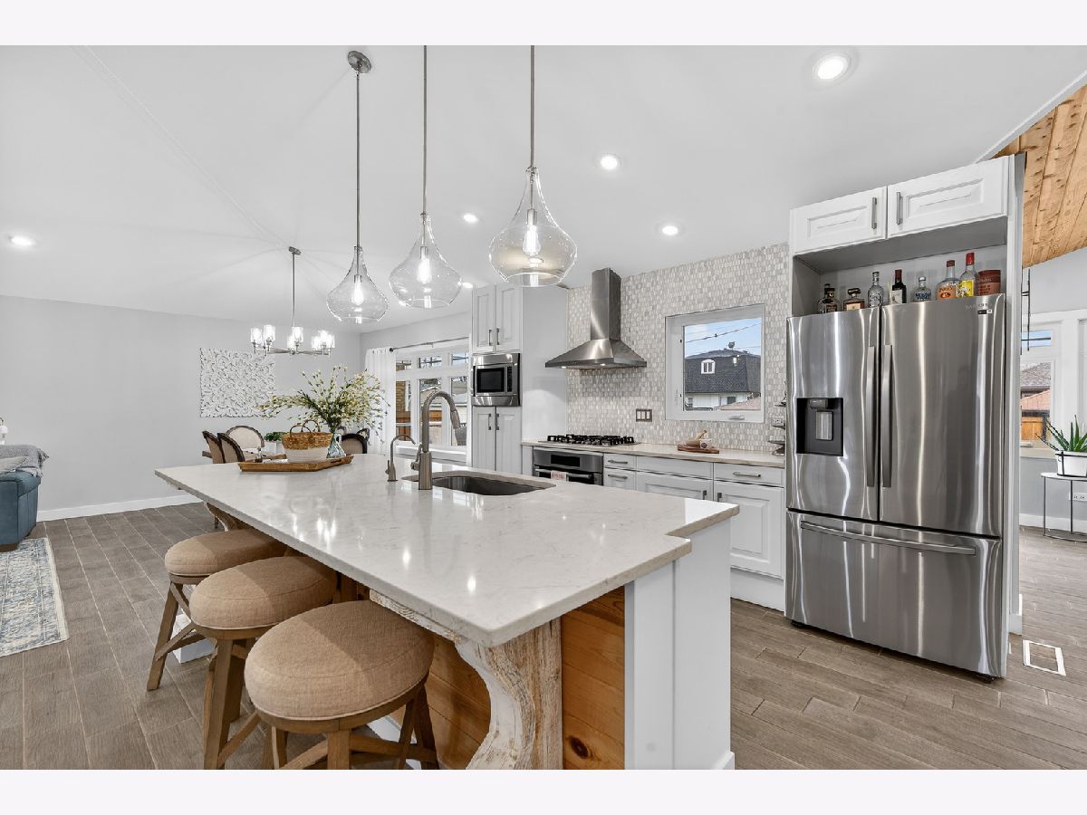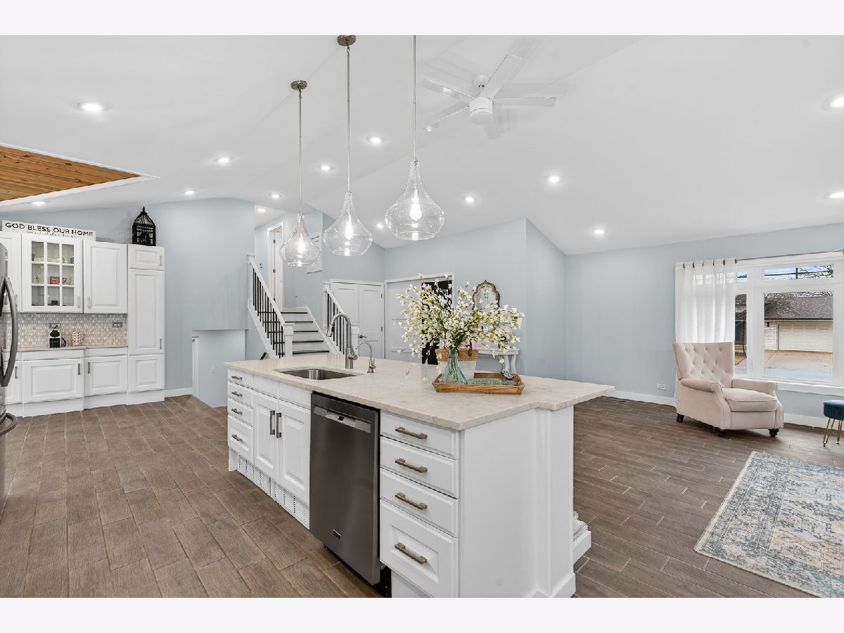 Welcome to this truely amazing, a one-of-a-kind custom home completely remodeled down to the studs in 2020, showcasing exceptional craftsmanship and thoughtful design throughout. Step inside to a bright open-concept floor plan with soaring ceilings, designer finishes, and custom lighting. The spacious living room, dining room, and family room flow seamlessly together, creating the perfect layout for both everyday living and entertaining. At the heart of the home is the chef's kitchen, featuring a stunning custom island with quartz countertops, white cabinetry, and stainless steel appliances. Just off the kitchen, a versatile dry bar/coffee bar opens to the sunny family room, complete with a custom shiplap ceiling, built-in electric fireplace, and beautiful views of the new composite deck and partially fenced backyard.The primary suite offers a private retreat with a spa-like bathroom featuring a custom walk-in shower and spacious vanity. Down the hall are two additional bedrooms and a beautifully remodeled hall bathroom with a custom tiled tub/shower. Step down to the walk-out lower level, where you'll find a dream laundry room with butcher block counters and crisp shiplap accents. The bright sunroom provides the perfect space for a quiet afternoon with a book or a relaxing evening beverage, while the versatile flex room-currently used as a workout space-could easily serve as a home office or hobby room.The sub-basement offers an ideal in-law arrangement, featuring a recreation room plumbed for a wet bar (with potential for a second laundry area), a full bathroom, and abundant storage. Outdoor living is just as impressive with ample entertainment space on the extended front patio and composite deck overlooking the partially fenced yard. The property also includes poured concrete ready for a future two-car garage, already plumbed for electric and plumbing. Prefer something different? This versatile space could also be transformed into a large gazebo area, basketball court, or even a pickleball/sports court...sky's the limit! Located just a short stroll from Bataan Park, this home truly offers the perfect combination of style, flexibility, and location. Nothing to do but unpack and enjoy-schedule your showing today before this turnkey dream home is gone.