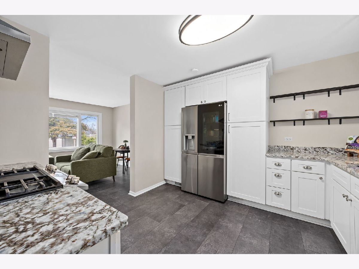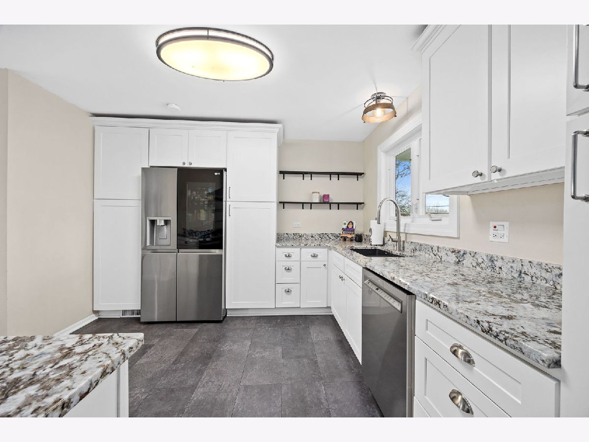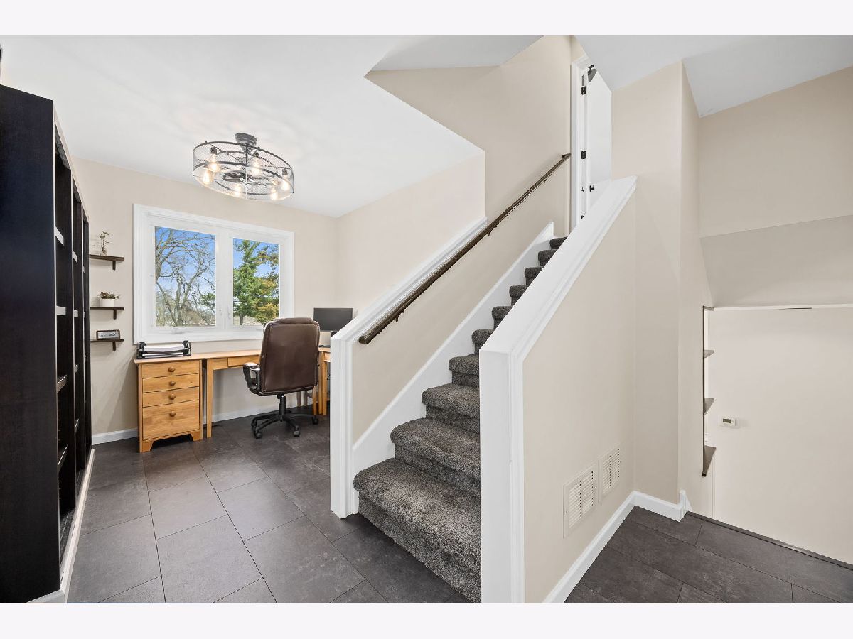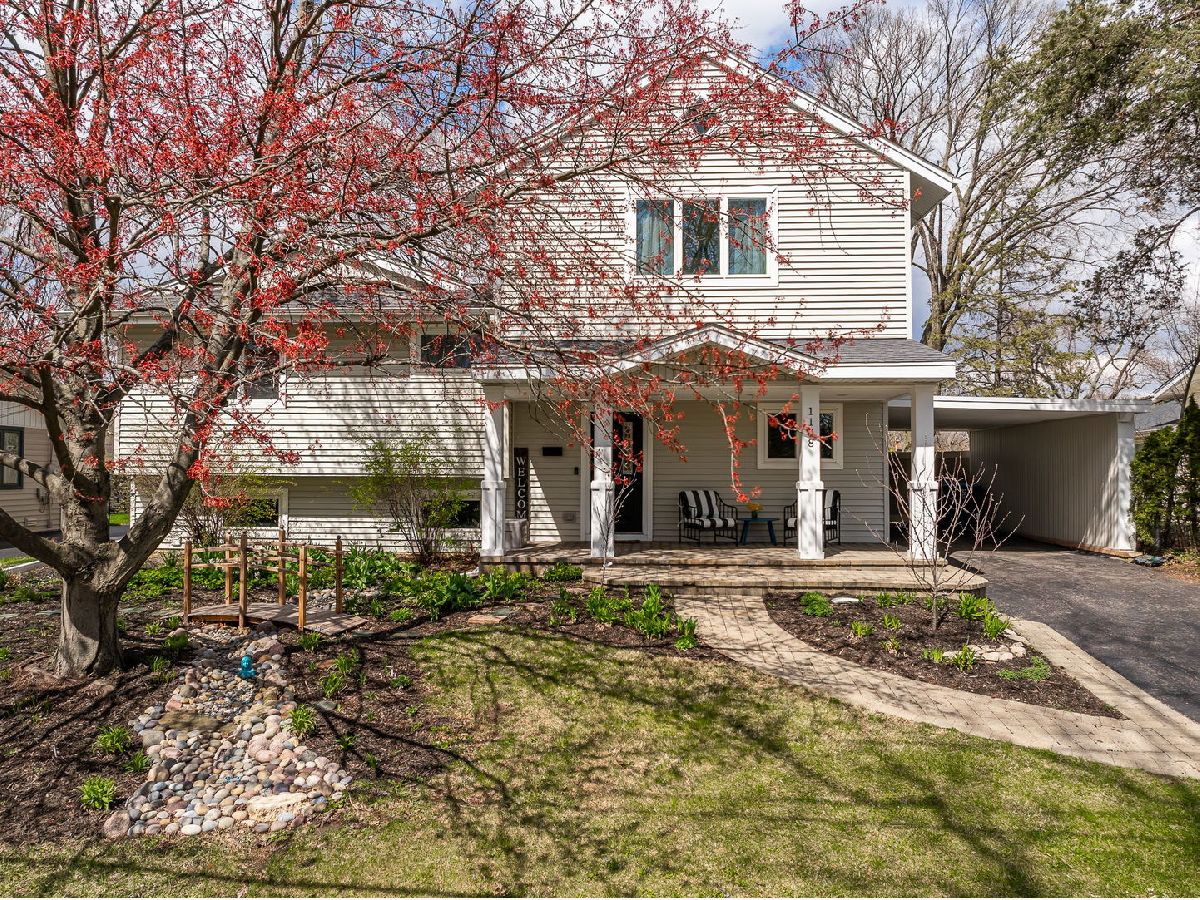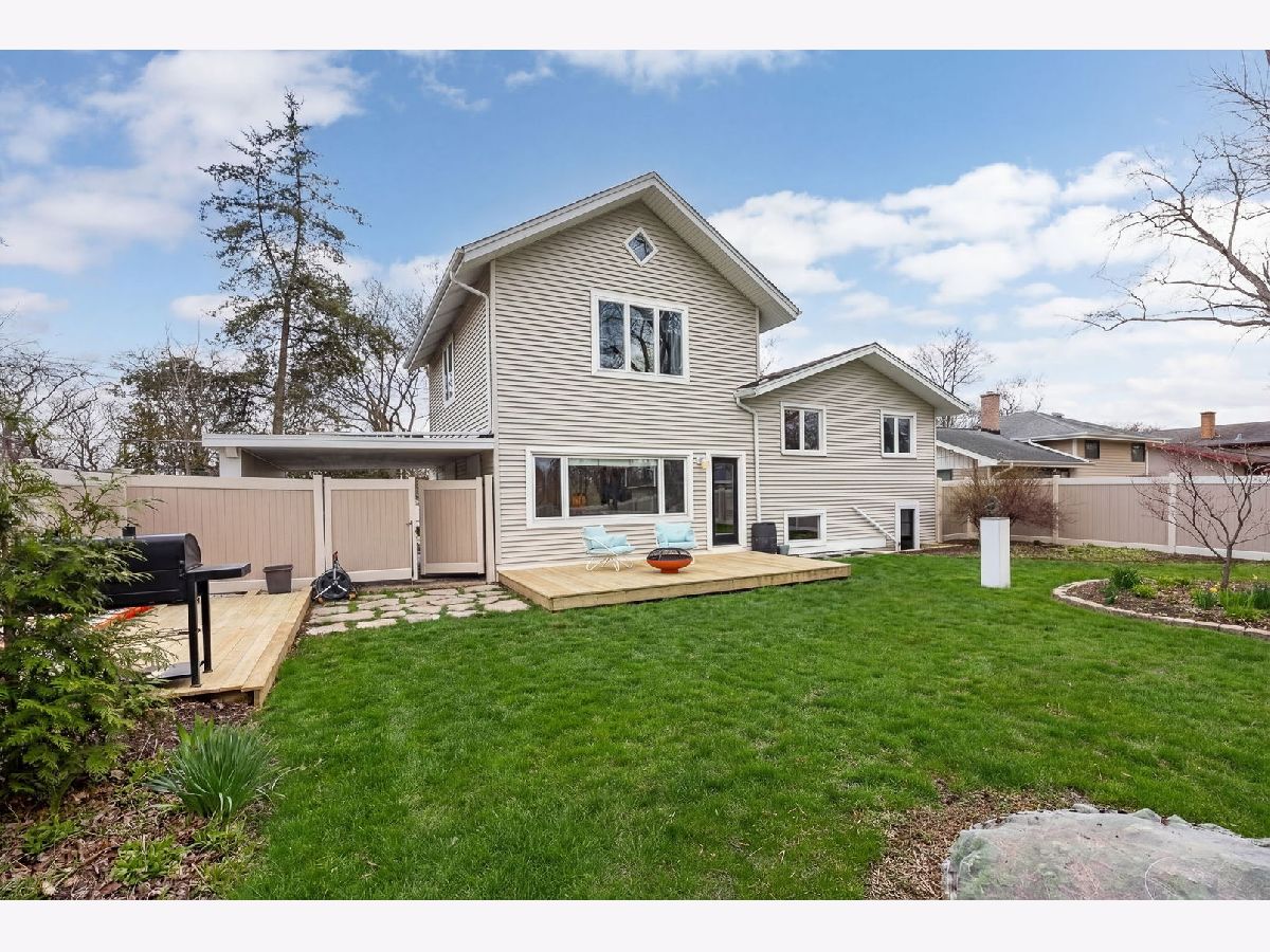 Welcome to this beautifully updated 3 bedroom, 2.1 bathroom home in the heart of Downers Grove, offering 1,464 square feet of thoughtfully designed living space across four levels. From the moment you arrive, the craftsman inspired covered front porch with classic white columns and distinctive stained glass door panels sets a welcoming tone that carries throughout the home. Inside, slate-look luxury vinyl plank flooring runs throughout the main level, and a well-appointed foyer just off the entry features a built-in storage bench, hooks, and mirror, keeping everyday comings and goings effortlessly organized. The kitchen is well-appointed with white shaker style cabinetry extending to the ceiling, granite countertops, a wall mounted stainless range hood, a gas range, an LG InstaView French door refrigerator with craft ice maker, and a stainless dishwasher. Open floating shelves and a window over the sink add both function and warmth. Open to the dining and living areas, the space is ideal for everyday gathering and entertaining, with oversized windows and a glass door to the back deck filling the main level with natural light and easy access to the outdoors. The top floor is dedicated entirely to the primary suite, a spacious, private retreat with vaulted ceilings, a skylight, an electric fireplace with a marble surround, a sitting area, and two walk-in closets. The en-suite bathroom features a Whirlpool jet tub beneath a sun filled window, a separate glass-enclosed shower, a dark wood vanity with white quartz countertop, and gold-toned fixtures. Two additional bedrooms on the second floor offer neutral carpet, ceiling fans, and good natural light, and are served by a hall bath with a granite vanity and tiled tub-shower combination. A dedicated home office with built-in shelving rounds out the upper levels and works equally well as a flex space. The lower level is finished and functional, offering a large family room with polished concrete floors, a private exterior door opening directly to the backyard, and a half bathroom, a versatile space well-suited for a home gym, recreation room, or flex use. A utility room with a full-size LG washer and dryer completes the level. Outside, two separate decks extend the living space into a large, fully fenced backyard. A shed provides additional storage, and the yard features established perennial gardens, including two varieties of asparagus, three blueberry bushes, onions, herbs, and strawberries, ready to produce season after season without replanting. A 220-volt hookup is already in place for a future hot tub or pool. A carport provides covered parking with convenient access to the home. The entire exterior, including trim and doors, was freshly painted in 2026. This location is genuinely hard to beat. Ebersold Park sits directly across the street, and Downtown Downers Grove, with its restaurants, boutiques, and Metra BNSF station, is just minutes away. Everything along the 63rd Street corridor, from dining and coffee to fitness and everyday errands, is well within reach, making this a home that connects you to the best of the community the moment you walk out the door. Don't miss the opportunity to make this exceptional property your own. Schedule a showing today!