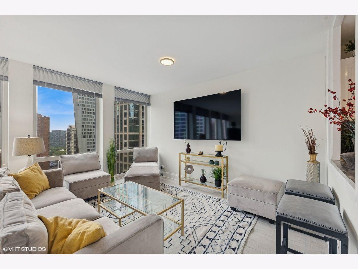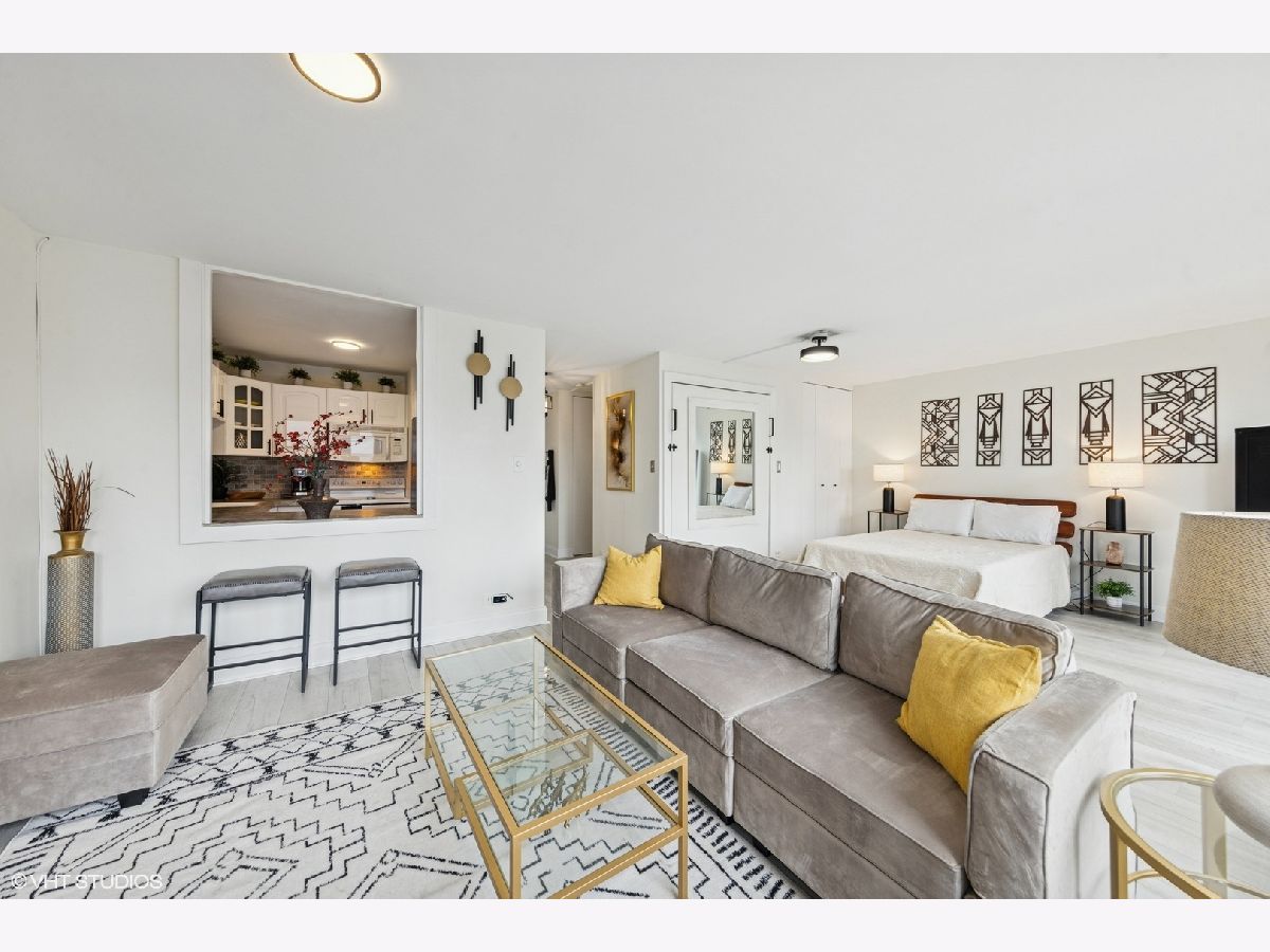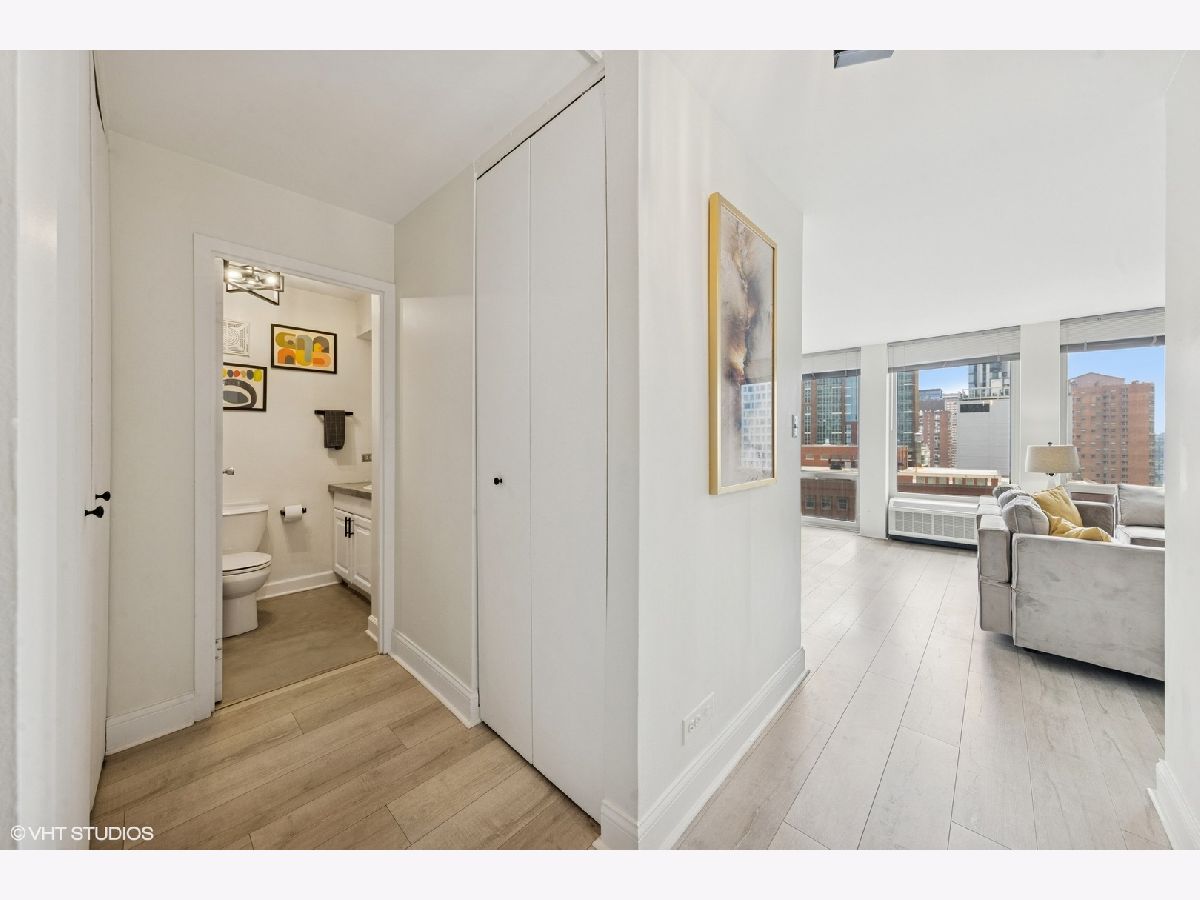 Step into stylish city living with this beautifully updated 600-square-foot condo that seamlessly blends modern convenience and refined comfort. The interior features newer vinyl plank flooring throughout, a recently remodeled kitchen with contemporary finishes, and ample closet space to meet your storage needs. Five expansive floor-to-ceiling windows with new blinds invite in natural light while showcasing picturesque west-facing views of the pool and dazzling sunset skies. A newly renovated bathroom adds to the fresh and inviting appeal, while a built-in heater/AC unit-replaced just a few years ago-ensures optimal climate control all year long. This well-maintained building offers premier amenities, including a heated outdoor pool, sun deck, cutting-edge fitness center, grilling deck with brand-new grills, and an elegant party room perfect for hosting family and friends. Ideally situated just steps from public transportation, top-tier shopping, grocery stores, Oak Street Beach, and Northwestern Hospital, this condo combines convenience and charm. With included extra storage in building, Cable TV and Wi-Fi, plus an additional built-in Murphy bed, the unit is fully move-in ready and available for immediate occupancy. Don't miss your chance to enjoy sophisticated living in one of the city's most desirable locations.