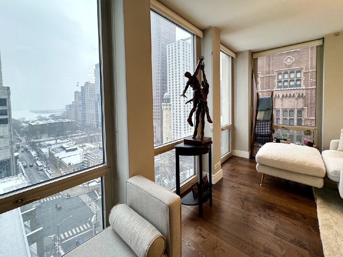 Step into this beautifully and meticulously renovated 2-bed 2-bath PLUS Den (currently used as extra storage), 1600 SF home: * Gourmet Kitchen - open concept design with stainless steel appliances, custom cabinetry, and a spacious layout perfect for entertaining. * Luxurious Bathrooms - completely remodeled with designer fixtures, sleek tile work, and upgraded plumbing for a spa-like experience. * Expansive Living Spaces - gorgeous hardwood floors and floor-to-ceiling windows on the 17th floor that showcase breathtaking South, East and West views of Lake Michigan, Michigan Avenue, iconic city skyscrapers, and sunsets. * Exceptional Storage - two oversized walk-in closets, additional storage, and a dedicated laundry room with an in-unit washer and dryer. * Modern Luxury Upgrades. BUILDING AMENITIES - Enjoy resort-style living in a full-service building with unparalleled amenities: * 24-hour door staff and security * Heated outdoor pool and fitness center * Grilling decks with 10 BBQ stations * Party room with a full kitchen and bar * Conference room, dry cleaners, bike storage, and more. PRIME LOCATION - you're steps away from the best of Chicago-world-class dining, shopping, and cultural attractions are right outside your door. The building has several available parking spaces to rent and to purchase.