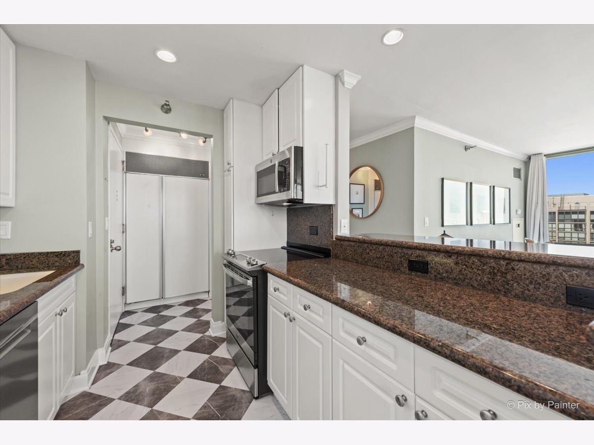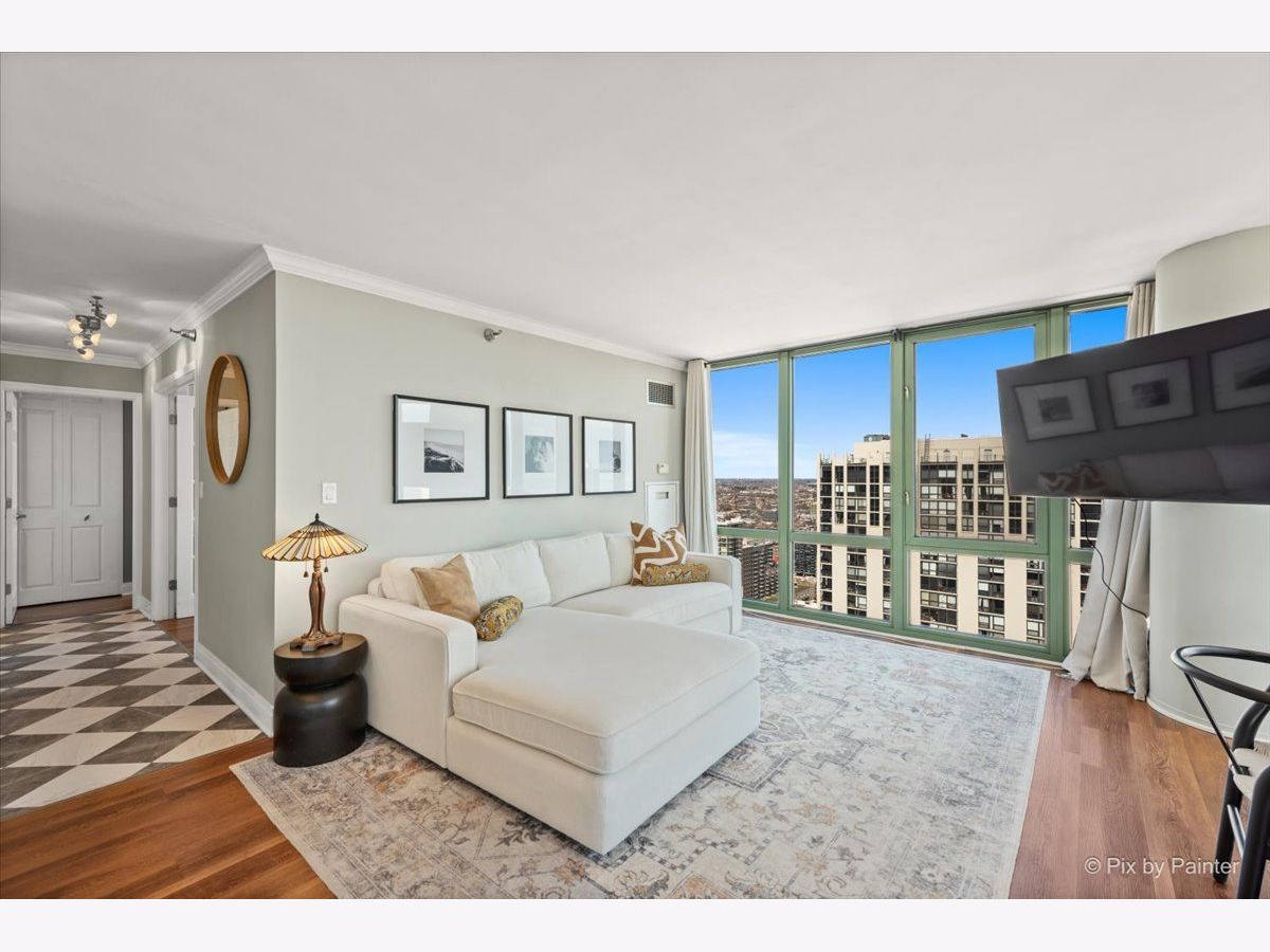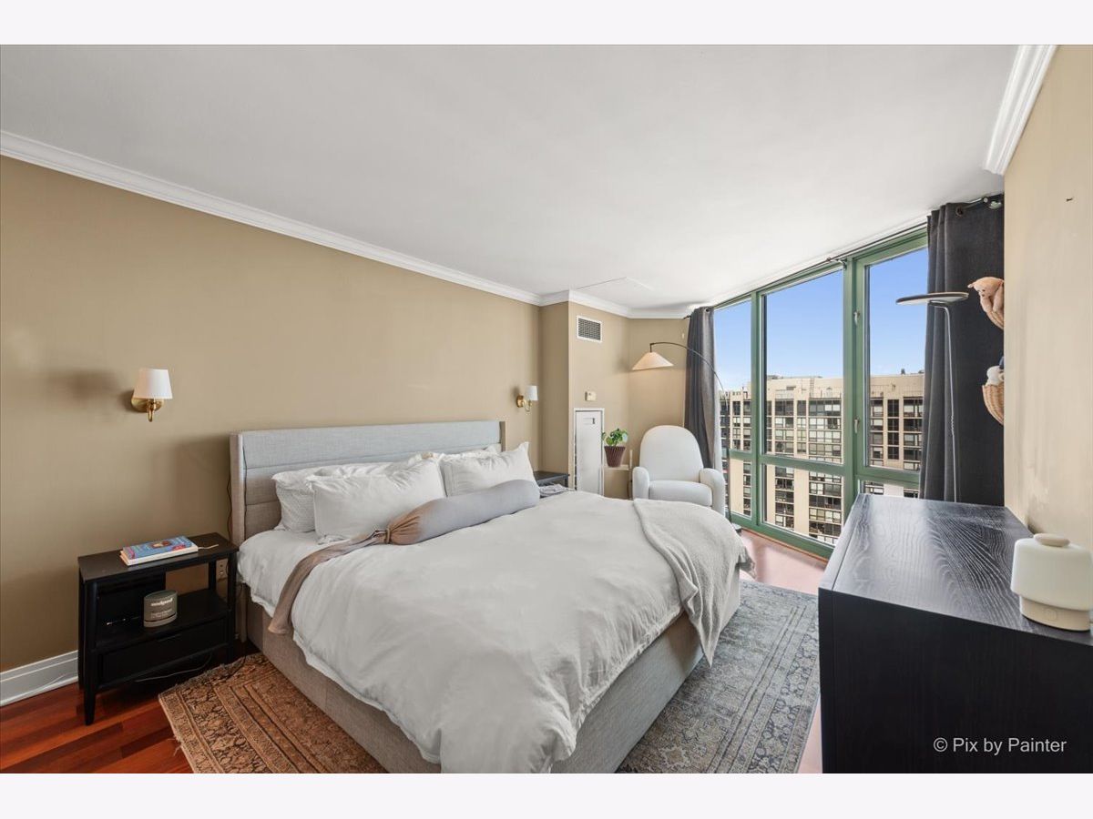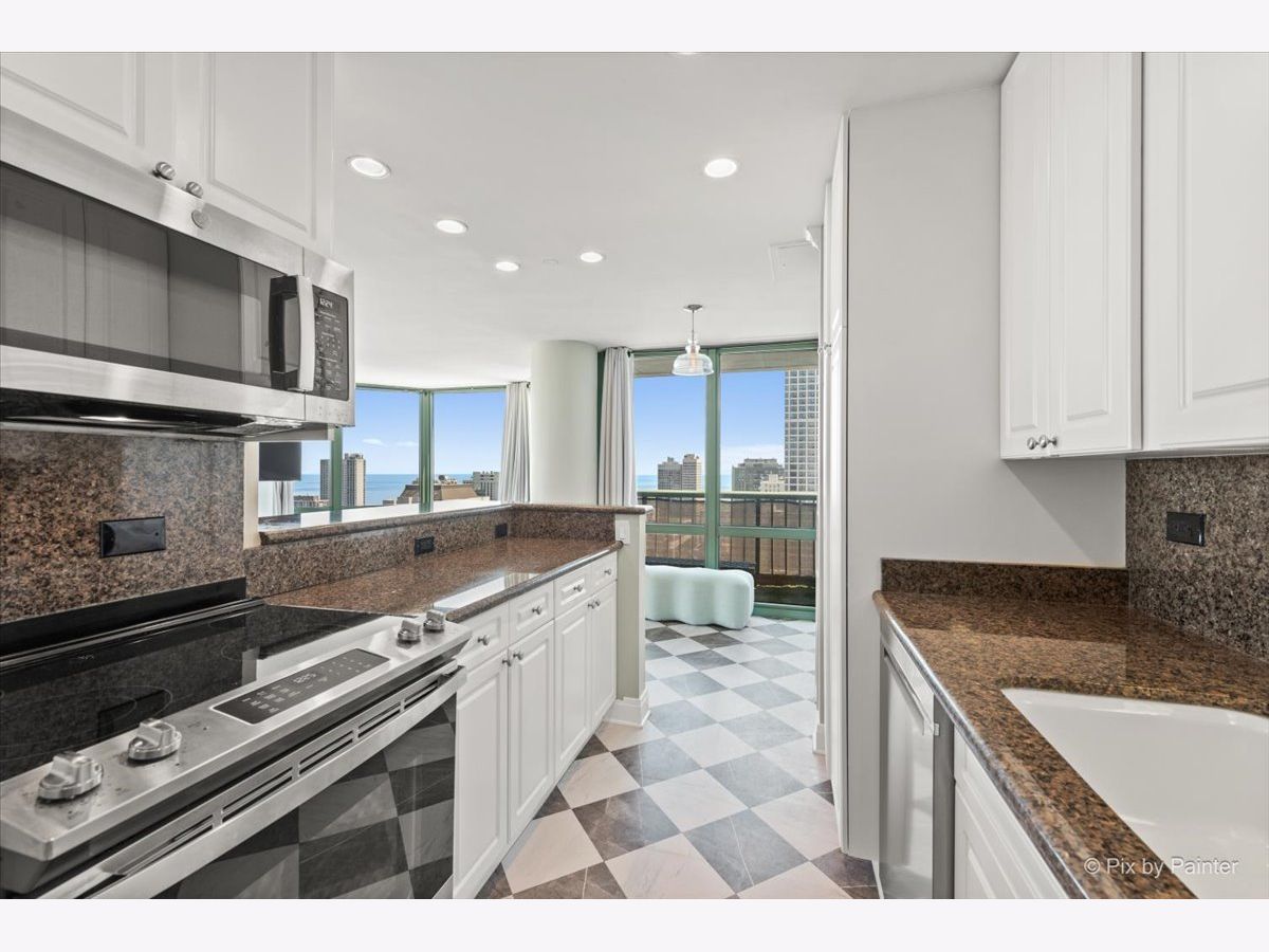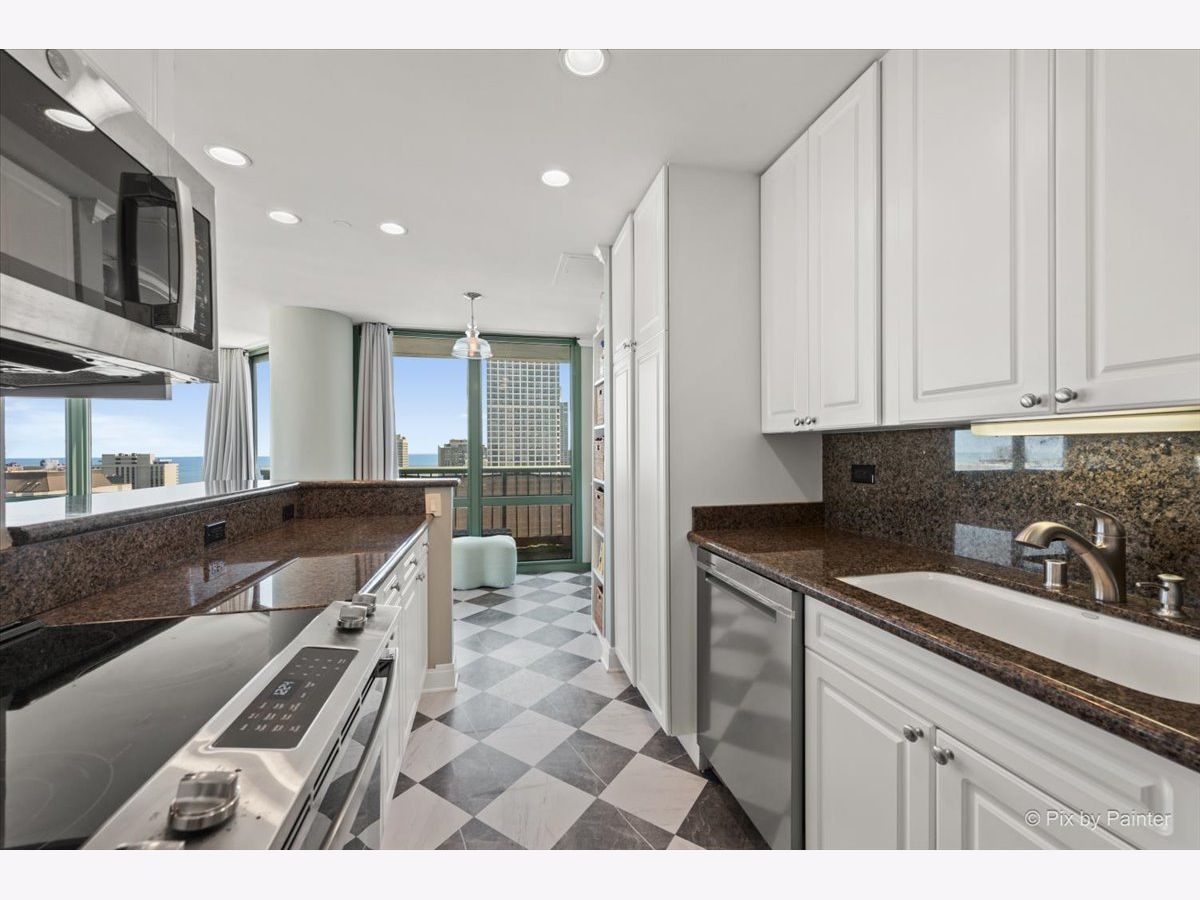 Stunning, penthouse 2-bedroom, 2-bath corner residence offering breathtaking lake and city views from every room. Enjoy the peace and privacy of a quiet top-floor location with no neighbors above. The home features a spacious private balcony, floor-to-ceiling windows, hardwood floors, crown molding throughout, and marble flooring in the kitchen and baths. The kitchen is beautifully appointed with granite countertops, a Sub-Zero refrigerator, and stainless steel appliances. Additional highlights include an in-unit washer and dryer and generous closet space. Full-service building amenities include 24-hour door staff, sundeck, and health club access. Unbeatable location just moments from the lakefront, public transit, dining, shopping, and nightlife.