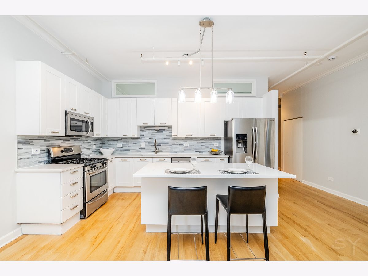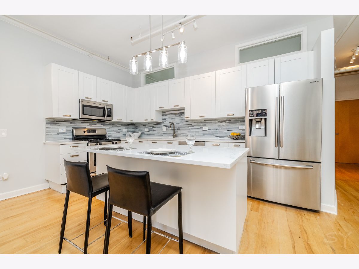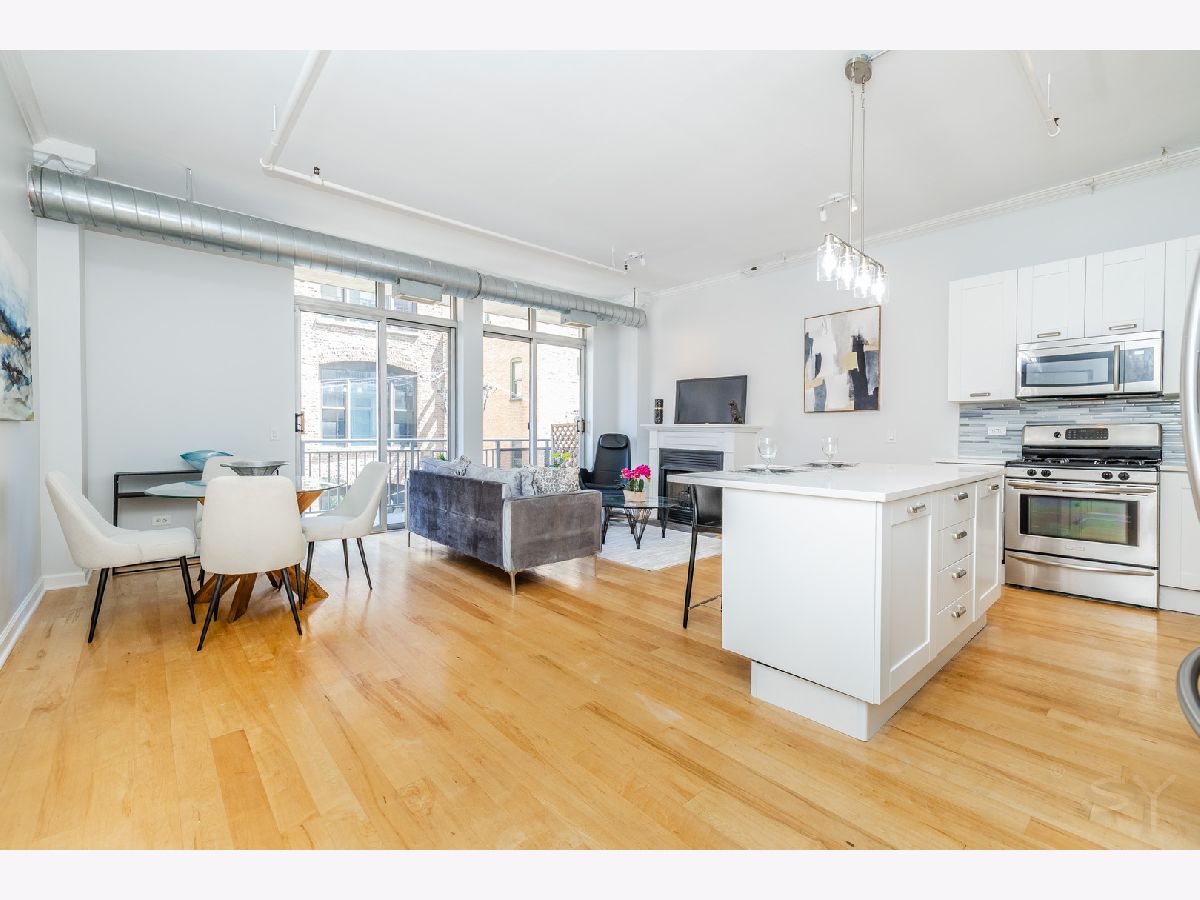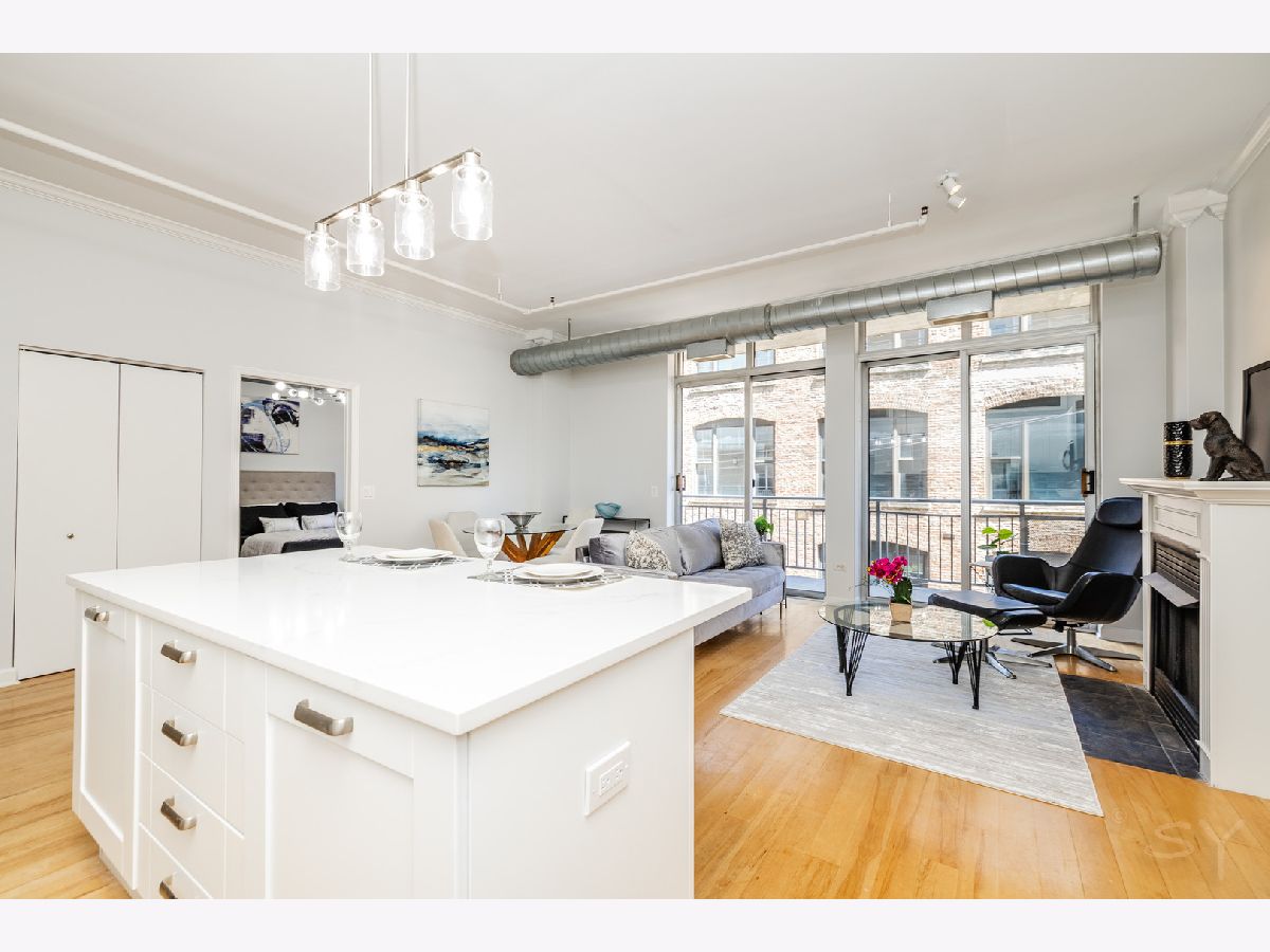 Newly updated 2 Bed/2 Bath w/rare 2 Deeded garage parking spots in the West Loop-Chicago's hottest neighborhood! Spacious, open floor plan layout features a renovated chef's kitchen with white cabinetry, quartz countertops, S.S. appliances, and eat-in island. Large primary suite with dual closets, and all new primary bathroom w/dual vanity and walk in shower. Fully enclosed 2nd bedroom, washer/dryer in-unit, 32 ft long private balcony, New light fixtures, vent-free gas fireplace, individual central HVAC, and plenty of storage in unit plus an extra storage locker. The entire is freshly painted and ready for move in. Seller has two heated garage parking spots-$25K each. Renovated lobby and mail/package room (2025), New roof (2023), 24-hour door staff, bike room, freight elevator, and on-site maintenance. HOA includes cable & internet. Pet friendly building. Ideal location - steps to Mary Bartelme Park, Madison Ave, Skinner Park, Randolph Street's Restaurant Row, Fulton Market, and quick access to I-90/94 & I-290. Don't miss out on this incredible opportunity!