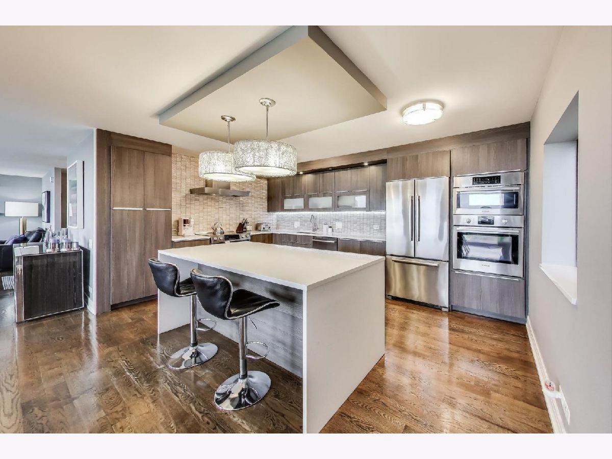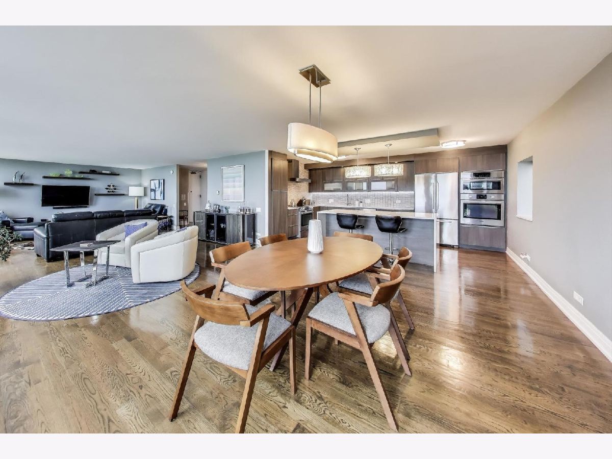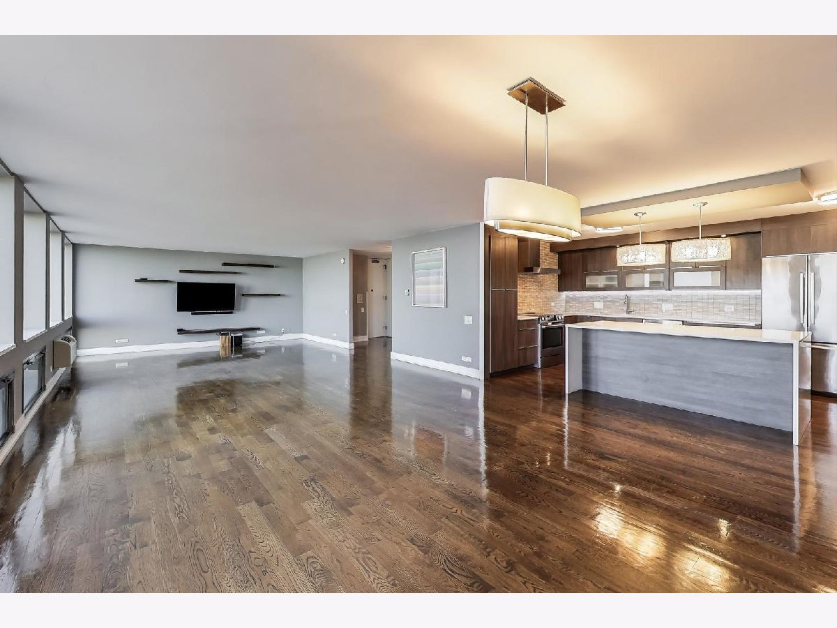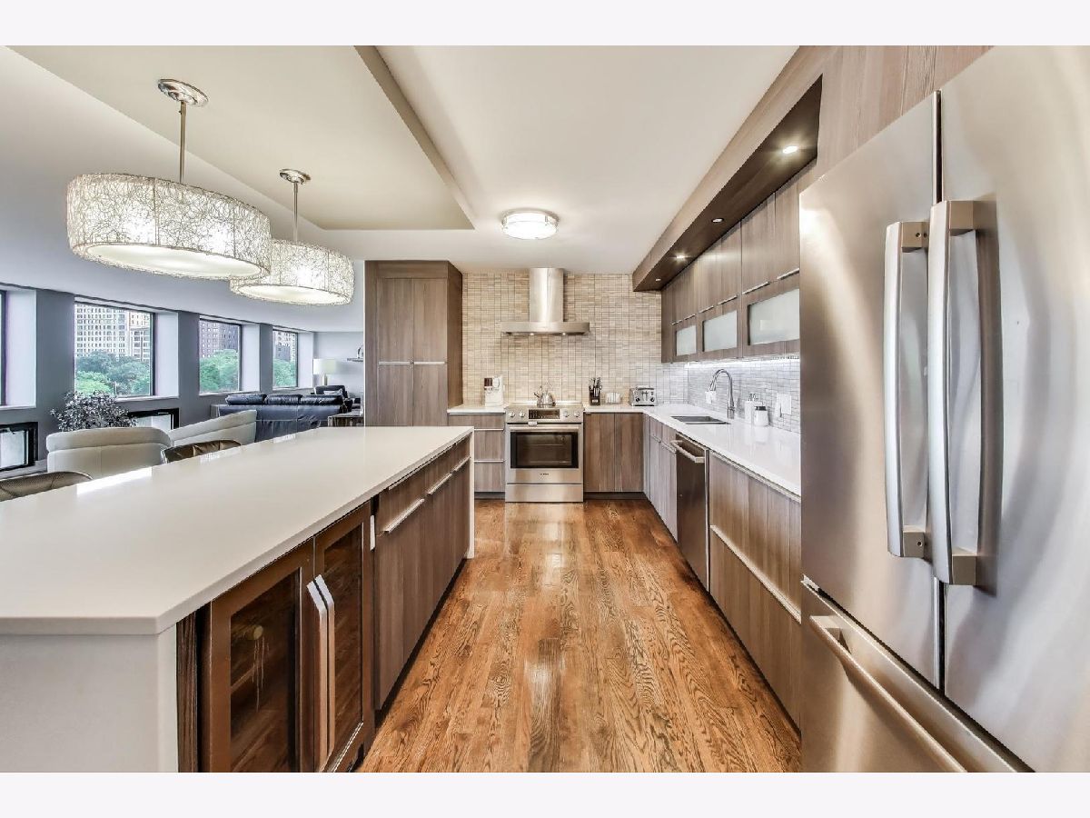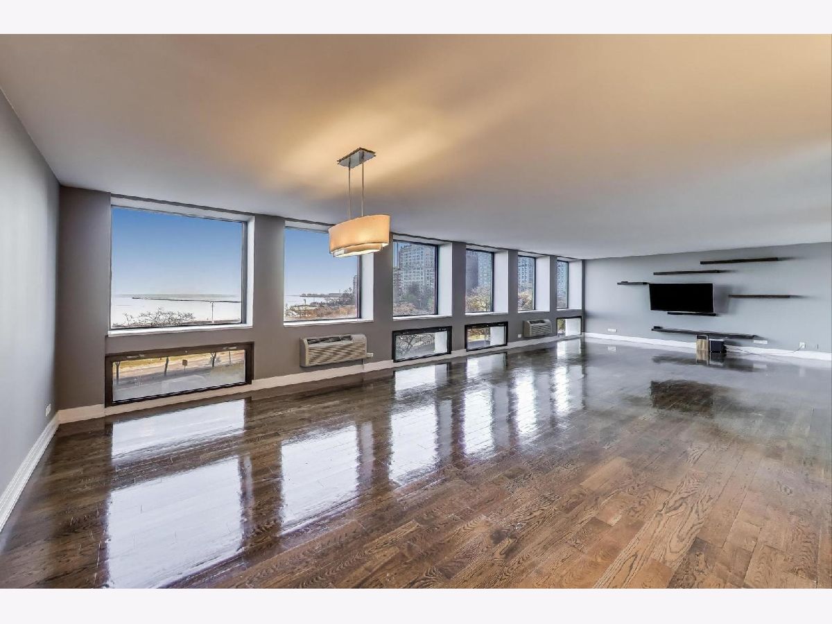 Gorgeous views of Oak Street Beach, Lake Michigan and the Lakefront Trail! Perfect Gold Coast location for beach, shopping and dining. The pinnacle of all that's great about Chicago. This hip and stylish home truly has it all!! A gracious foyer leads to this impeccably updated home with Floor to ceiling windows that top the trees below. Real walnut stained hardwood throughout, designer lighting and updated baths. Large newer Chef's kitchen with quartz and high end appliances opens to the expansive living area. Primary Bedroom features cove lighting, a large walk-in closet and a western view. The spa like Primary Bath features heated floors, large shower with multiple shower heads, and double sink. All 3 bedrooms have western views and hardwood floors. The 2 1/2 bathrooms have been updated with the hall bath featuring neutral tile and a rain shower head. Recently the current owner has added alabaster sills in the living room, new ac units in the bedrooms, hand crafted cabinetry in the office and freshly painted. There is an in-unit laundry, and multiple closets for storage space. This building has exceptional security and amenities which include 24 hour doorman, valet parking in garage, pool, sundeck, exercise facilities, party room, storage unit, and on site management and engineer. HOA includes all the amenities PLUS water, parking, security, TV/Cable, exterior maintenance, lawn care, scavenger, snow removal, Wi-Fi, and Internet access. Gorgeous unit that is move in ready! Quality renovation with solid core doors and the best hardware!