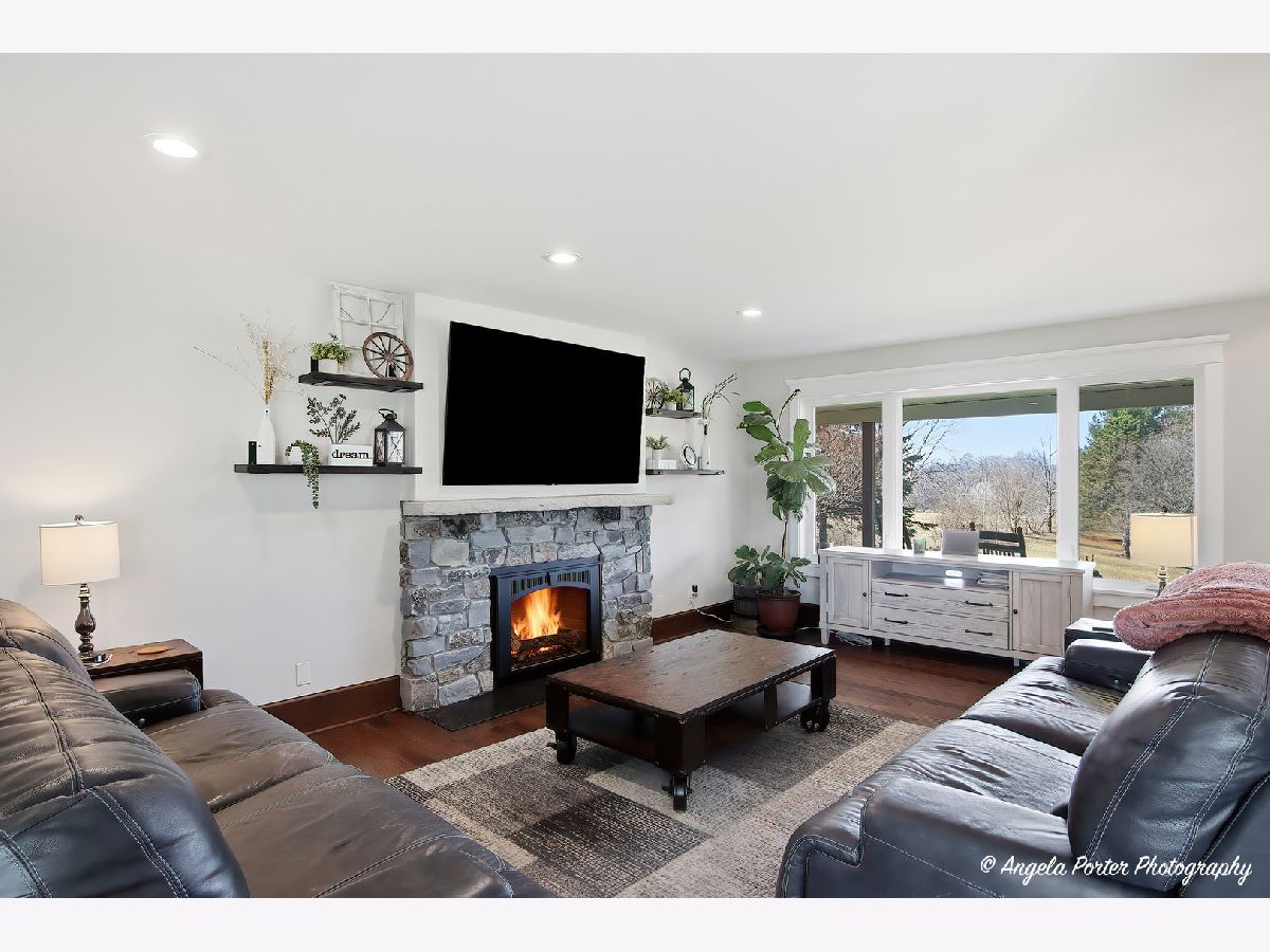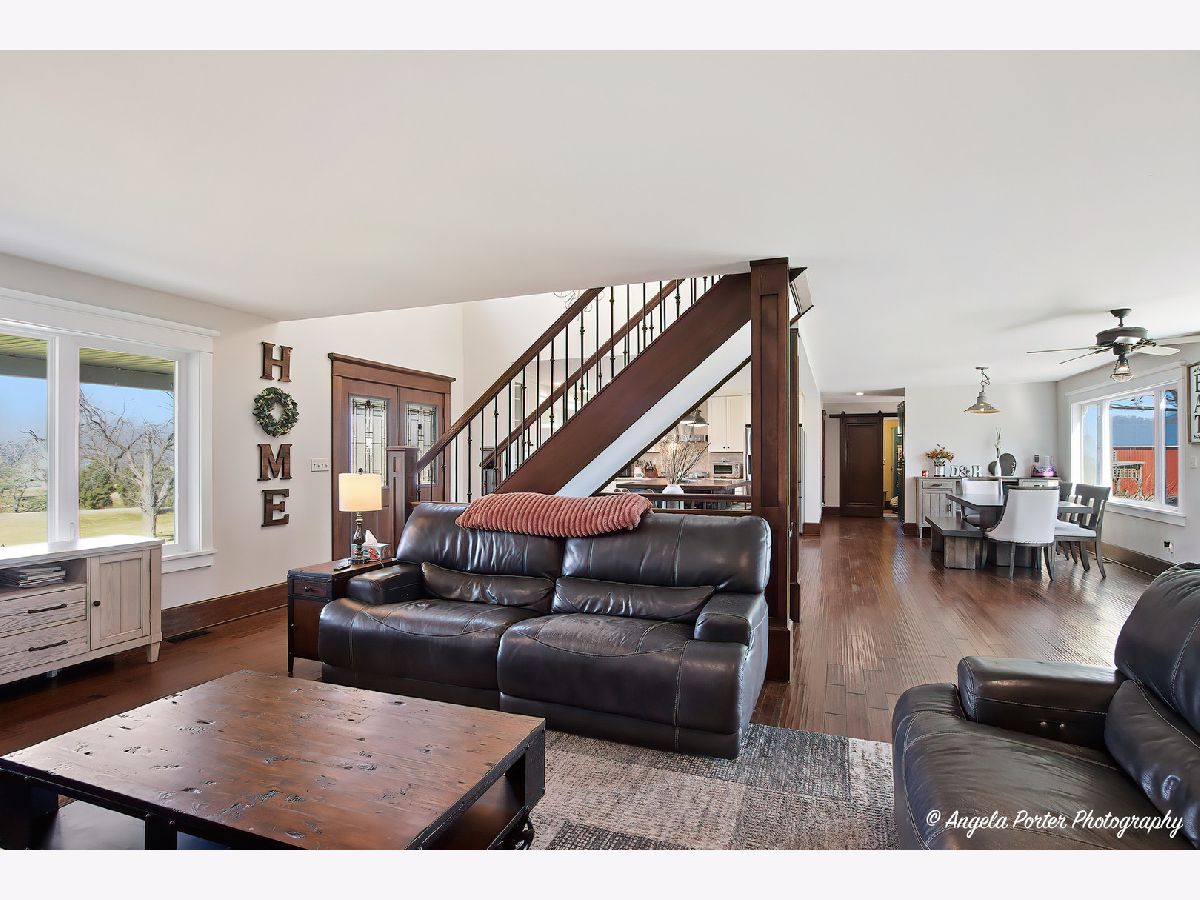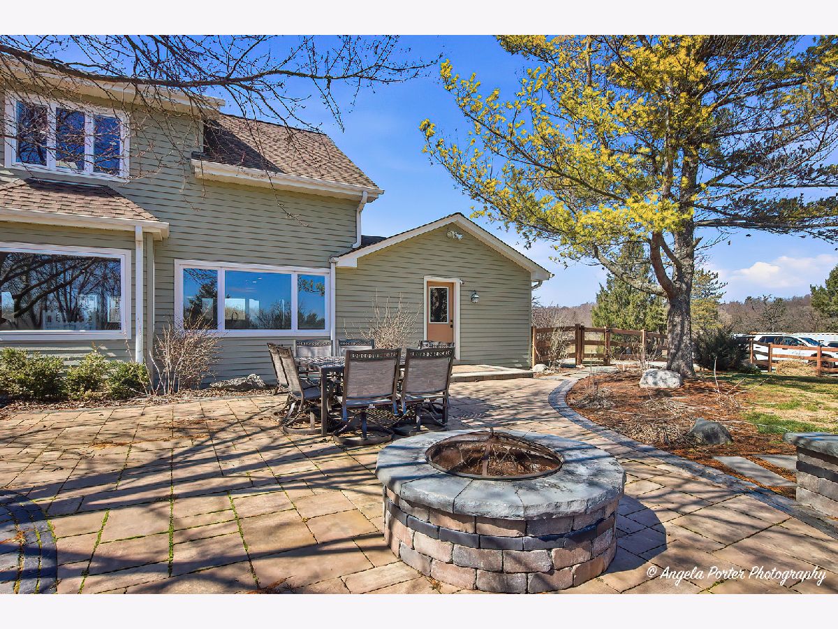 Set far back from the road and approached by a scenic winding driveway, this beautifully remodeled home sits on 10 breathtaking acres offering privacy, space, and sweeping countryside views. Completely renovated, the home blends modern upgrades with timeless country charm with the potential of over 3,700 square feet of living space. Step inside to find rich hickory hardwood flooring throughout the main level and an expansive open-concept kitchen designed for both everyday living and entertaining. The kitchen features granite countertops, a large custom island, country-style farmhouse sink, gourmet Bertazzoni range with hood, and new refrigerator. Oversized doors, custom wood framing, crown molding, and detailed trim work add warmth and craftsmanship throughout the first floor. The first-floor primary suite is a true retreat with vaulted ceilings, a spacious sitting room or office overlooking the backyard, and private access to a secluded deck. The fully updated primary bath and massive 12'x8' walk-in closet complete the suite. A second full bathroom near the rear entrance includes a large walk-in shower-perfect for cleaning up after time outdoors. Upstairs offers two additional bedrooms, an updated full bathroom, and a flexible loft space ideal for an office, reading nook, or play area. Major improvements provide peace of mind, including new windows, composite siding, roof, dual-zone HVAC, updated plumbing, and a beautiful stone fireplace. Outdoor living is just as impressive with a large brick paver patio featuring a sitting wall, a brick paver walkway, and concrete parking and RV pads. The property also includes a 26' x 33' pole barn, currently used as storage for off-road vehicles and equipment. The rear three acres were previously used as a horse riding area, offering plenty of potential for hobby farming (zoned A-5), recreation, or animals. Enjoy peaceful mornings or sunset views from the spacious covered front porch. The unfinished basement provides additional storage or future finishing possibilities for a 4th bedroom or more entertainment space. A rare opportunity to own a move-in ready country estate with modern updates, functional outbuildings, and room to roam-all while enjoying the beauty and tranquility of Spring Grove.