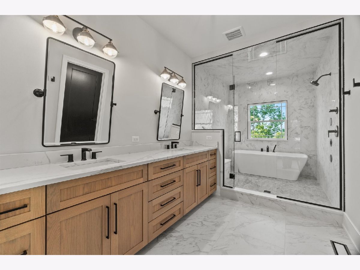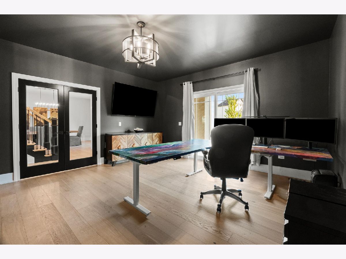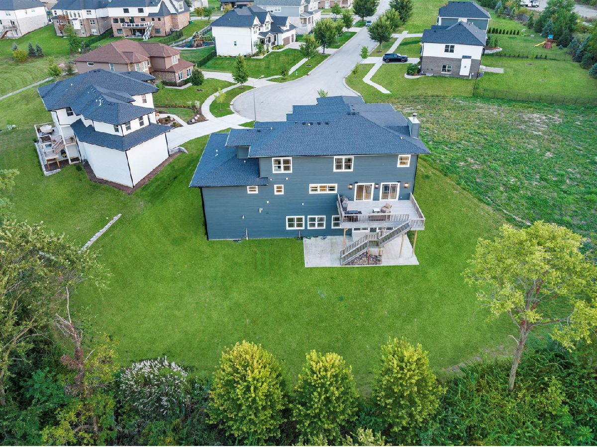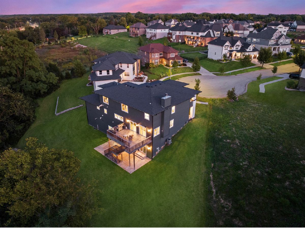 Sleek and sophisticated MODERN MASTERPIECE in one of Lemont's most sought after subdivisions, ESTATES OF MONTEFIORI shows like new construction. Spectacular exterior with clean lines, expansive front porch and balcony with accents of black, white and grey architectural design and hues. Enter the two foyer and prepare to be wowed at every turn. Formal dining room is the ideal space to entertain with a sliding door to the front porch that provides indoor and outdoor living. Stunning family room includes a beautiful limestone fireplace, ample windows for natural sunlight and shiplap ceiling for that modern/rustic feel. Extraordinary GOURMET chef's kitchen is the ultimate space to cook and entertain that features two-toned cabinetry in natural and black hues, two massive islands, stainless steel appliance package, quartz countertops, walk in pantry with a custom barn door detail and a butlers pantry that has a beverage fridge and wine fridge. Handsome office/study offers a moody and comfortable vibe and a sliding patio door with access to the front porch to unwind. Main level laundry room and mudroom offers tons of cabinets for storage. Formal dining room perfect for entertaining. Second level greets you with two expansive catwalks and an elegant gold chandelier. Private master suite is a dream sanctuary with plush wall to wall carpeting and your own private balcony to enjoy your morning coffee. Spa-like master bathroom includes a dual vanity, walk-in shower with a bathtub inside that offers seamless integration of the latest design trends and a sizable walk-in closet. Three additional bedrooms on the second level, one has its own private ensuite and balcony and the remaining two bedrooms share a jack and jill bathroom. The WALK OUT lower level has soaring 12ft ceilings, a full bathroom and offers plenty of room for recreation, family area, media room, bar or second kitchen. Private grounds with multiple areas to entertain on the extended deck or sprawling patio area with stub for gas fire pit. Great Lemont location close to shopping, dining, world renowned golf courses, thousands of acres of forest preserves, and more! For any buyer looking for modern luxury in a premium suburban setting. BE SURE TO WATCH THE FULL LENGTH VIDEO!