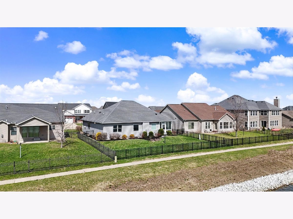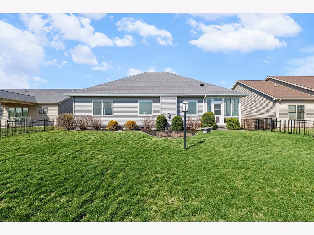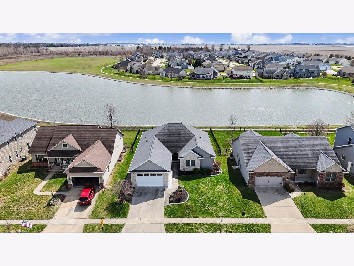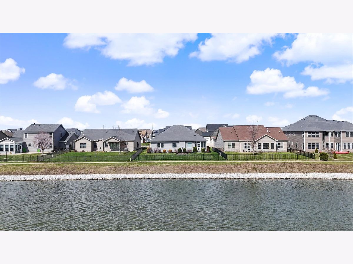 Custom-built modern ranch offers breathtaking lake views and exceptional attention to detail throughout in the highly sought-after Liberty on the Lake subdivision. Step inside to an inviting entryway highlighted by an elegant arched ceiling and decorative columns that seamlessly open into a spacious great room. Oversized windows frame serene, private lake views, filling the home with natural light. The gourmet kitchen is designed to impress, featuring custom cabinetry, sleek quartz countertops, under-cabinet lighting, stainless steel appliances, and a stylish custom backsplash-perfect for both everyday living and entertaining. The open layout provides an abundance of space to host gatherings with ease. Relax year-round in the sun porch, complete with a range hood and gas grill, ideal for indoor-outdoor entertaining. The luxurious owner's suite offers a private retreat with a spa-like bath, including a separate shower, dual vanities, and a spacious walk-in closet equipped with a custom built-in organizer. Two additional generously sized bedrooms share a thoughtfully designed layout with a separate shower and toilet area for added convenience. The finished basement expands your living space with a large family room, an additional bedroom, a full bath, and multiple storage areas-perfect for guests, hobbies, or recreation. Outside, enjoy a professionally landscaped yard and a fenced backyard with an elegant iron fence. Additional updates and features include geothermal, a radon mitigation system (2022), fresh paint (2022), and new carpet in the living room and primary bedroom (2022). Located in a vibrant community with scenic walking paths, two parks, and convenient access to shopping, dining, and the University of Illinois, this home truly has it all. Experience comfort, style, and stunning lakefront living.