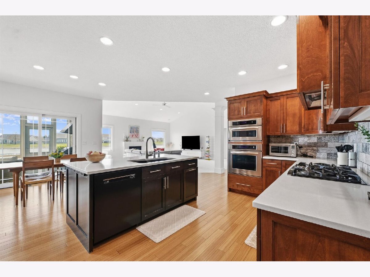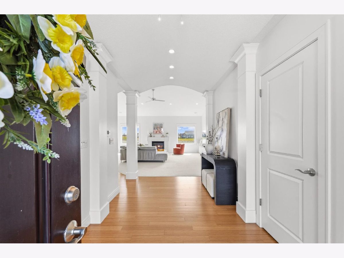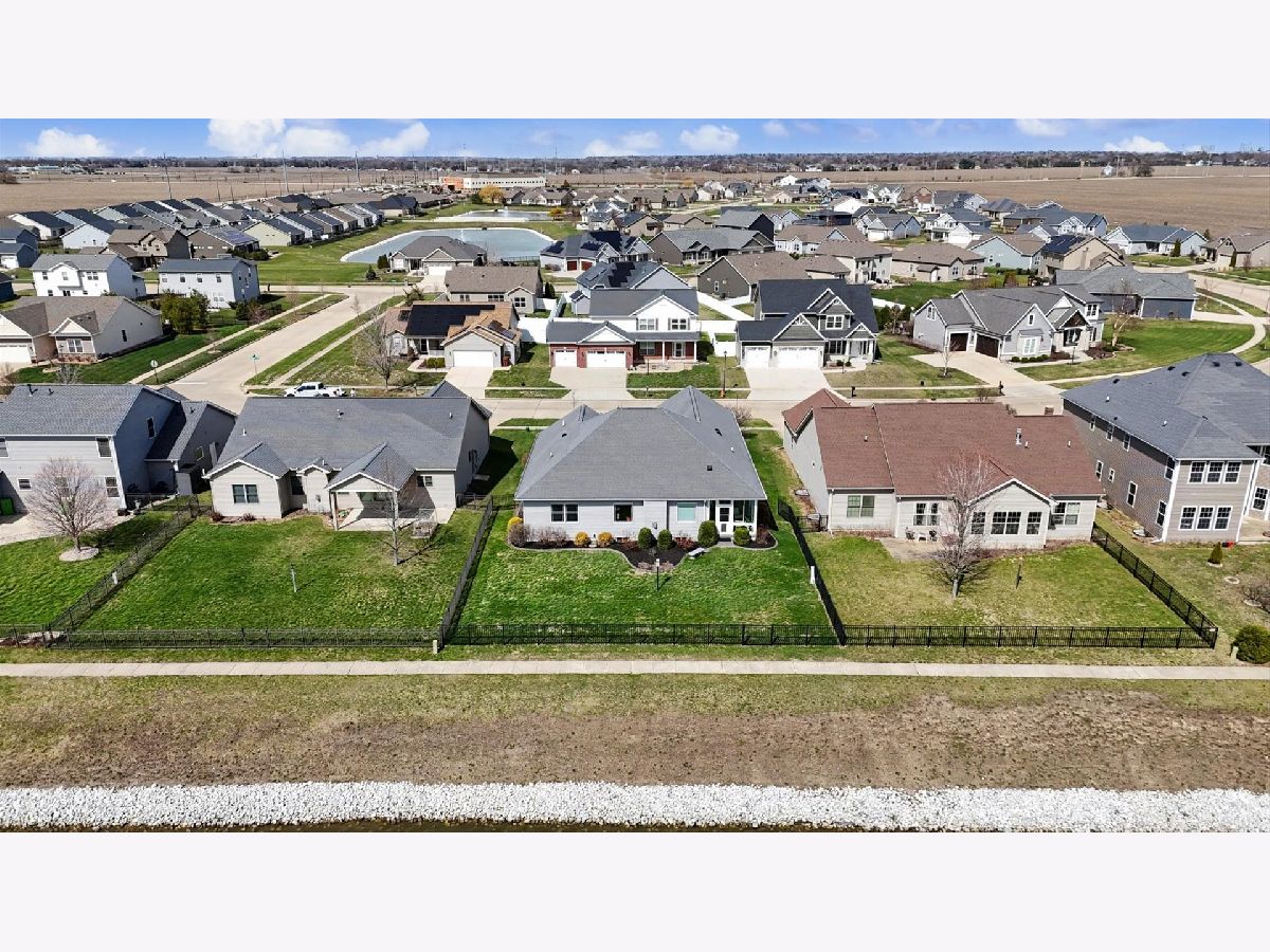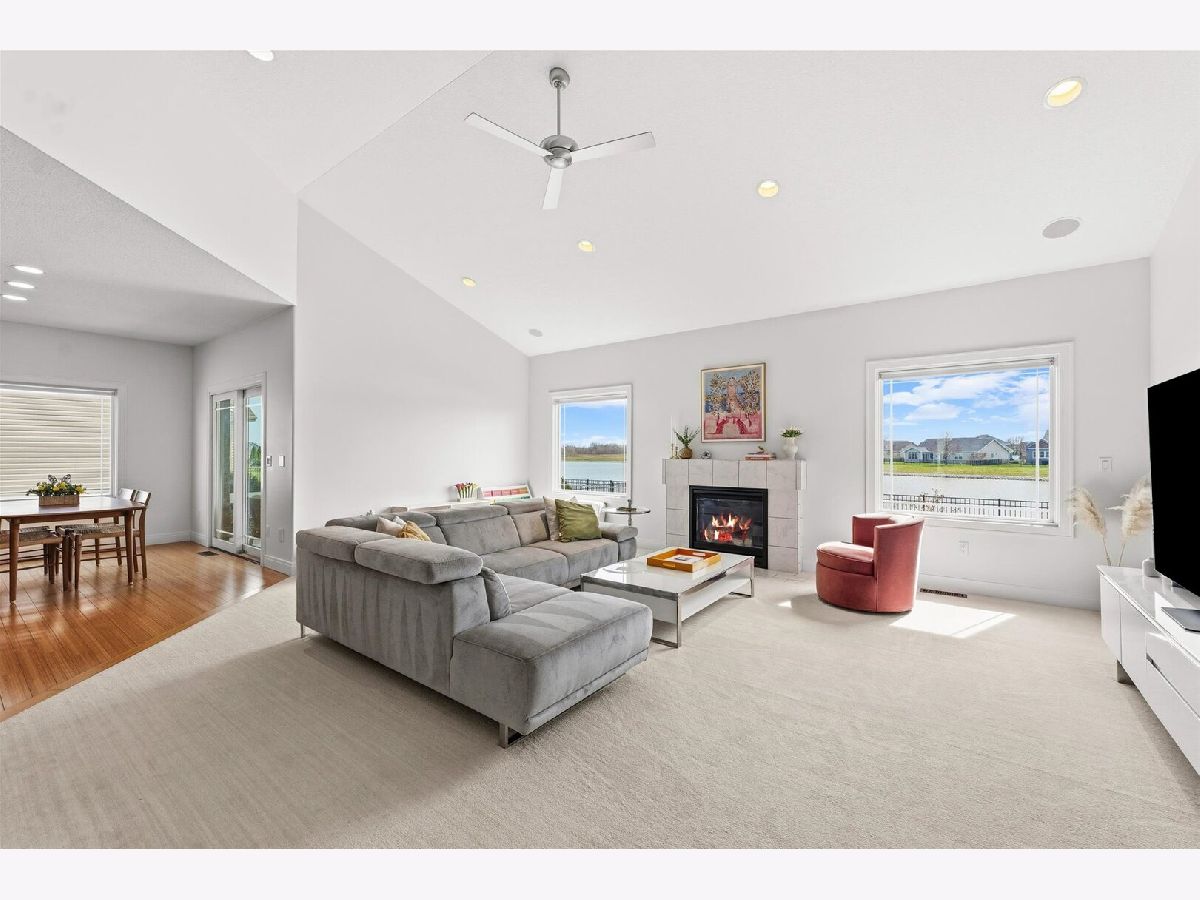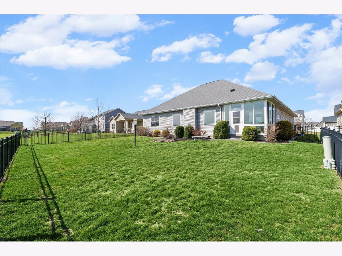 Custom-built modern ranch offers breathtaking lake views and exceptional attention to detail throughout in the highly sought-after Liberty on the Lake subdivision. Step inside to an inviting entryway highlighted by an elegant arched ceiling and decorative columns that seamlessly open into a spacious great room. Oversized windows frame serene, private lake views, filling the home with natural light. The gourmet kitchen is designed to impress, featuring custom cabinetry, sleek quartz countertops, under-cabinet lighting, stainless steel appliances, and a stylish custom backsplash-perfect for both everyday living and entertaining. The open layout provides an abundance of space to host gatherings with ease. Relax year-round in the sun porch, complete with a range hood and gas grill, ideal for indoor-outdoor entertaining. The luxurious owner's suite offers a private retreat with a spa-like bath, including a separate shower, dual vanities, and a spacious walk-in closet equipped with a custom built-in organizer. Two additional generously sized bedrooms share a thoughtfully designed layout with a separate shower and toilet area for added convenience. The finished basement expands your living space with a large family room, an additional bedroom, a full bath, and multiple storage areas-perfect for guests, hobbies, or recreation. Outside, enjoy a professionally landscaped yard and a fenced backyard with an elegant iron fence. Additional updates and features include geothermal, a radon mitigation system (2022), fresh paint (2022), and new carpet in the living room and primary bedroom (2022). Located in a vibrant community with scenic walking paths, two parks, and convenient access to shopping, dining, and the University of Illinois, this home truly has it all. Experience comfort, style, and stunning lakefront living.