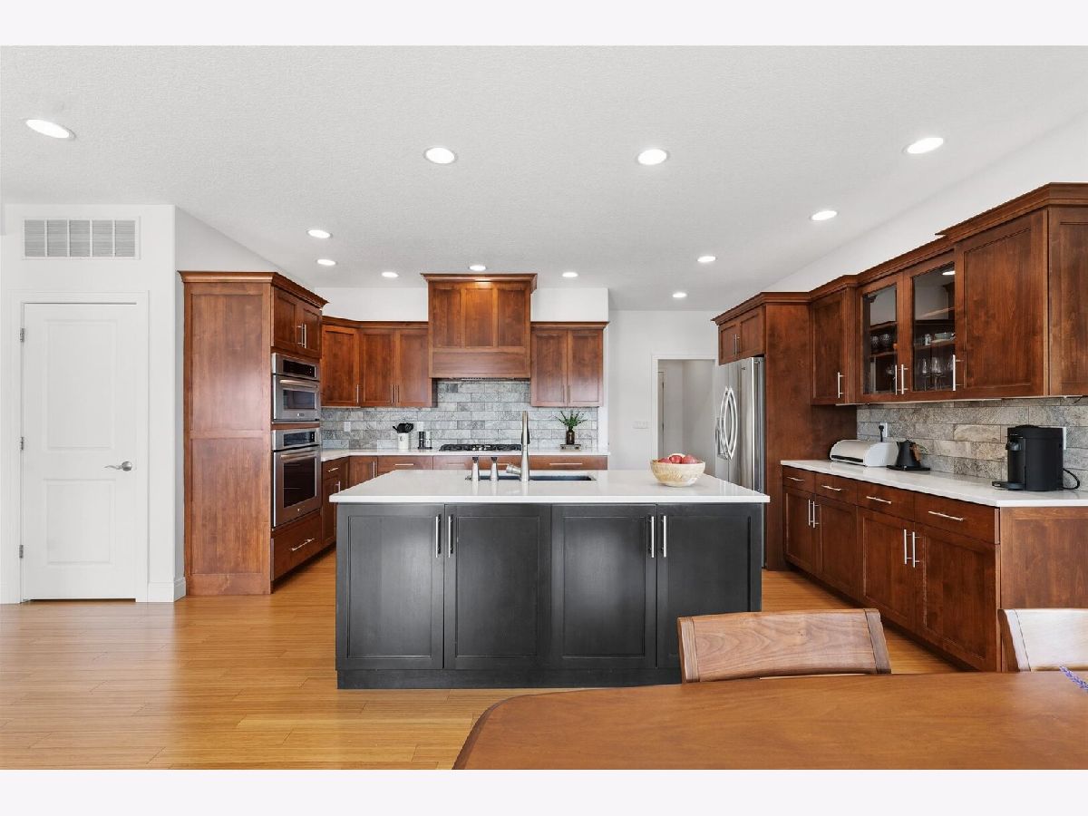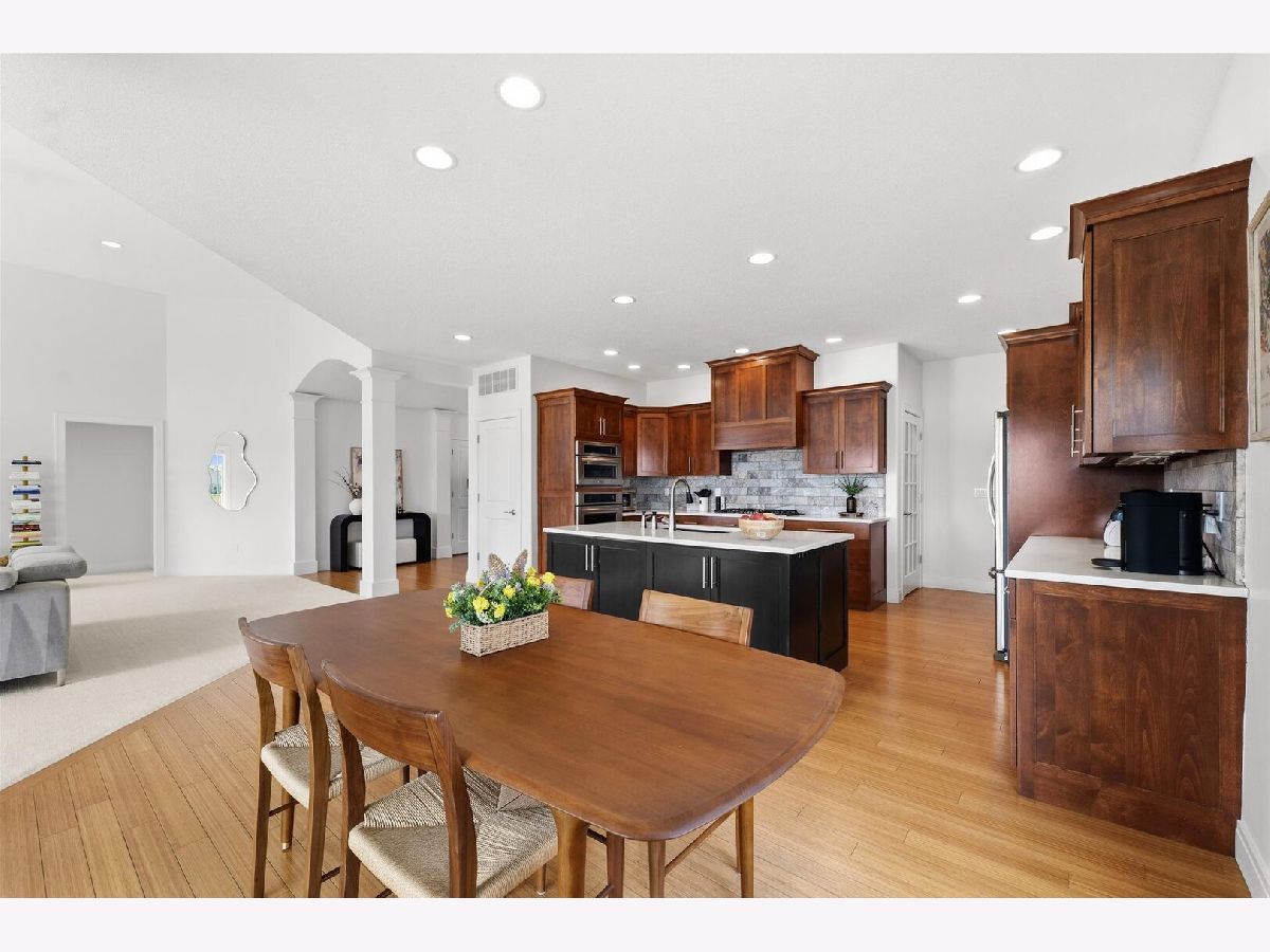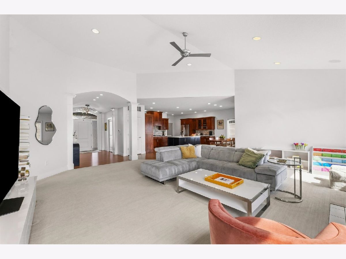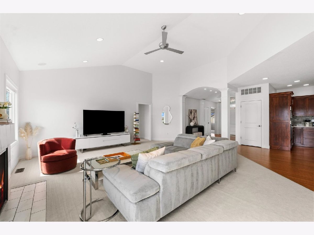 Custom-built modern ranch offers breathtaking lake views and exceptional attention to detail throughout in the highly sought-after Liberty on the Lake subdivision. Step inside to an inviting entryway highlighted by an elegant arched ceiling and decorative columns that seamlessly open into a spacious great room. Oversized windows frame serene, private lake views, filling the home with natural light. The gourmet kitchen is designed to impress, featuring custom cabinetry, sleek quartz countertops, under-cabinet lighting, stainless steel appliances, and a stylish custom backsplash-perfect for both everyday living and entertaining. The open layout provides an abundance of space to host gatherings with ease. Relax year-round in the sun porch, complete with a range hood and gas grill, ideal for indoor-outdoor entertaining. The luxurious owner's suite offers a private retreat with a spa-like bath, including a separate shower, dual vanities, and a spacious walk-in closet equipped with a custom built-in organizer. Two additional generously sized bedrooms share a thoughtfully designed layout with a separate shower and toilet area for added convenience. The finished basement expands your living space with a large family room, an additional bedroom, a full bath, and multiple storage areas-perfect for guests, hobbies, or recreation. Outside, enjoy a professionally landscaped yard and a fenced backyard with an elegant iron fence. Additional updates and features include geothermal, a radon mitigation system (2022), fresh paint (2022), and new carpet in the living room and primary bedroom (2022). Located in a vibrant community with scenic walking paths, two parks, and convenient access to shopping, dining, and the University of Illinois, this home truly has it all. Experience comfort, style, and stunning lakefront living.