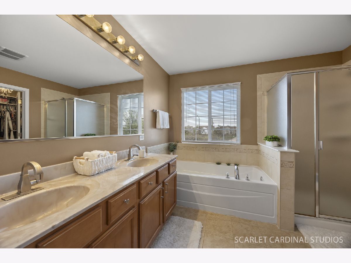 "PICTURE PERFECT" best describes this absolutely stunning dream home nestled in the highly desirable Edgewater subdivision! This beautifully maintained residence offers 4 spacious bedrooms, 2 full and 2 half bathrooms, a finished basement, a fully fenced yard, an expansive patio with pergola-perfect for entertaining-and a rare 3-car tandem garage! From the moment you step into the dramatic two-story foyer, you are welcomed by an elegant living room featuring a cozy gas fireplace, custom built-in shelving, and gleaming hardwood flooring. The formal dining room also showcases rich hardwood floors, ideal for hosting gatherings. The gourmet kitchen is a true showstopper, boasting maple cabinetry, granite countertops, stainless steel appliances, hardwood flooring, a pantry closet, and a bright eat-in area. The eat-in area flows seamlessly into a sun-filled 4-season room-perfect for entertaining or simply relaxing with a good book-with a sliding glass door that opens directly to the patio, creating effortless indoor/outdoor living. The generously sized family room offers comfort and style with newer carpet (2024). Upstairs, retreat to the luxurious primary suite complete with a private ensuite bath featuring a separate shower, relaxing soaking tub, and a large walk-in closet. Three additional spacious bedrooms and a full bathroom complete the second level. The finished basement expands your living space with a half bath, exercise room with French doors, TV viewing area, recreation space, and a versatile office or playroom-perfect for today's lifestyle! Major mechanical updates include a new HVAC system and hot water heater (2025). Step outside to enjoy the professionally landscaped yard with three garden beds on the south side-perfect for growing your favorite vegetables-and a cozy fire pit area for relaxing evenings. Located in sought-after Troy School District 30C, including Troy Hofer Elementary, Troy Middle School, and Joliet West High School. This is truly an amazing home-WELCOME HOME!