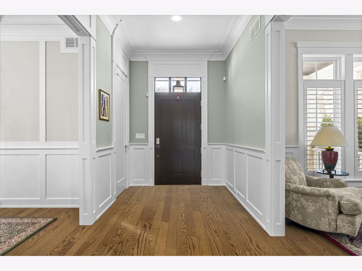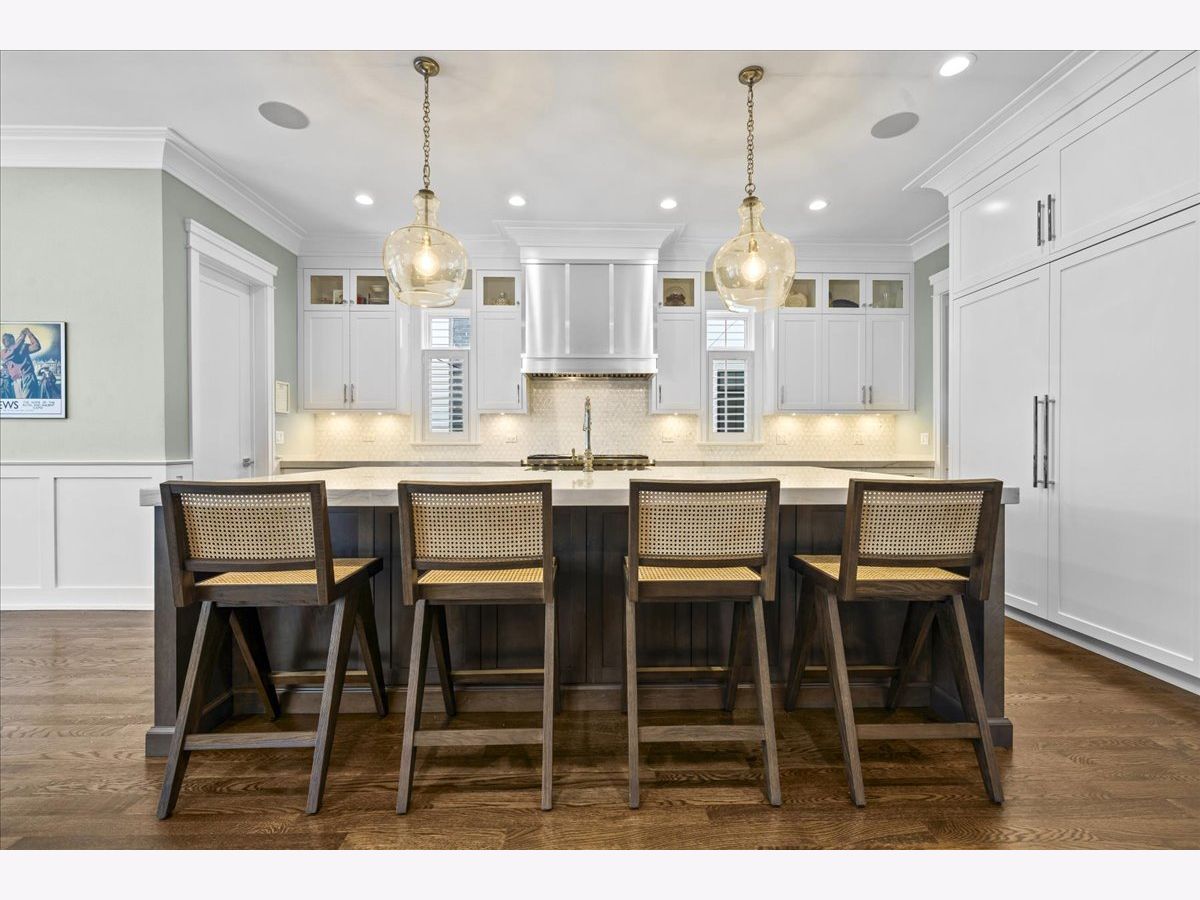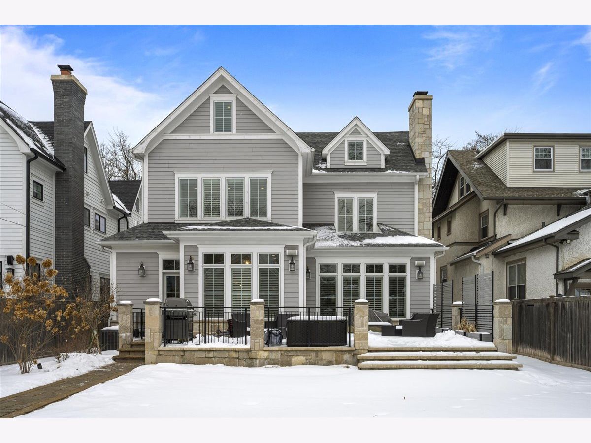 A truly exceptional 2019 construction in the heart of East Wilmette! This stunning home is rich with refined craftsmanship and thoughtful design at every turn. Each room showcases exquisite details including wainscoting and double crown moldings, stunning hardwood floors and plantation shutters throughout. Ten-foot ceilings elevate the first floor, beginning with a grand foyer that opens to an elegant living room and a private office featuring custom cabinetry and full data/wifi wiring. The dining room impresses with a striking coffered ceiling and flows seamlessly into an incredible butler's pantry complete with abundant custom cabinetry (upper glass fronts), dual quartz countertops, a beverage refrigerator, and sink, plus an additional walk-in pantry for effortless entertaining. Open to the kitchen, the family room is both warm and sophisticated, centered around a gas fireplace framed by custom built-ins. French doors lead to a raised stone terrace, with privacy fence, perfect for indoor-outdoor living. And the kitchen? Simply spectacular. Designed for both beauty and function, it features a show-stopping quartz island seating six, two dishwashers, a farmhouse stainless steel sink, a 60" Sub-Zero refrigerator, and a 48" Wolf six-burner double oven range. A sun-filled breakfast room and an impeccably organized mudroom complete the first floor. Upstairs, gracious 9' ceilings enhance the serene second floor. The luxurious primary suite offers a spacious walk-in closet and a spa-inspired bath with radiant heated floors, steam shower, and private water closet. Three additional bedrooms are bright, roomy and all ensuite. The third floor features a bedroom, bonus room, and full bath, accented by charming window seats. Would make a fabulous second office, hang out room or craft center! The lower level expands the living space with a massive recreation room, two additional bedrooms, a designer full bath, exercise room, and a wet bar, plenty of space to host guests! The yard is large and professionally landscaped. All of this just steps from downtown Wilmette, schools, Metra, and the lake.