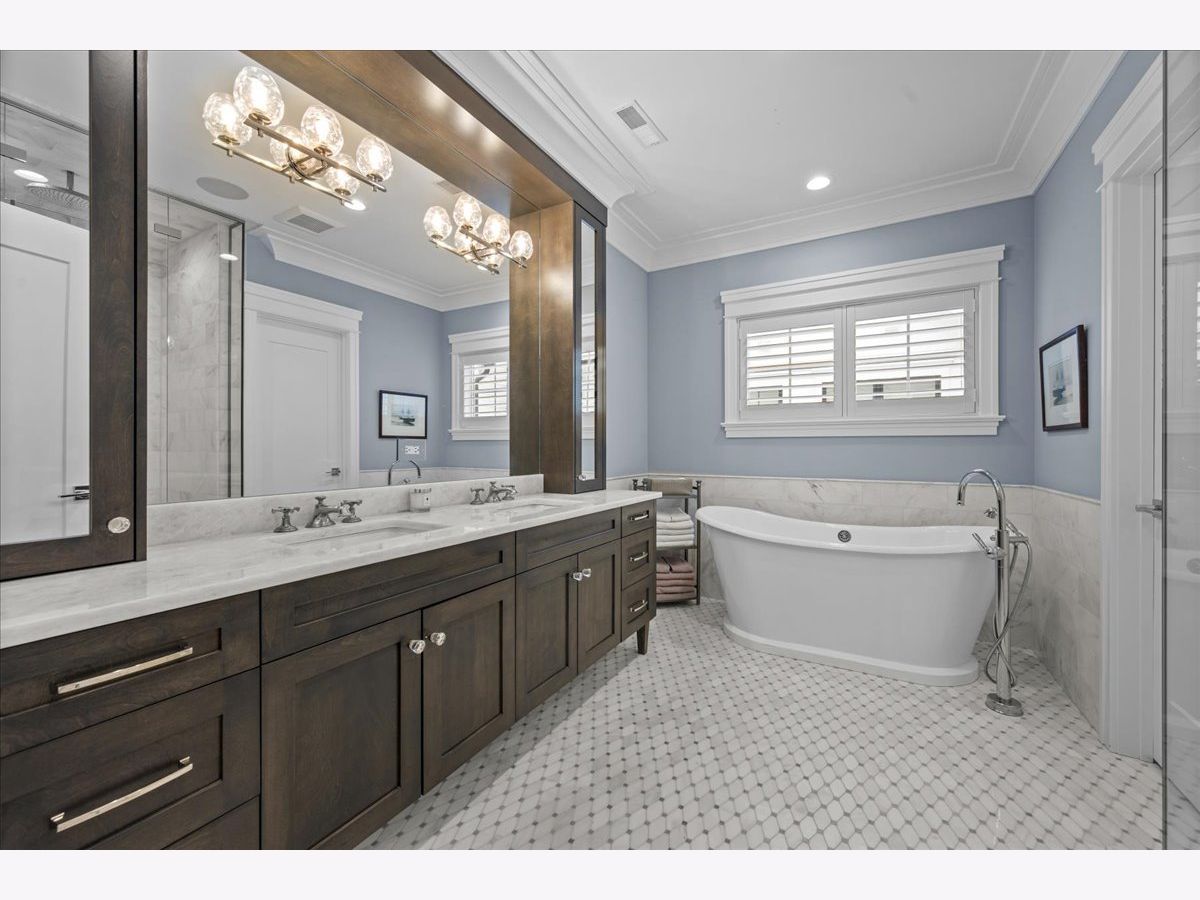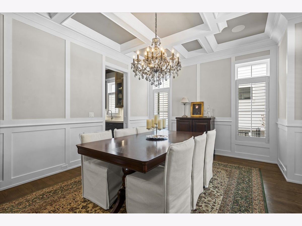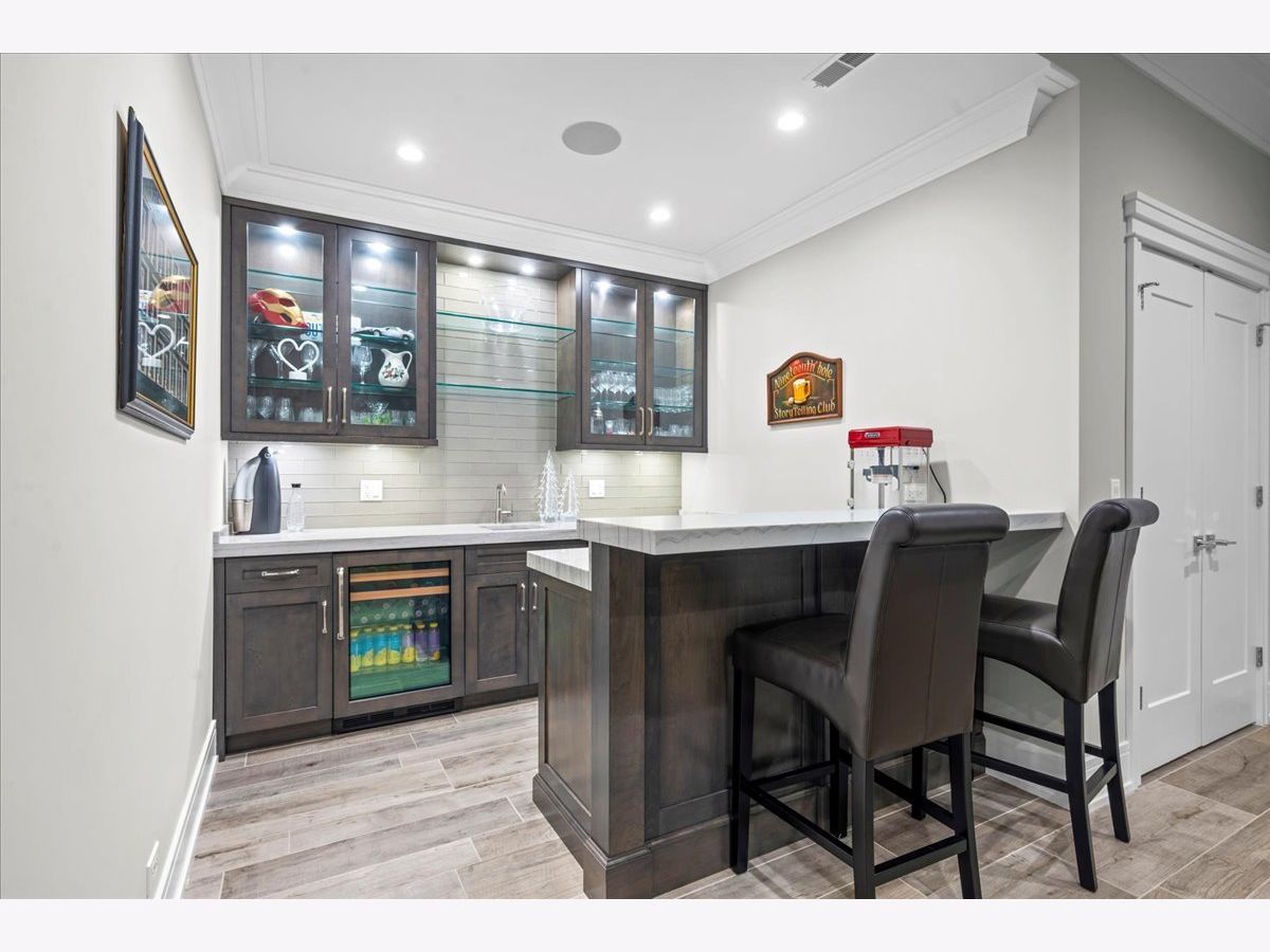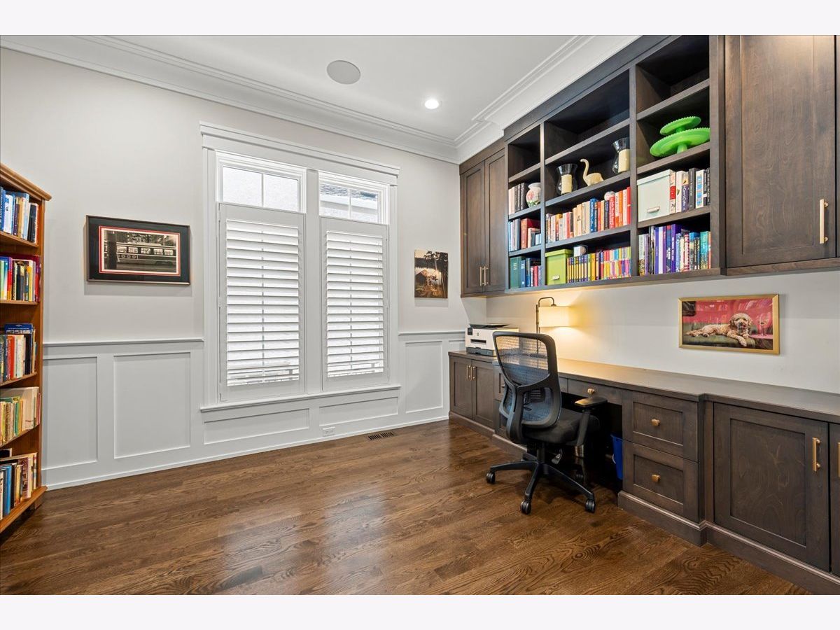 A truly exceptional 2019 construction in the heart of East Wilmette! This stunning home is rich with refined craftsmanship and thoughtful design at every turn. Each room showcases exquisite details including wainscoting and double crown moldings, stunning hardwood floors and plantation shutters throughout. Ten-foot ceilings elevate the first floor, beginning with a grand foyer that opens to an elegant living room and a private office featuring custom cabinetry and full data/wifi wiring. The dining room impresses with a striking coffered ceiling and flows seamlessly into an incredible butler's pantry complete with abundant custom cabinetry (upper glass fronts), dual quartz countertops, a beverage refrigerator, and sink, plus an additional walk-in pantry for effortless entertaining. Open to the kitchen, the family room is both warm and sophisticated, centered around a gas fireplace framed by custom built-ins. French doors lead to a raised stone terrace, with privacy fence, perfect for indoor-outdoor living. And the kitchen? Simply spectacular. Designed for both beauty and function, it features a show-stopping quartz island seating six, two dishwashers, a farmhouse stainless steel sink, a 60" Sub-Zero refrigerator, and a 48" Wolf six-burner double oven range. A sun-filled breakfast room and an impeccably organized mudroom complete the first floor. Upstairs, gracious 9' ceilings enhance the serene second floor. The luxurious primary suite offers a spacious walk-in closet and a spa-inspired bath with radiant heated floors, steam shower, and private water closet. Three additional bedrooms are bright, roomy and all ensuite. The third floor features a bedroom, bonus room, and full bath, accented by charming window seats. Would make a fabulous second office, hang out room or craft center! The lower level expands the living space with a massive recreation room, two additional bedrooms, a designer full bath, exercise room, and a wet bar, plenty of space to host guests! The yard is large and professionally landscaped. All of this just steps from downtown Wilmette, schools, Metra, and the lake.