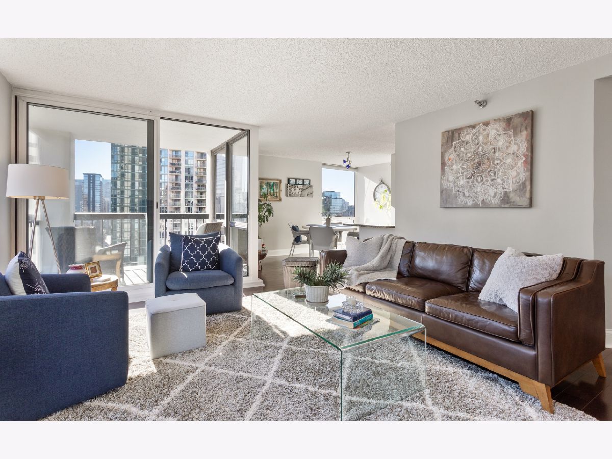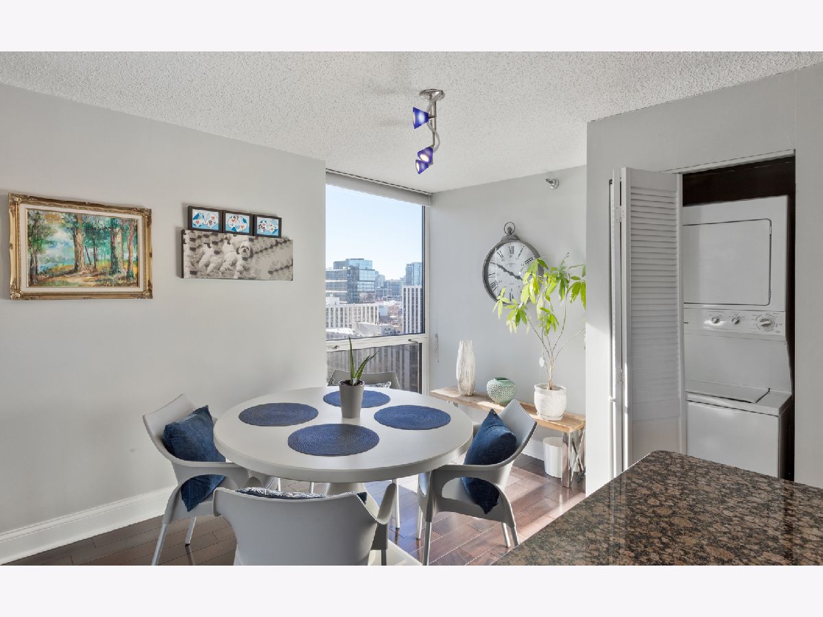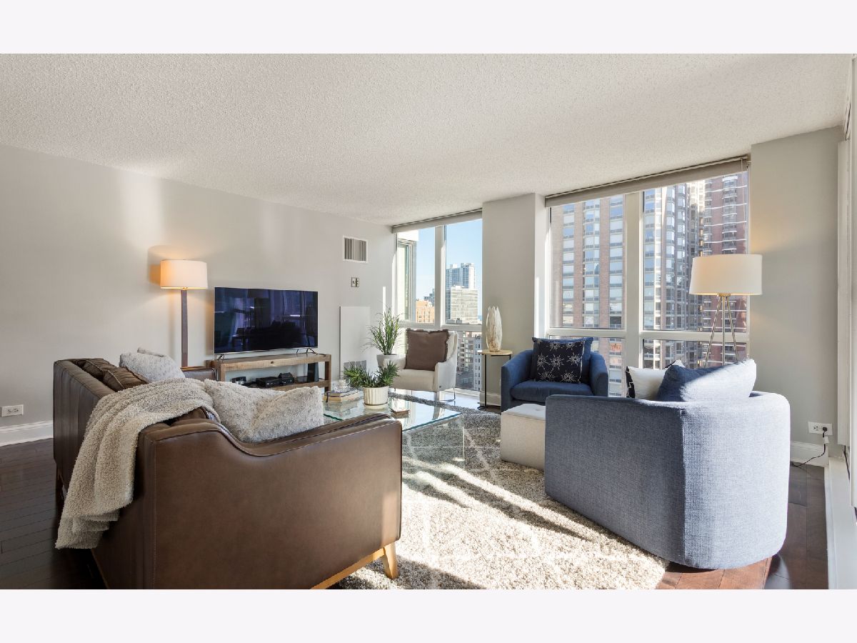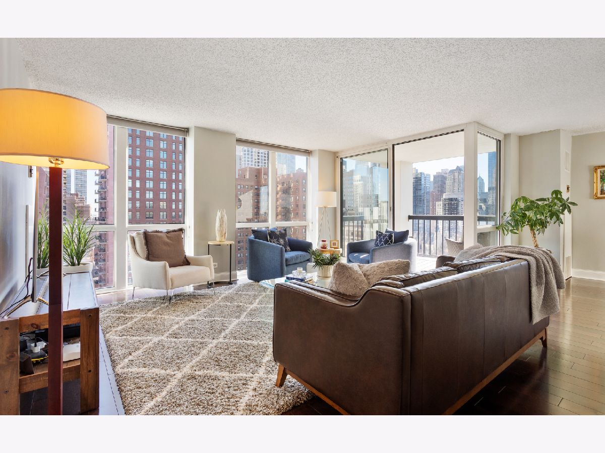 Gold Coast Living @ It's Finest. Spacious Corner Unit Featuring 2 Bed 2 Bath With Tons of Natural Sun Light. Located In The Elm at Clark, A Premier Walk Friendly/Full Amenity Building. This Stylish 18th Floor Sun Drenched Corner Unit Features What Buyers Are Looking For: Multiple Exposures (South & East), HRDWD Floors, SS Appliances, Private Covered Balcony, Great Closet Space, Generous Size Bedrooms, In-Unit Full Size Washer/Dryer & Floor to Ceiling Windows with Dramatic Views. One Garage parking spot (P535) INCLUDED! Location Can't Be Better; Walking Distance to Wells Street Activity, Lake Front Access, CTA/Red Line, Grocery, Rush Street Restaurants, Oak St/Michigan Ave Shopping & GC Farmers Market --- All Steps From The Front Door. This Building Has It All: RENTER Friendly, DOG Friendly, INVESTOR Friendly, Outdoor Pool, Updated High (8th) Floor Gym w/ Views & Natural Sunlight, 24/7 Doorman & So Much More... This Is A Must See & A Must Have!