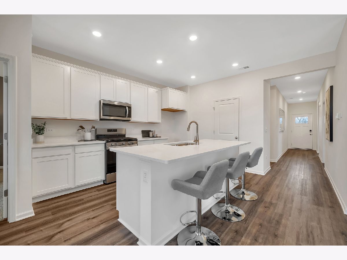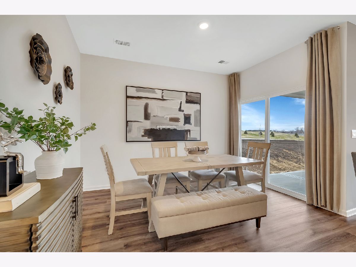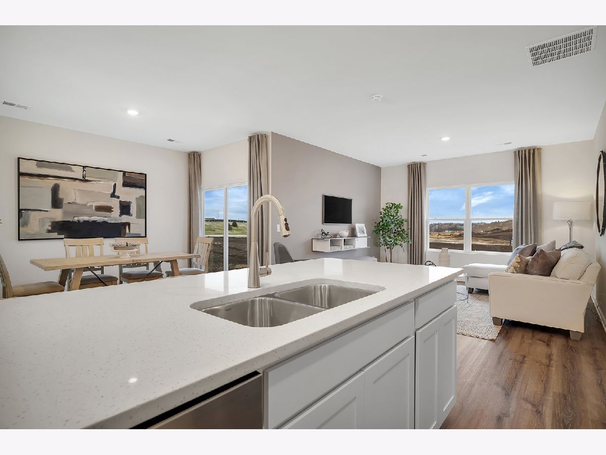 Envision yourself at 1124 Bluebell Lane in Bartlett, Illinois a beautiful new home in The Grasslands community. This ranch duplex home is ready for an immediate move-in! Homesite backs to open ground and includes fully sodded yard and covered back patio. The Taylor plan offers 1,505 square feet of living space with 3 bedrooms, 2 baths, and 9-foot ceilings. When you first enter the home you will see the secondary bedroom, full bathroom, and linen closet. Down the hall, you will walk into the open concept great room, kitchen, and dining. The kitchen layout includes a large island with an overhang for stools, 42-inch designer cabinetry with crown molding and soft close drawers. Additionally, the kitchen features a pantry, modern stainless-steel appliances, quartz countertops, and easy-to-maintain luxury vinyl plank flooring. Enjoy your private get away with your spacious primary bedroom and en suite bathroom with a raised height dual sink, quartz top vanity, and walk-in shower with clear glass shower doors. All Chicago homes include our America's Smart Home Technology. Photos are of similar home and model home. Actual home built may vary.