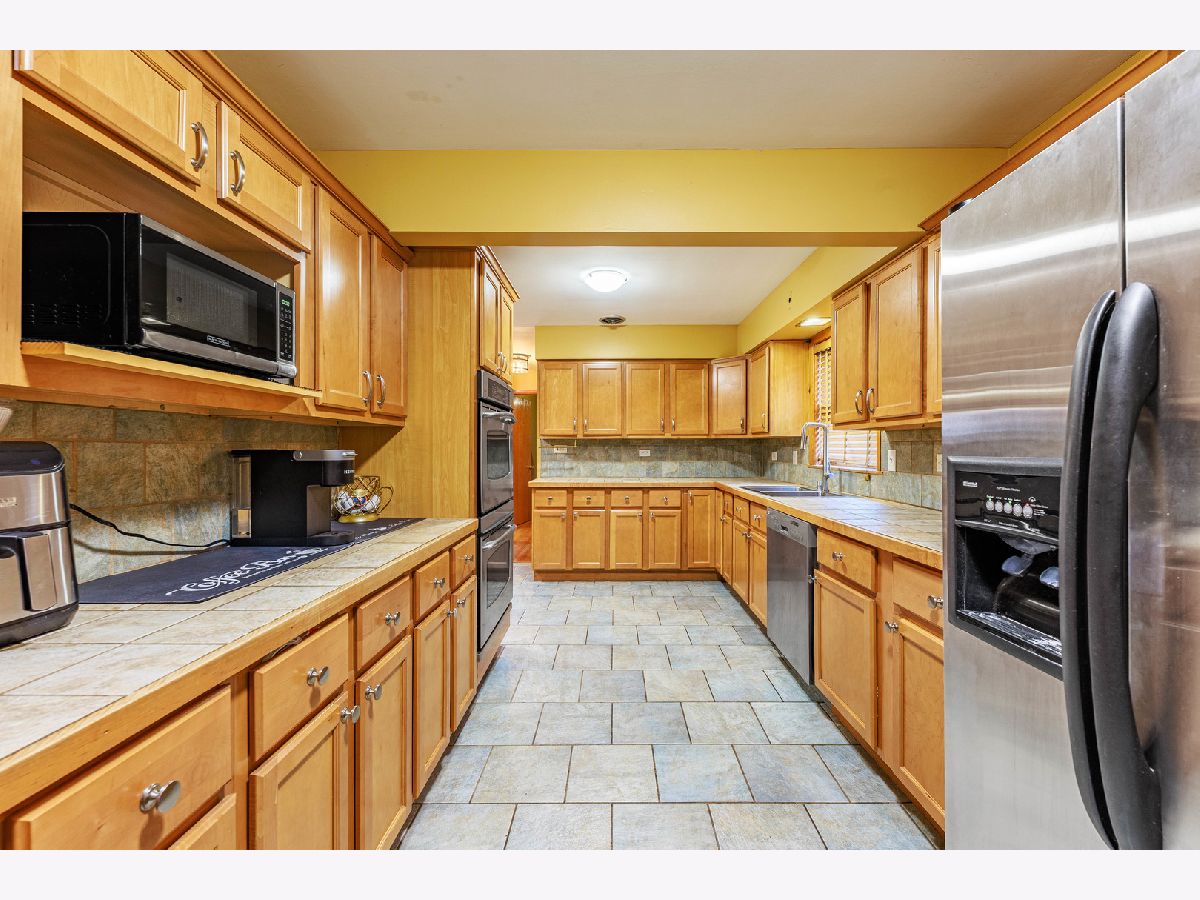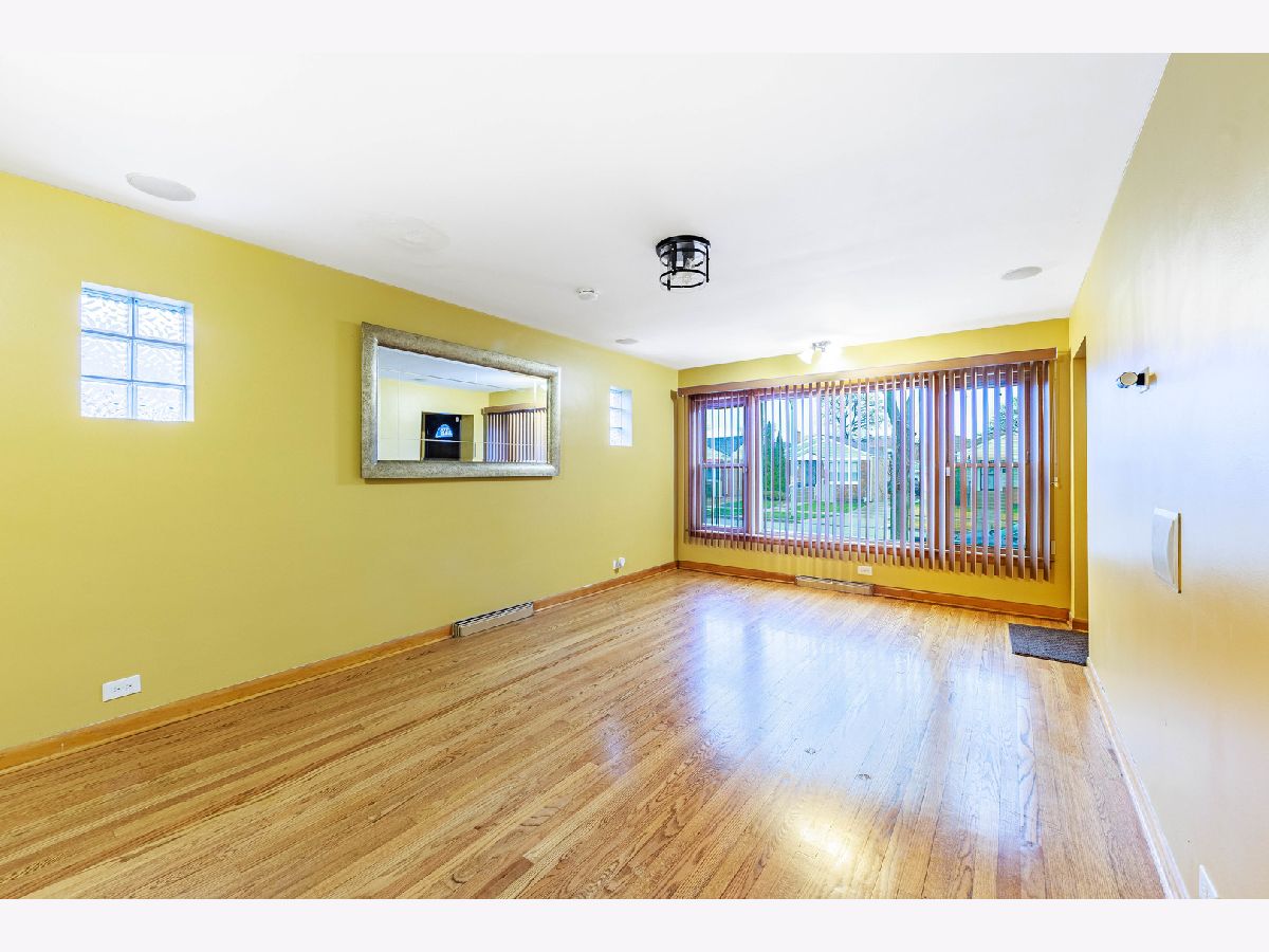 Well-maintained all-brick home offering comfort and functionality throughout. This property features a spacious living room and two bedrooms with hardwood flooring. The chef's kitchen is equipped with double ovens, two commercial-grade exhaust hoods, a built-in deep fryer, and an abundance of cabinetry ideal for cooking and entertaining. The fully finished basement is designed as an entertainment space, showcasing sleek epoxy flooring with a glossy finish and a newer sump pump. Exterior highlights include a two-car detached garage and a privacy fence. Property is being sold AS IS.