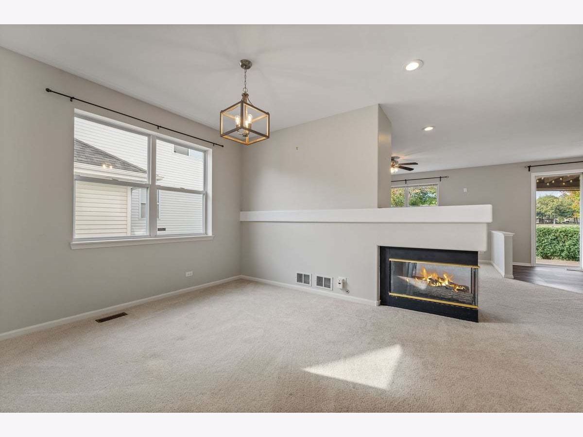 From your deck, enjoy year-round views of the 4th hole on the Championship Golf Course at Orchard Valley. Rarely available home in this highly sought-after golf course community. This impressive property offers 3 bedrooms, 2.1 bathrooms, convenient first-floor laundry, and a finished basement, providing ample living and storage space. Upon entering, you are greeted by a dramatic two-story entry that leads to a formal living and dining room, perfect for entertaining. The abundance of windows throughout the home fills every space with natural light, creating a bright and inviting atmosphere. This open floor plan provides plenty of versatile space, with the beautifully updated kitchen seamlessly opening to the family room with a cozy double sided fireplace. Both of these main living areas offer spectacular views of the Orchard Valley's 18-Hole Championship Course which is currently undergoing a major renovation with plans to reopen for the 2026 golf season. The kitchen itself is a highlight, featuring elegant quartz countertops, modern stainless steel appliances, and a custom backsplash. Upstairs, you will find the spacious primary suite, complete with an attached bath for ultimate comfort and privacy. The other two bedrooms are generously sized, offering a serene retreat for family or guests. Additionally, the open and airy loft provides flexible space that can be used as desired, whether for an office, den, or easily converted into a 4th bedroom if needed. This desirable property is conveniently located, offering easy access to a variety of shopping and dining options, and is just moments away from I-88, making commuting simple. Given its prime location, golf course views, and extensive features, we anticipate this home will not be on the market for long. Schedule your showing today to experience all that this remarkable home has to offer and make it yours.