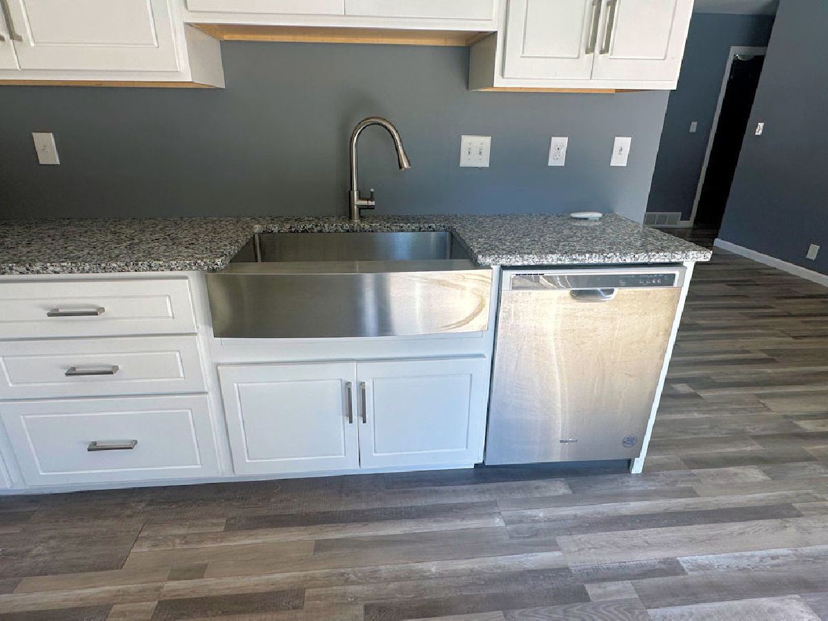 Come see this house today! New white kitchen cabinets, hard surface countertops, new laminate flooring throughout, new vinyl siding, new windows and new appliances! Bring your furniture and start living!
