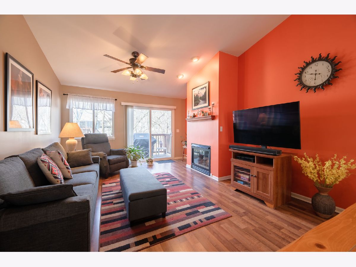 Tucked among mature trees in the highly sought-after Oaks at Hidden Glen, this sharp and contemporary townhome offers the ideal blend of privacy, comfort, and modern style. The main living level is designed for effortless everyday living and entertaining, featuring a spacious kitchen with breakfast area. Living/dining room with high ceilings and fireplace. Two bedrooms are located on this level, along with a full bath with double vanity. A sliding glass door opens to a private balcony-perfect for grilling or enjoying your morning coffee surrounded by trees. The walkout lower level expands your living space with a full third bedroom, an additional full bath, a generous recreation area and convenient laundry room. Sliding glass doors lead to peaceful wooded common area. Major exterior updates include a new roof and gutters (2022), offering peace of mind and long-term value. Ideally located just minutes from premier shopping, dining, and expressway access, this home delivers both tranquility and convenience. Surrounded by nature. Thoughtfully designed. Move-in ready. This is townhome living at its best.