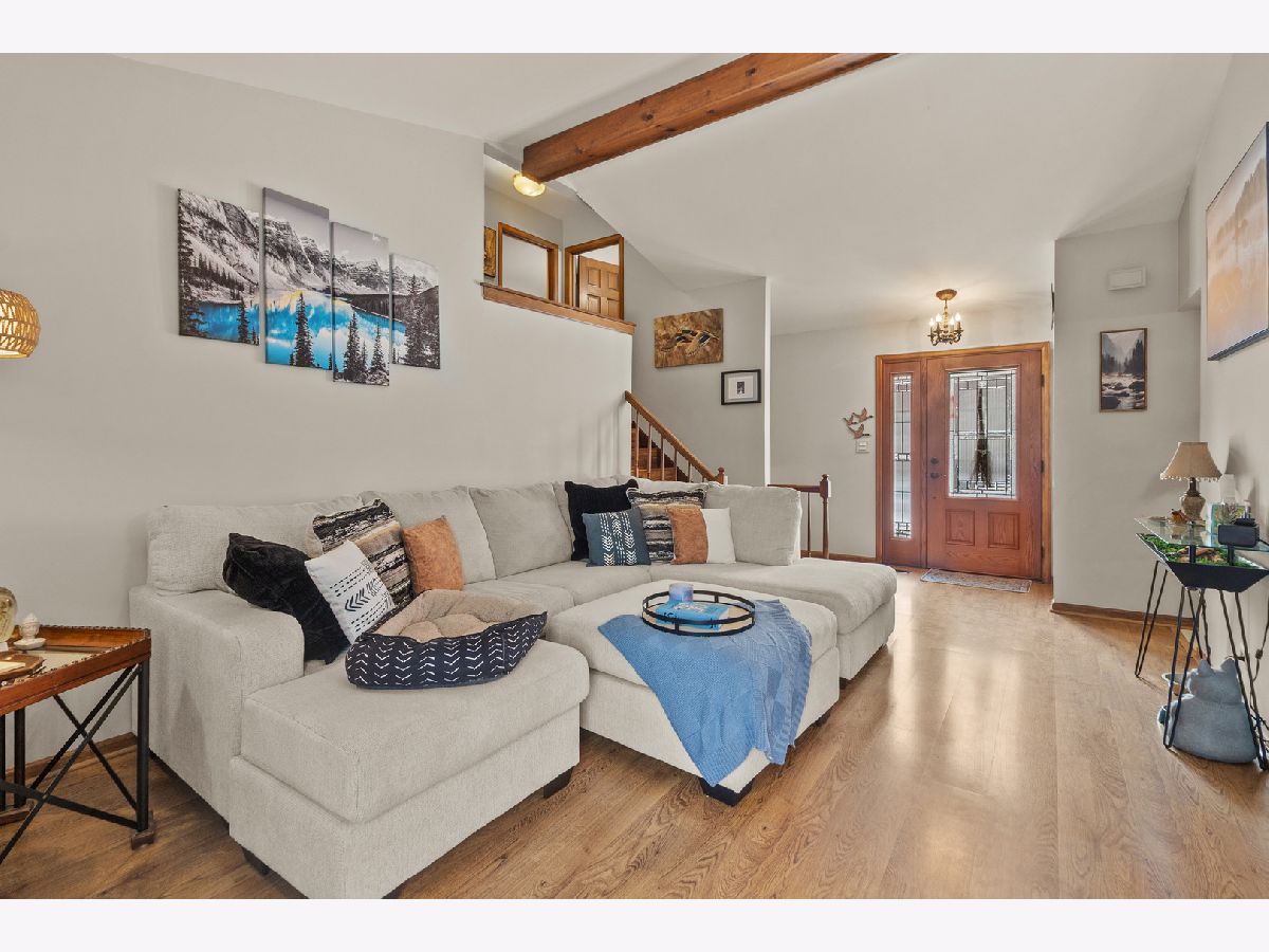 Say hello to a home that refuses to be boring. This 3-bedroom, 1.5-bath tri-level is not here to blend in. It's here to be remembered. The moment you step inside, BOOM!... a soaring cathedral ceiling with exposed beams stretches across the entire main living space like it's auditioning for a design magazine. Newer laminate flooring keeps things stylish and low-maintenance, while the kitchen proudly marches to the beat of its own drum: butcher-block counters, wainscoted walls, a pantry closet, shiny stainless steel appliances (all about 3 years young), and a moveable island that has officially abandoned "prep space" to live its best life moonlighting as a full-time coffee bar. The separate dining room is roomy enough for dinner parties, craft explosions, or that one puzzle you swear you'll finish. The living room is cozy and charming, but don't worry, it's NOT at all small! Upstairs, all three bedrooms are hanging out together like a well-behaved sitcom cast. The HUGE primary bedroom features triple mirrored closet doors so you can check your outfit, practice your victory pose, or accidentally startle yourself at night... dealer's choice. The guest room is the only one with carpet because it likes being unique (but extra laminate flooring will be included), plus a third bedroom and a delightfully updated bathroom with an extra-deep soaker tub, tile floor, and a Bluetooth smart light/speaker so your shower can double as a concert venue. The lower level is where the vibes get extra good: a newly renovated half bath, laundry room with stacked washer & dryer, a mudroom ready for boots, bags, and chaos, and an awesome family room (guitar mounts not included, but rock-star dreams are welcome) with a walk-out through a brand-new patio door to a backyard that clearly understood the assignment. Out back, you'll find a concrete and paved patio, paver walkway, movable fencing creating a VIP pet lounge, full perimeter fencing, raised garden beds for your farm-to-table fantasies, and a garden shed that quietly holds all your "I'll deal with this later" stuff. Toss in a 1.5-car (extra-deep) attached garage, freshly painted interior, newer replacement windows, and brand-new pull-down attic stairs, and this home is basically overachieving. Big-ticket updates are already handled too: Furnace & Aprilaire (2011), Central Air (2014), and Water Heater (2019). And just when you think it can't get better, BOOM again! You're conveniently located near the library and the Bartlett Park District amenities like the Community Center (pool, gym, fitness center, programs), Nature Center, golf, skate park, parks, and trails, plus senior living options (Victory Centre), schools (Centennial), and a bikeable, quiet suburban environment with nearby golf (Apple Orchard) and skiing (Villa Olivia) for recreation. This isn't just a house. It's a real home with personality, punch, and a little bit of sass, ready for someone who appreciates a home that doesn't take itself too seriously. Come see it before someone else falls in love first!