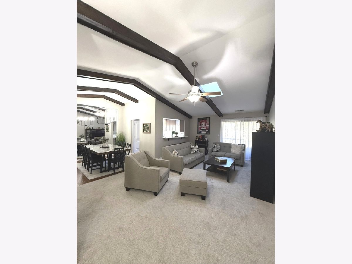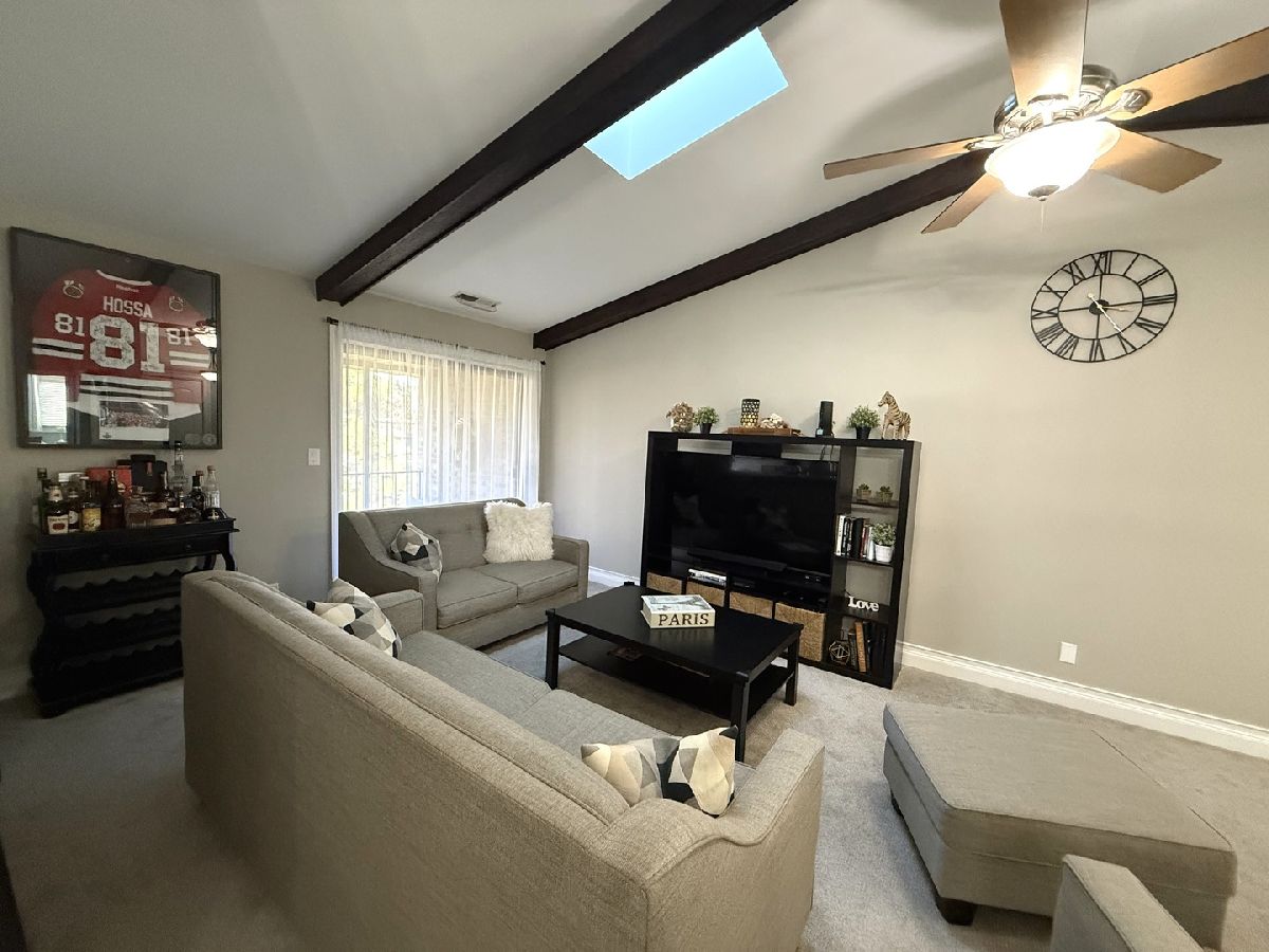 LOOK NO FURTHER!!! 2ND FLOOR PENTHOUSE UNIT WITH VAULTED CEILINGS, SPACIOUS BALCONY AND FINISHED GARAGE WITH EPOXY FLOORS. LOCATED IN WELL MAINTAINED BUILDING. BRIGHT AND OPEN LAYOUT THAT OFFERS PLENTY OF LIVING SPACE. FRESHLY PAINTED WITH MODERN COLORS. BIG SKYLIGHT BRIGHTENS AND WARMS UP THE WHOLE LIVING ROOM. NEWER FLOORING THROUGHOUT. THE GORGEOUS KITCHEN BOASTS QUARTZ COUNTER TOPS, CUSTOM TILE BACKSPLASH, CONTEMPORARY STYLED 42 INCH CABINETRY, CUSTOM LIGHTING AND A HIGH END STAINLESS STEEL APPLIANCE PACKAGE. THE FULL BATH HAS BEEN MODERNIZED WITH EYE-CATCHING CERAMIC TILE, VANITY AND EXCLUSIVE FIXTURES. PRIMARY BEDROOM WITH HUGE WALK-IN-CLOSET, 2ND BEDROOM HAS ADDITIONAL STORAGE CLOSET, PLUS LAUNDRY IN UNIT MAKES THIS A RARE FIND. NEWER ROOF, FURNACE AND WATER HEATER. ENJOY THE WALKING PATHS AND BEAUTIFUL PARK SURROUNDING THE COMPLEX; AMPLE PARKING SPACES FOR YOU AND YOUR GUESTS. WATER IS INCLUDED! LOCATION IS CLOSE TO SHOPPING, MAJOR EXPRESSWAYS AND METRA TRAIN!!!!!!!!!!!!! COME SEE THIS BEAUTIFUL HOME WHILE IT LASTS!!!!!!!!!!!