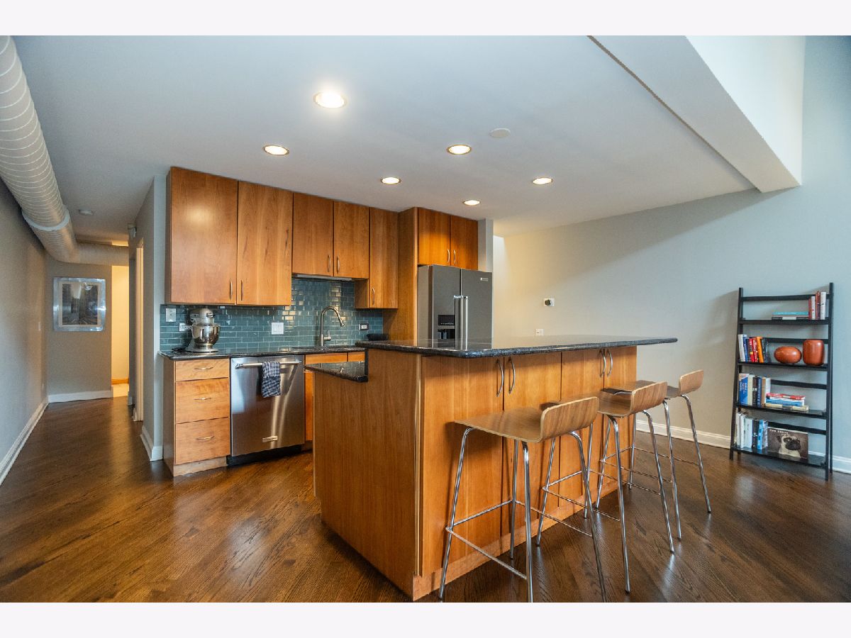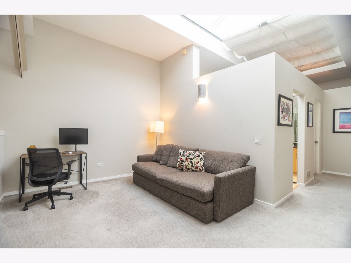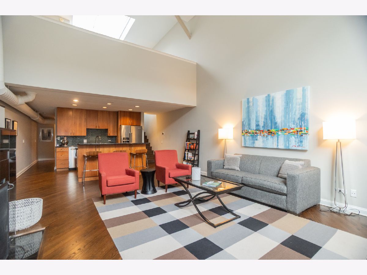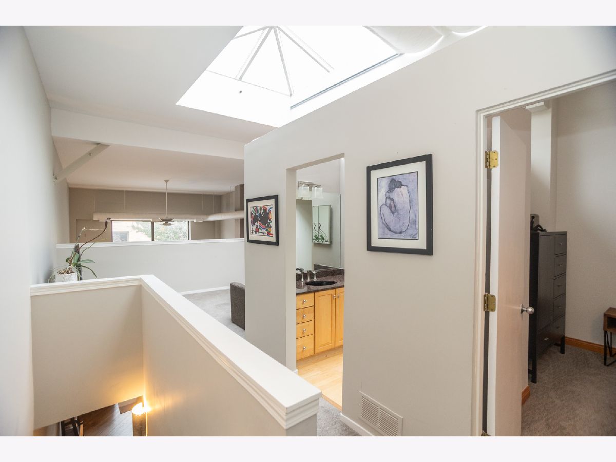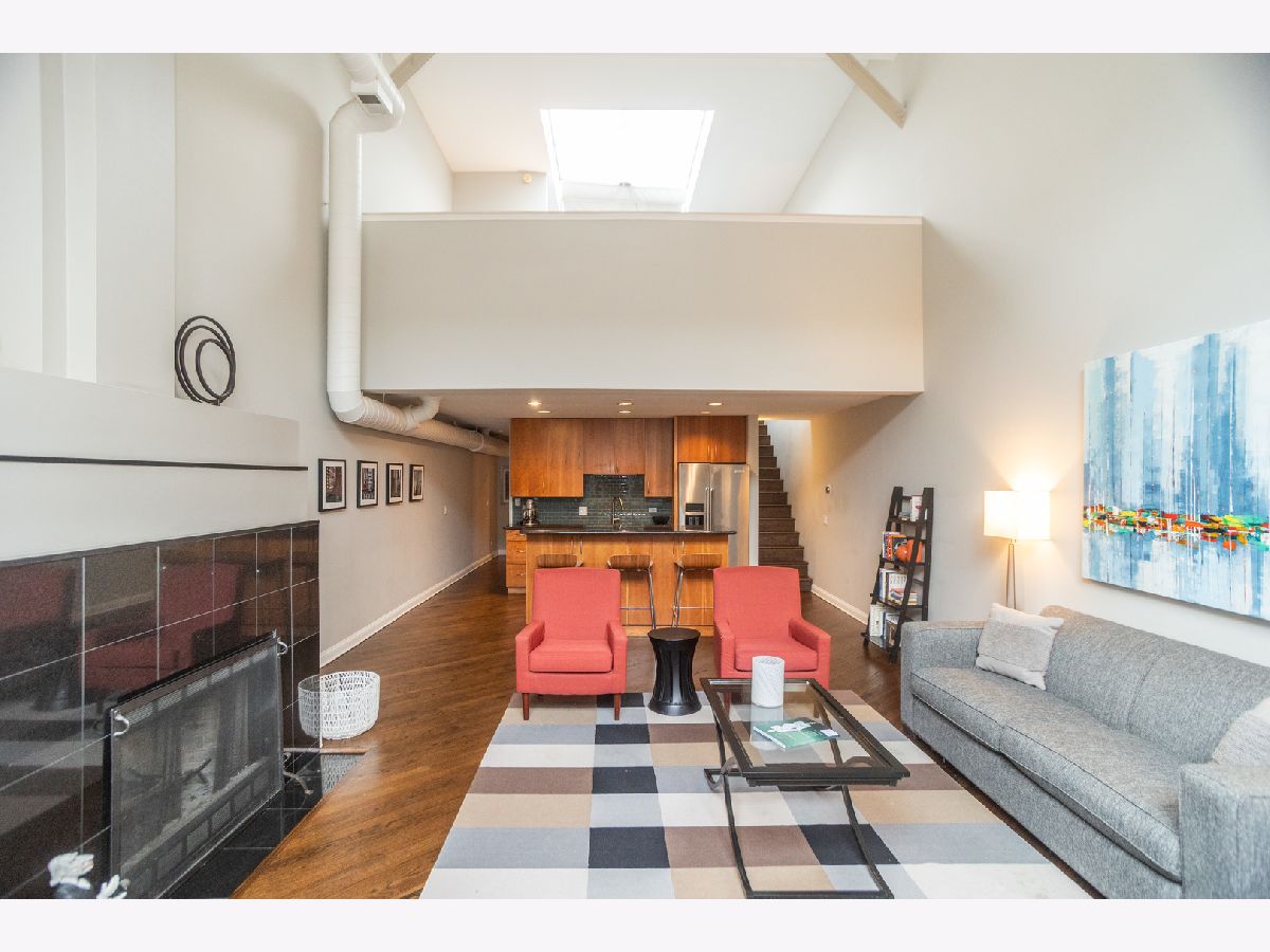 Welcome to this open, stylish and functional 2-bedroom and 2 full bath with loft condo and 1 assigned parking space included in the heart of the Southport Corridor. Moments from Wrigley Field, the captivating natural light flooding through an impressive center skylight stretching across the unit's vaulted ceilings will greet you upon entry. The bright spacious living room showcases a beautiful wood burning fireplace with hardwood floors leading to the fully stocked kitchen. The Kitchenaid stainless steel appliance package nestled amongst plentiful cabinetry is accented by granite counters and island with seating. Past the kitchen is the 2nd bedroom with two closets adjacent to the full guest bathroom with shower/tub combo and laundry closet with washer/dryer. Ascend the stairs into an extraordinarily flexible loft space conveniently showcasing the spacious primary bedroom and primary bathroom before entering the spacious versatile loft space. Additional features include a large storage closet with extra storage space on lower level, newly refinished hardwood floors, hot water heater and doors replaced in 2024, upper windows in 2016, private back patio, and a delightfully landscaped courtyard. Savor the close proximity to all of the dining, shopping, entertainment, and public transportation experiences in Wrigleyville and Lakeview areas while living in a comfortable and stylish urban residence.