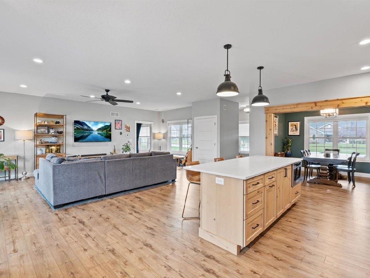 4-bed, 3-bath ranch in Milan-set just S of town in Holly Hills Estates on just over an acre, this move-in-ready home stands out with space, quality, & modern upgrades. Built in 2020-2021, the main level features an open-concept living room & kitchen with an island & seating, a formal dining room, & a pantry. The primary suite offers a walk-in closet & private en suite bath, while 2 additional bedrooms, another full bathroom, & a laundry closet complete the main floor. The basement includes a family room, wet bar, 4th bedroom, & 3rd bathroom, plus abundant storage. Outside, a stone patio overlooks the expansive open lot. The property includes an attached 3-car garage & a heated 24x40 detached shop with a 12-ft door. Solar panels installed in 2022 are owned, along with the water softener & RO system. Additional updates include a widened driveway entry in 2025.