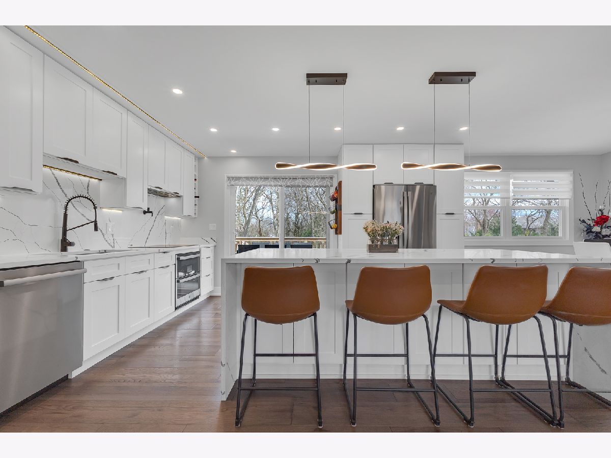 ***Your Dream Home Awaits*** You will be impressed by this stunning home, showcasing high-end upgrades and designer finishes throughout. One of a kind, sprawling raised ranch seated on beautiful lot in English Valley subdivision. Everything is already done! Spectacular open concept with top of the line finishes & unique outdoor space. The magazine-worthy Chef's European kitchen boasts quartz large island and GE Profile appliances . Elegant dining & living room with an electric fireplace. Enjoy three brand-new, ultra modern bathrooms, each thoughtfully designed with sleek lines, designer fixtures, and top of the line finishes that bring a sense of luxury and relaxation to everyday living. New prefinished Hickory hardwood flooring & LED lighting throughout. Newly finished lower level with huge recreation room with an electric fireplace & new bath. New patio doors & newer windows. Roof 2024. HVAC system 2024. New LP siding. 2 car garage with a new rigid plastic flooring. A large deck off the kitchen-perfect for enjoying your morning coffee. Step out onto stamped patio and envision yourself relaxing here all summer long. Stylish, relaxed sophistication & incredible attention to detail throughout that is sure to impress. Truly a 10! Excellent location! great proximity to schools, restaurants & shopping and all engaging community activities, park district events that downtown Palatine has to offer!