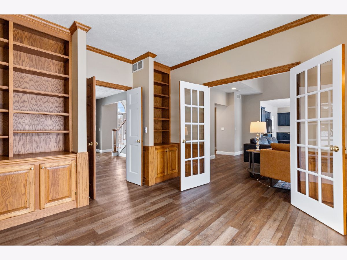 Looking for a spacious 5 Bedroom home on a large lot. Lot's of space inside & out. Convenient location too! Double doors into the main floor office, den, or study with a wall of built-ins. So many things new & updated, almost all windows and sliding glass doors. Newer roof & gutters (2019). In 2025 a new furnace & air conditioner. Newer water heater, newer driveway, newer sprinkler system for entire yard. Newer flooring, new carpet, many rooms freshly painted. Impressive 2-story foyer as you walk in. Open kitchen with center island, stainless steel appliances, updated lighting, granite countertops, pantry, abundant cabinetry, large eating area with sliders out to deck, light &bright. Butlers pantry opens up to formal dining room. 2-story family room with vaulted ceiling & a fireplace surrounded by stone and with remote control. Master Bedroom with it's own bathroom with double vanity, whirlpool, tile flooring, and huge walk-in closet. Lot's of windows letting in natural light in the exposed lower level with 2nd family room with fireplace & wet bar. 5th bedroom and full bathroom with heated floors. Newer washer & dryer. Flagstone path in rear yard.