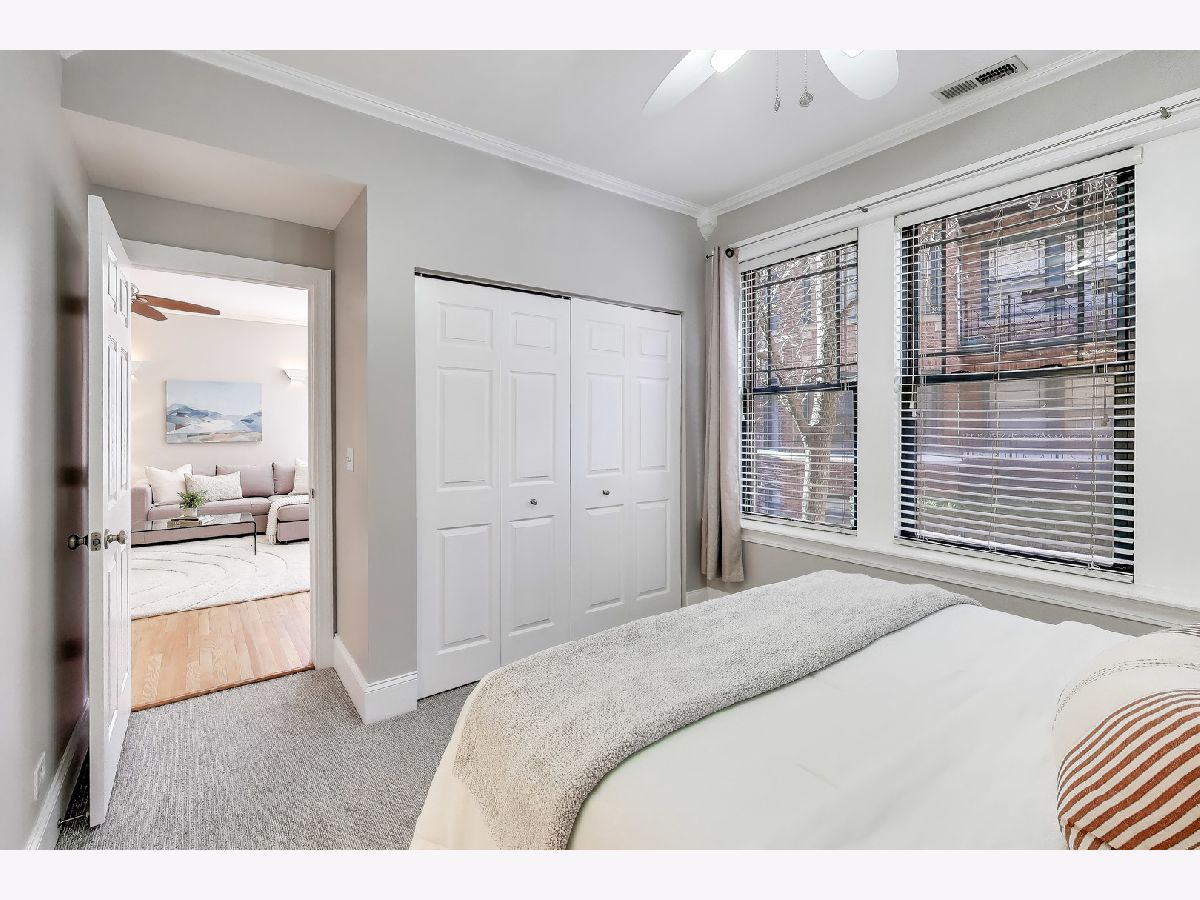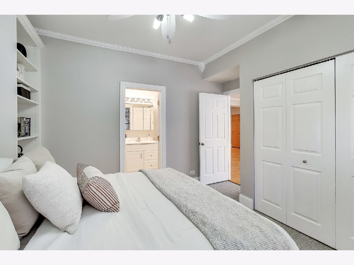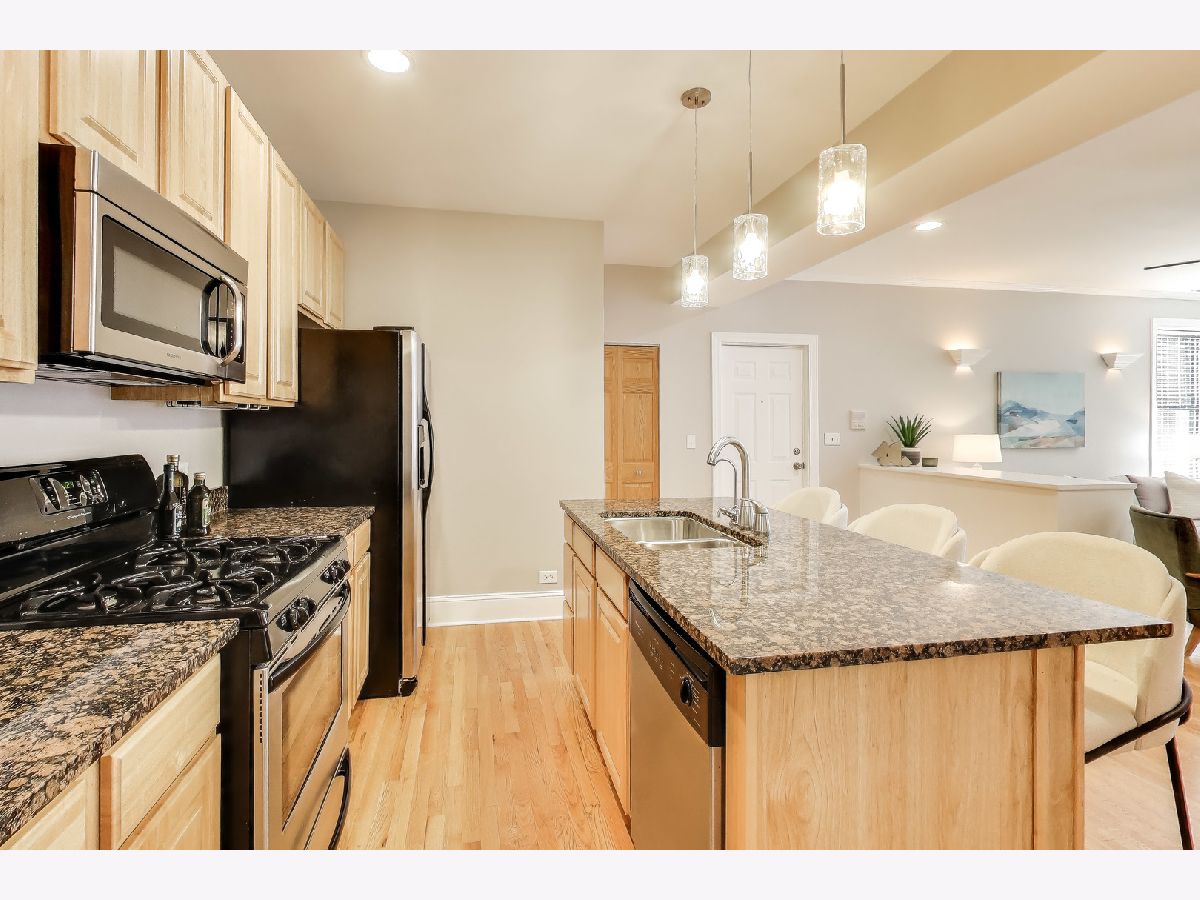 Bright and inviting 2 bed, 2 bath home offering a spacious layout, abundant natural light, and a private balcony in an unbeatable lakefront location. The spacious living room features oversized windows that fill the space with natural light and a flexible layout with room for a dining area or comfortable work from home setup, with hardwood floors throughout the main living areas. The large balcony overlooks a quiet residential setting and provides ample space for outdoor furniture, grilling, and entertaining. The open kitchen offers granite countertops, stainless steel appliances, generous cabinet and counter space, and a large island with room for counter seating and stools. Both bedrooms feature new carpet, ceiling fans, and generous closet space. The primary bedroom includes custom built in shelving, a large window for natural light, and an ensuite bathroom with a jetted tub and shower combination and in-unit laundry. The 2nd bedroom offers a flexible space ideal for a home office, guest room or nursery. A 2nd full bathroom and convenient coat closet are located just off the main living area. Freshly painted throughout and move-in ready, this home is located in a well maintained, self managed building on a quiet cul de sac at the end of the block. Steps from the beach where you can enjoy both sunrise and sunsets along the lakefront paths. Nearby dining, coffee shops, shopping including Target, the Red Line at Loyola and Morse, and Lake Shore Drive provide a convenient commute downtown or north.