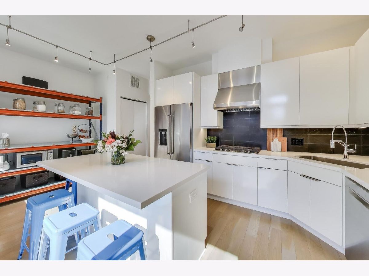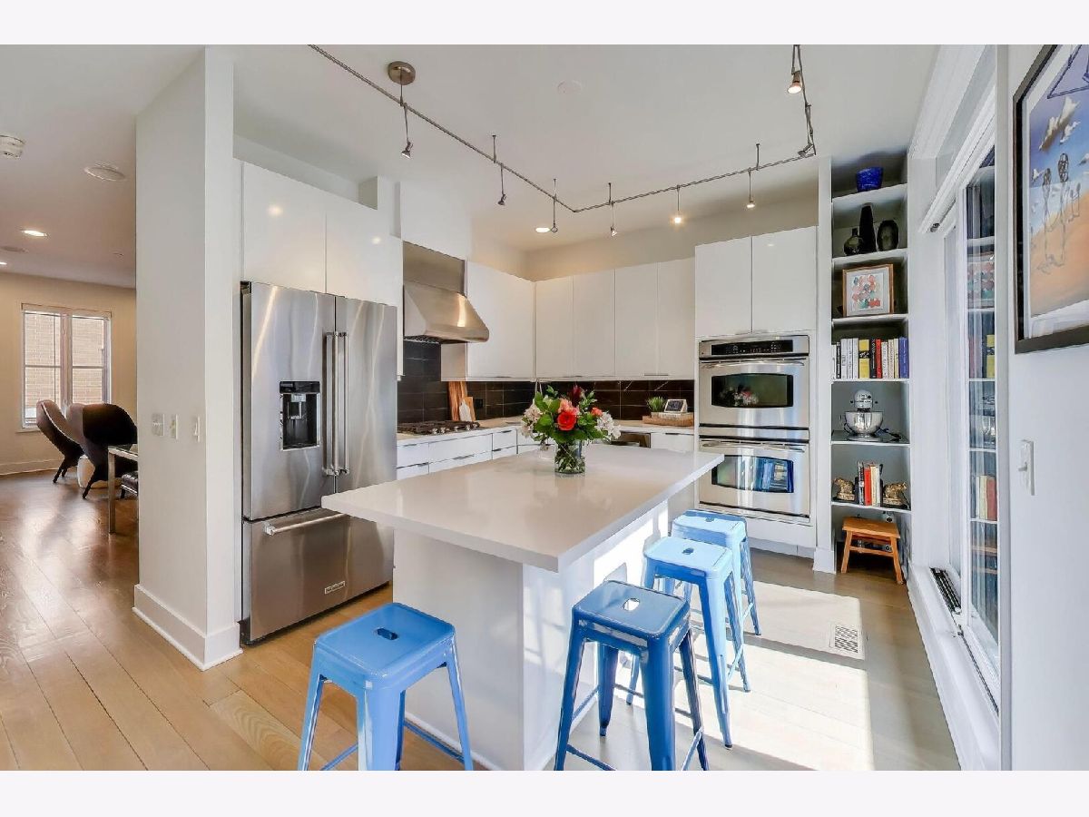 Tucked within the secure, gated courtyard of the coveted Chelsea Townhome subdivision, this rarely available four-story residence offers three bedrooms, three full baths and a guest powder room, and expansive, exquisitely designed living space throughout. From the professionally landscaped entry to the private skyline-view terrace, the home perfectly balances the energy of city living with the privacy and comfort of single-family-style elegance. The first level welcomes you with a gracious foyer and a versatile bonus room, ideal as a family room, home office, guest suite, or fourth bedroom. Completing this level are a powder room, coat closet, and direct access to the attached heated two-car garage. The second level serves as the home's sophisticated heart, anchored by a chef's kitchen renovated in 2020. Featuring quartz countertops, sleek white cabinetry with undermount lighting, and a generous island with beverage fridge, it blends impeccable style with supreme functionality. Just off the kitchen, a private balcony with a gas line provides seamless indoor-outdoor living and effortless grilling. The open-concept living and dining area exudes scale and elegance, thoughtfully designed for refined entertaining or relaxed everyday living, enhanced by built-in speaker wiring throughout. The third level presents two generously proportioned bedrooms, each with its own en-suite bathroom and custom closets. A dedicated laundry area and flexible office nook add convenience and versatility for modern living. The top-floor primary suite is a private penthouse retreat, complete with a professionally organized walk-in closet and a beautifully appointed en-suite bath featuring dual vanities, a soaking tub, a separate glass-enclosed shower, and a skylight that fills the space with natural light. Step onto the private terrace to enjoy tranquil mornings or evening cocktails overlooking the stunning Chicago skyline. Situated in the award-winning Skinner School District, this home provides unmatched access to the best of the West Loop. Enjoy leisurely strolls to Mary Bartelme Park, the renowned dining destinations of Randolph Street's Restaurant Row, premier shopping, and vibrant nightlife. Commuting is effortless with immediate access to I-290, I-90, convenient CTA routes, including the blue line and the Madison Street bus line. A rare opportunity to own a meticulously maintained, expansive residence that flawlessly combines space, style, and an unparalleled West Loop location.