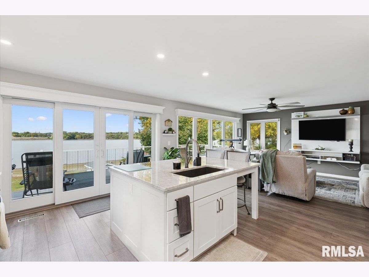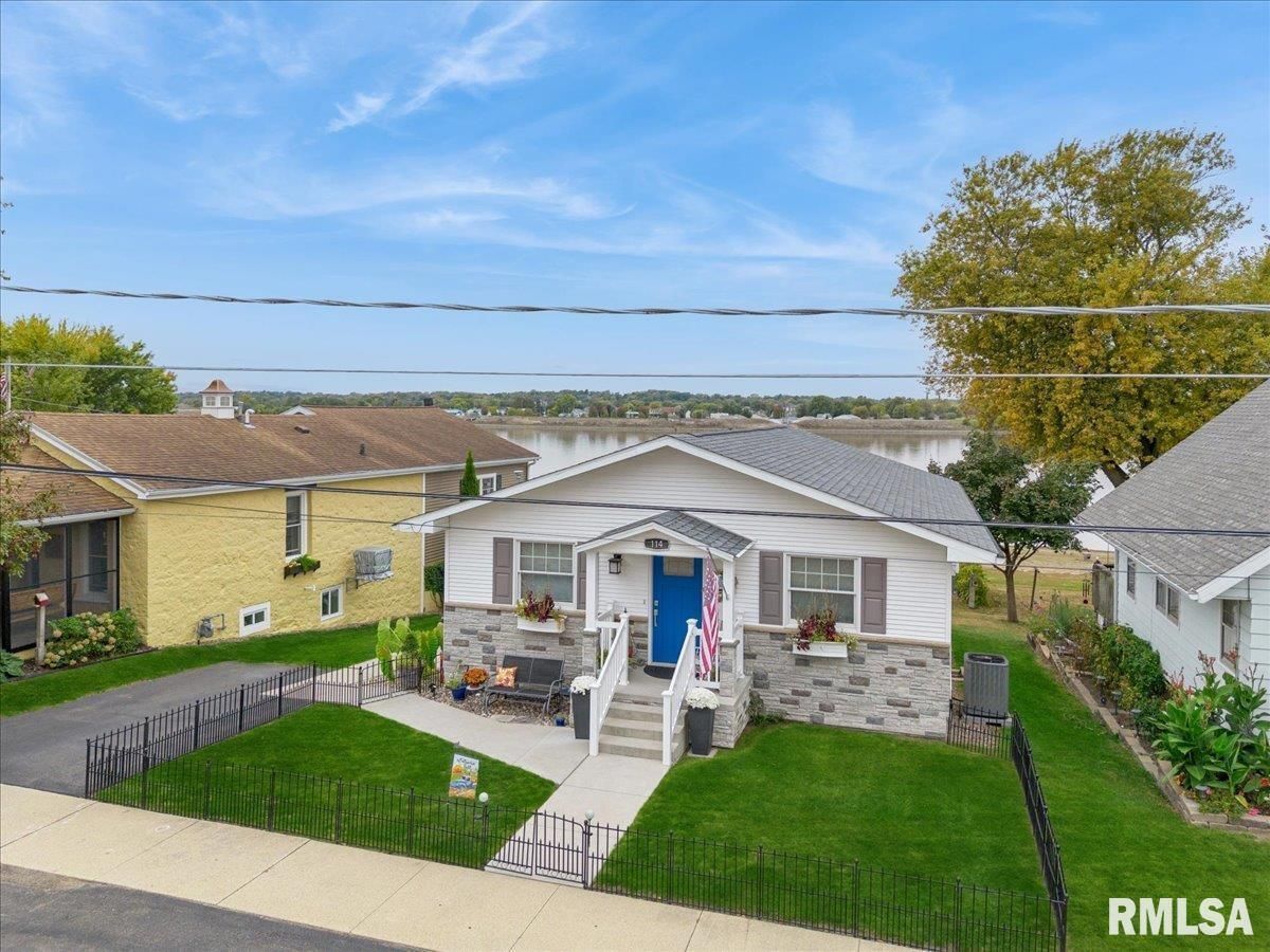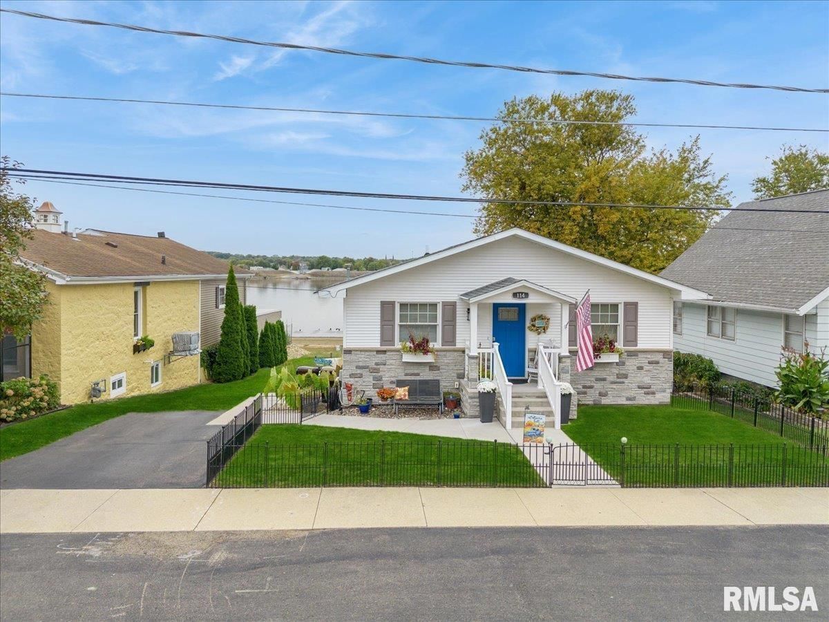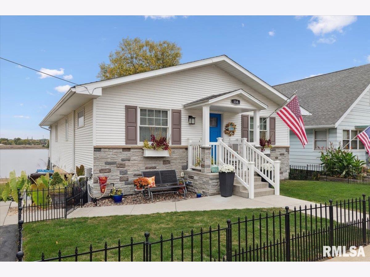 Introducing 114 4th St. Fulton, IL! This charming 3 bedroom beauty has been completely remodeled top to bottom and will capture your attention the moment you arrive! The attention to detail beams throughout! The open concept kitchen, dining, and living room offers spectacular views of the mighty Mississippi! Two bedrooms and a spacious full bath complete the main level. The lower level walk out is where you'll find the spacious primary bedroom with ensuite, recreation room, half bath with laundry and storage space, plus a 3 season porch. Enjoy the outdoors on your upper level maintenance free deck with electric awning, your built in patio with smokeless firepit, or right on the beautiful shoreline of the Mississippi River. The views and wildlife are truly amazing with every season. This home is comfortable, functional, and the pride of ownership is very apparent. The best part? River living with no flood insurance!