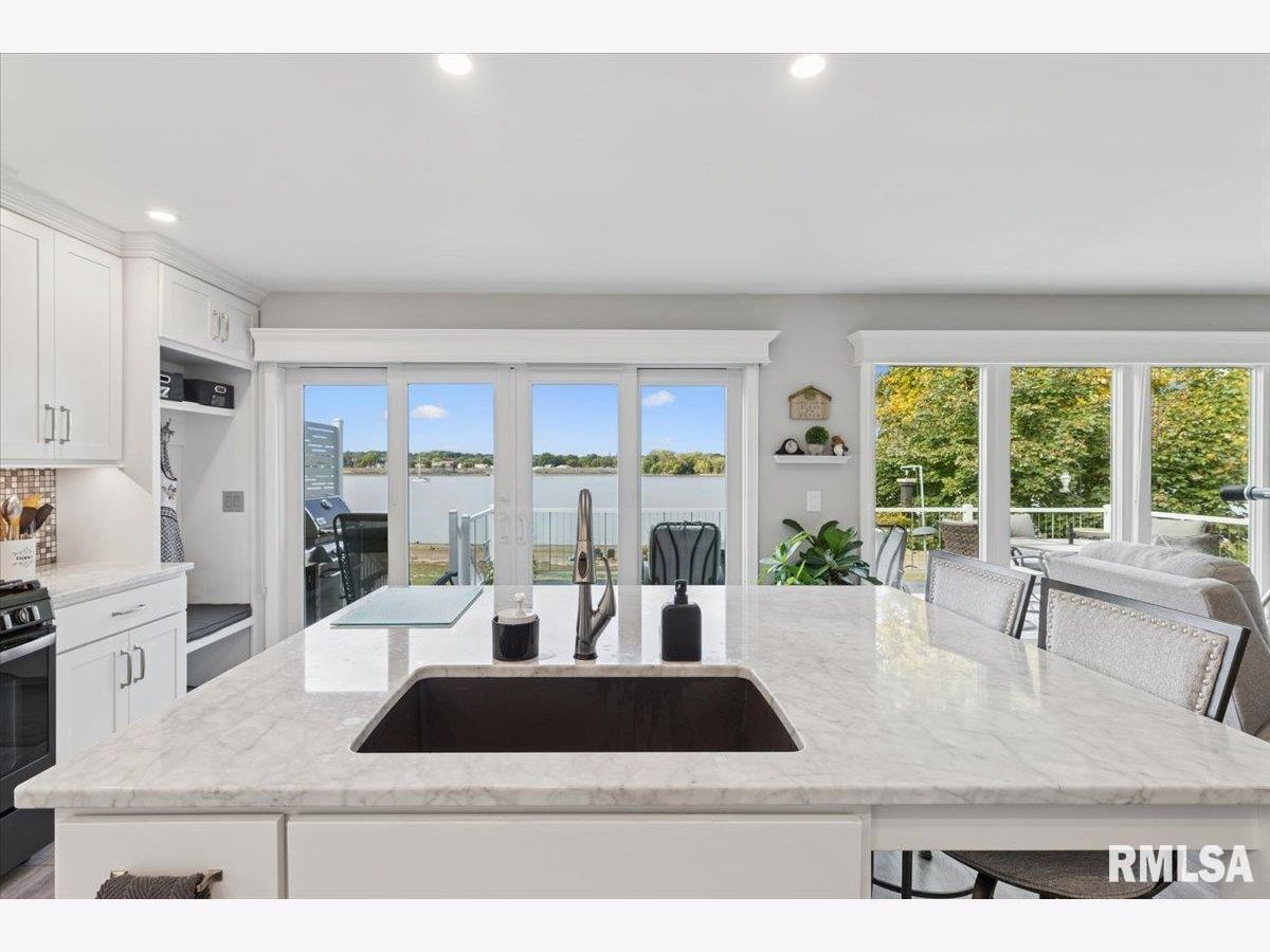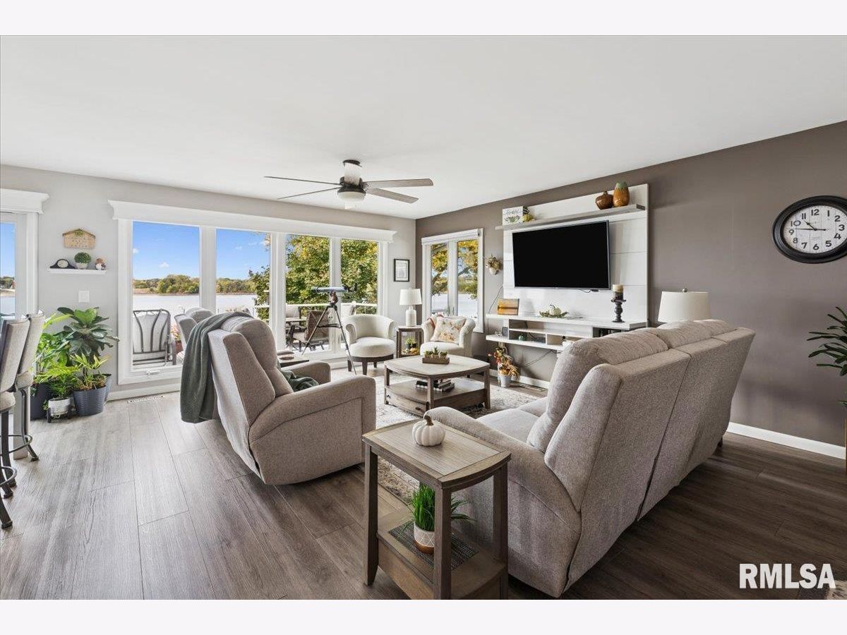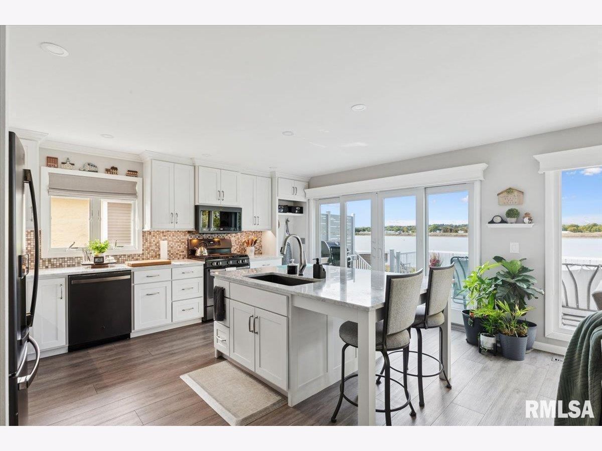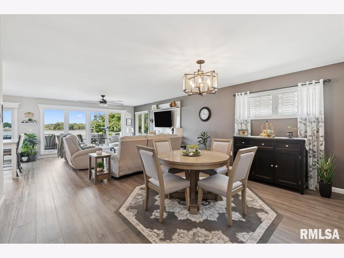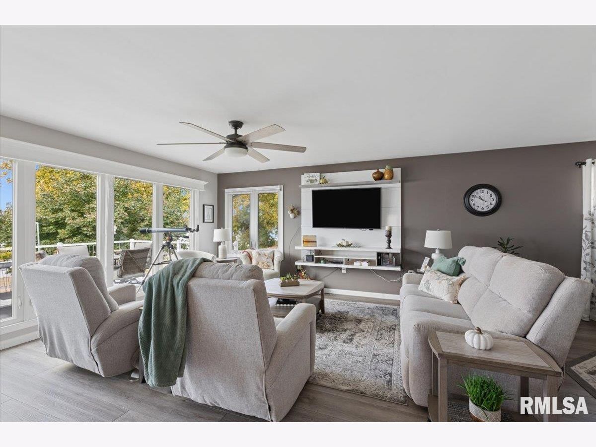 Introducing 114 4th St. Fulton, IL! This charming 3 bedroom beauty has been completely remodeled top to bottom and will capture your attention the moment you arrive! The attention to detail beams throughout! The open concept kitchen, dining, and living room offers spectacular views of the mighty Mississippi! Two bedrooms and a spacious full bath complete the main level. The lower level walk out is where you'll find the spacious primary bedroom with ensuite, recreation room, half bath with laundry and storage space, plus a 3 season porch. Enjoy the outdoors on your upper level maintenance free deck with electric awning, your built in patio with smokeless firepit, or right on the beautiful shoreline of the Mississippi River. The views and wildlife are truly amazing with every season. This home is comfortable, functional, and the pride of ownership is very apparent. The best part? River living with no flood insurance!