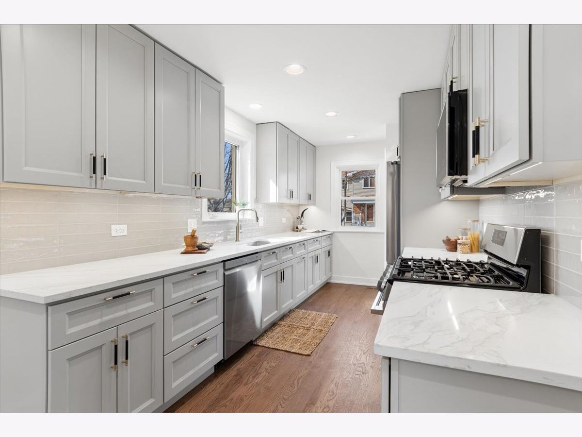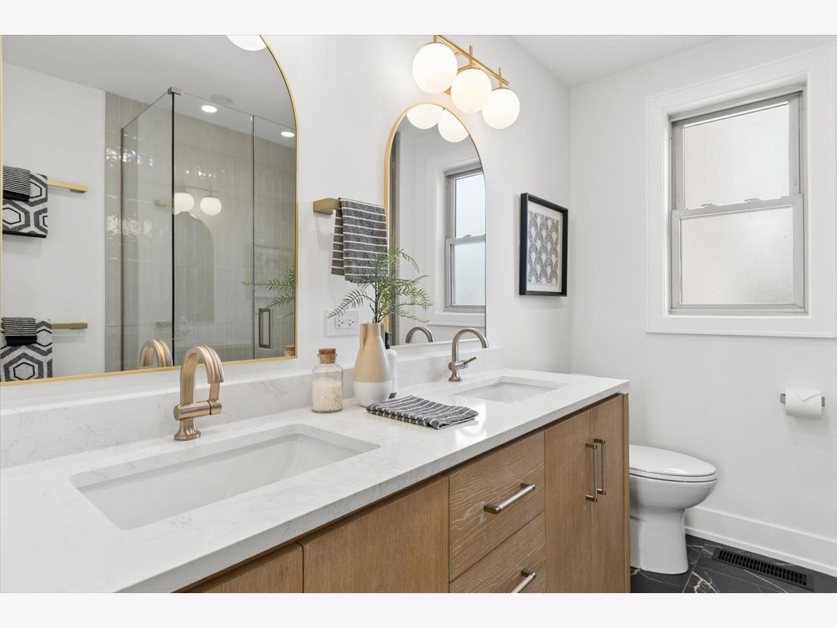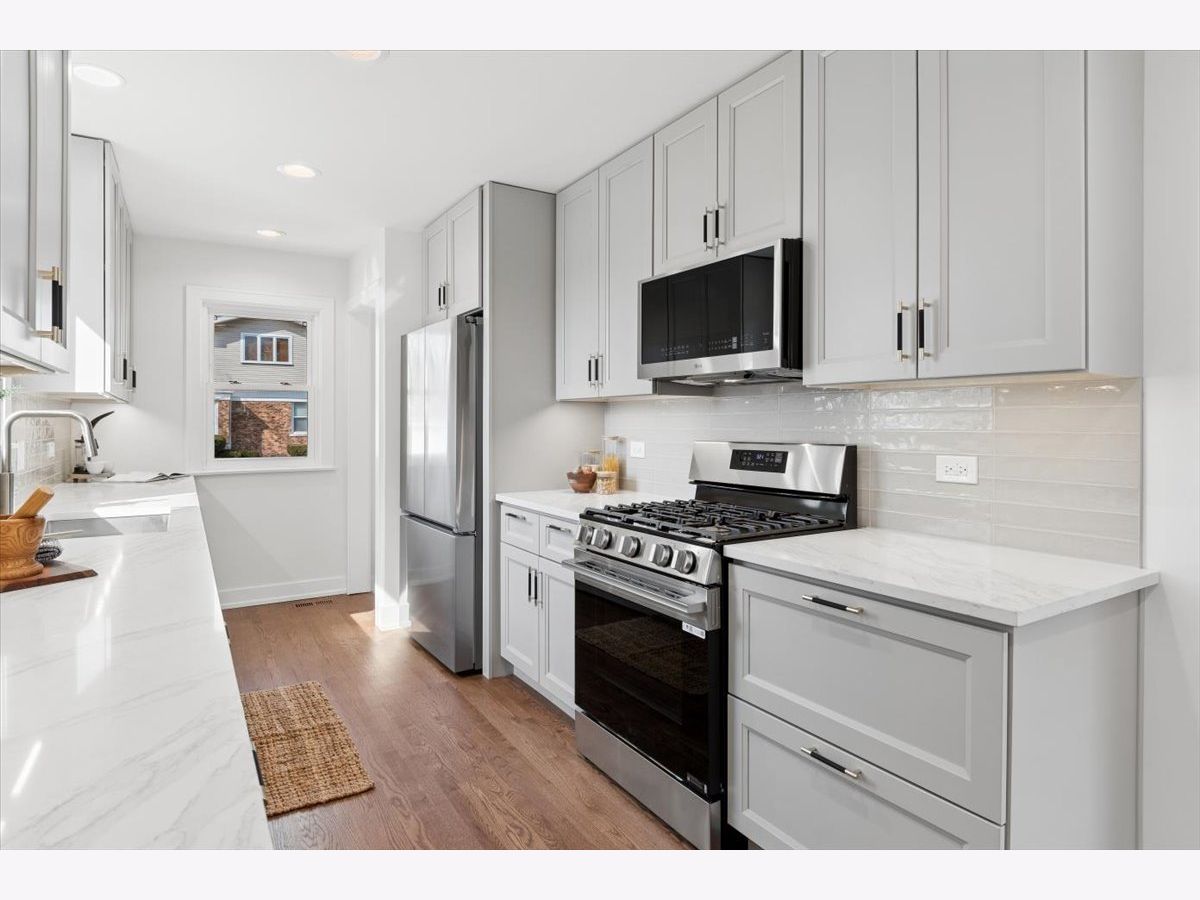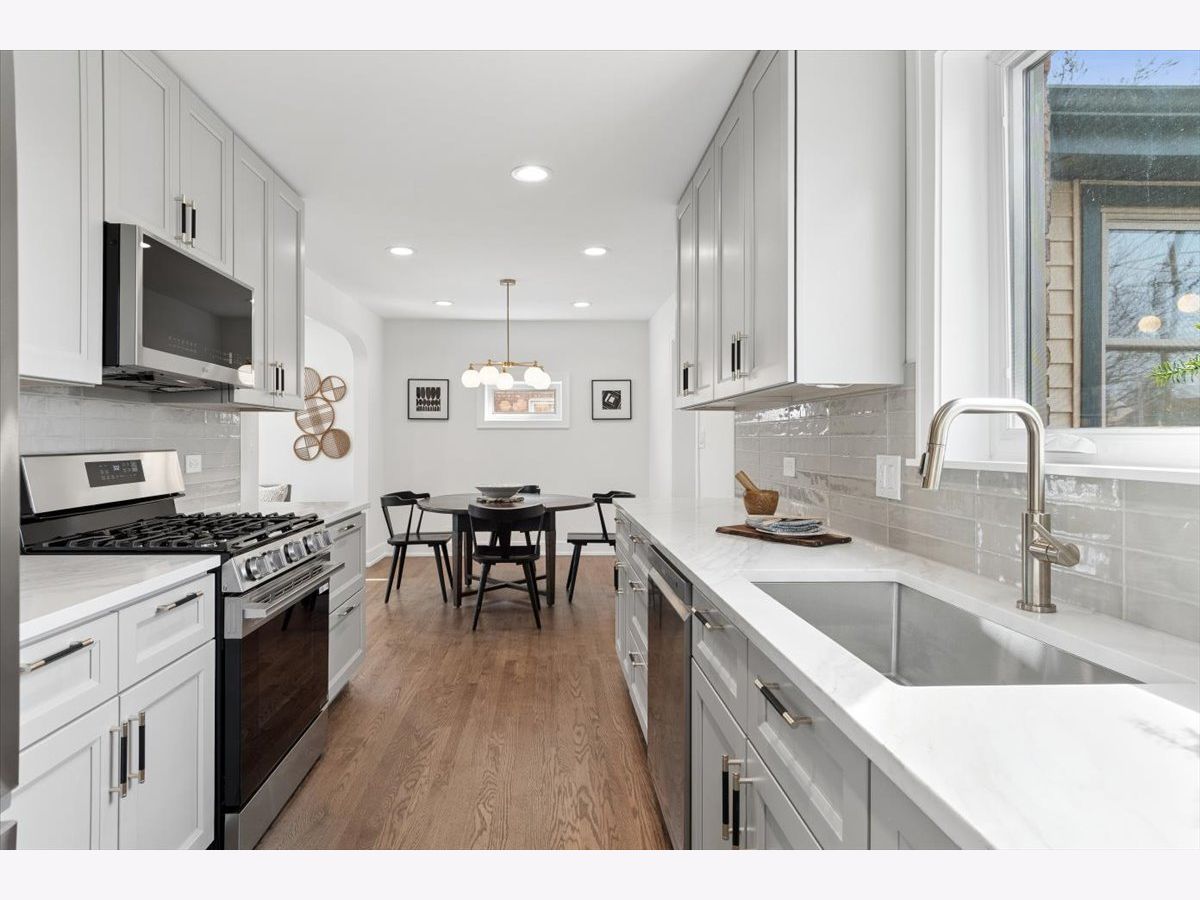 Stunning gut-rehabbed brick Georgian on a prime corner lot in desirable La Grange Park! This beautifully reimagined home perfectly blends timeless vintage charm-featuring original woodwork, hardwood floors, and generous ceiling heights-with today's modern upgrades and thoughtful design. Light pours throughout the home, highlighting gleaming hardwood floors across the main living levels. The spacious main floor offers a welcoming living room, a separate dining room ideal for entertaining, and a beautifully designed galley kitchen built for both everyday living and serious cooking. The kitchen features quartz countertops, a full stainless steel appliance suite, abundant storage in modern taupe shaker cabinetry, and elegant brushed gold and black hardware throughout. The first floor also features a private primary suite overlooking the backyard, complete with a walk-in closet and a luxurious spa-inspired bath. Upstairs, you'll find three generously sized bedrooms with large closets and a charming full bath that preserves the home's character-highlighted by the original arched detail over the bathtub-paired with all-new fixtures and finishes. Natural light fills every room. The finished basement is ready for entertaining and everyday living, featuring stunning epoxy floors, French drains, and a sump system for peace of mind. Major mechanical updates include dual-zoned HVAC with two brand-new systems, a new architectural shingle roof, updated electrical and plumbing throughout. Outside, enjoy a fully fenced yard and a detached two-car garage with convenient side-drive access. Located in an award-winning school district and just minutes from parks, forest preserves, shopping, dining, and entertainment. Commuters will love the easy access to I-55, I-290, I-294, and the Metra train station. A rare opportunity to own a beautifully restored Georgian that blends classic character with modern comfort.