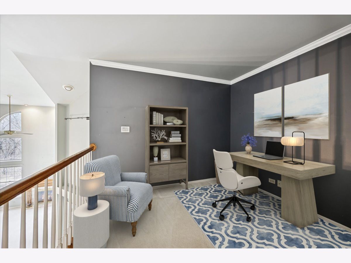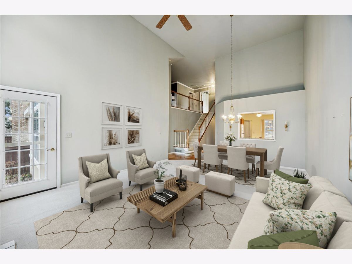 This beautiful home in the desirable Prescott square community has been lovingly maintained by the original owners and is ready to sell! The eat-in kitchen features classic oak cabinetry and flows seamlessly into an open dining and living room combination, creating an ideal layout for everyday living and entertaining. The living room is filled with natural light from floor-to-ceiling windows and showcases soaring cathedral ceilings and a striking brick fireplace. Enter the spacious primary suite through double doors and enjoy vaulted ceilings, a walk-in closet, linen closet, dual vanities, a jacuzzi tub, and a separate shower-all conveniently located on the main level. The first floor also includes a powder room, mud room, access to the fenced back deck, and an attached two-car garage for ultimate convenience. Upstairs, you'll find two additional bedrooms, a full bath, and a versatile loft overlooking the living room below-perfect for a home office or additional lounge space. The fully finished basement significantly expands the living area and offers abundant storage and a seperate utility room. Situated in an unbeatable location with easy access to major expressways, commuter trains, and both airports. Just blocks from Prairie and Forest Preserve trails, Mariano's, golf courses, and more.
