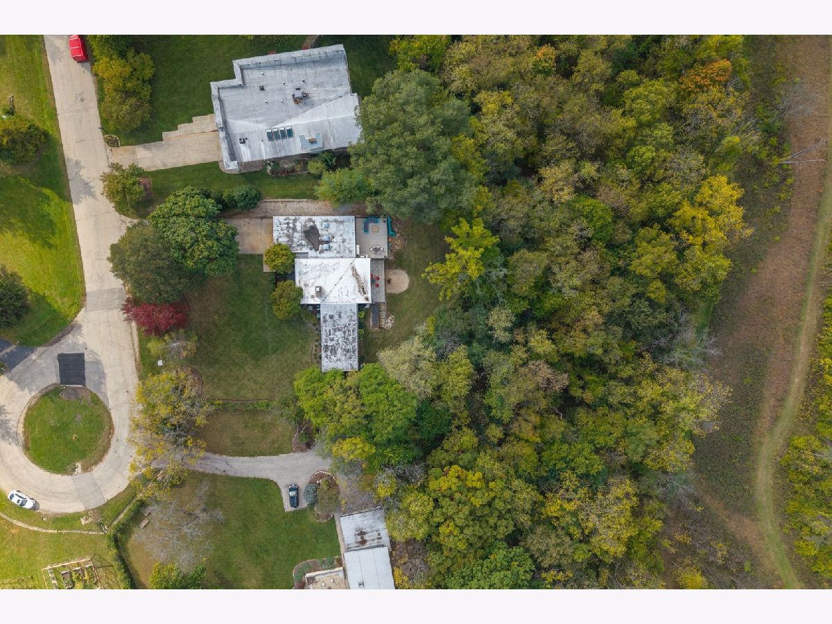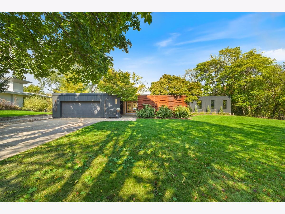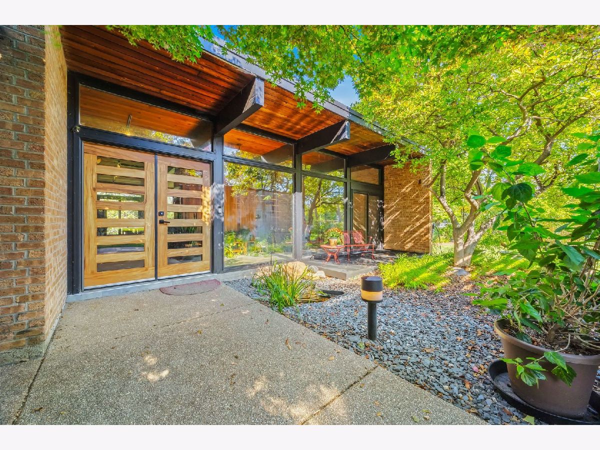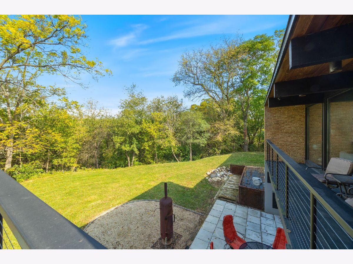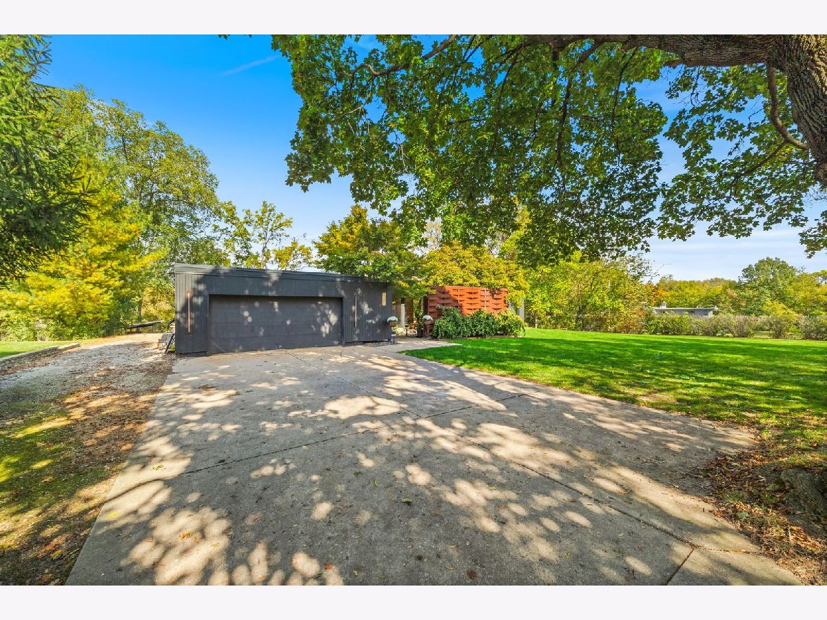 Discover a truly unique custom home nestled on a private 1-acre lot in the charming Morningside Estates subdivision. Perfectly positioned at the end of a quiet cul-de-sac and backing to the serene Tyler Creek Forest Preserve, this Mid-century Modern property offers unmatched privacy and natural beauty just minutes from I-90, downtown Elgin, Rt 31, Judson University, and Larkin High School. Approaching the home you'll notice an aesthetically pleasing ornamental pond and custom woven metal privacy wall. Step inside to find a thoughtfully updated home blending character and modern comfort. The bedroom wing was completely rebuilt in 2017 and the basement wing in 2021, showcasing quality craftsmanship throughout while adding modern conveniences. Enjoy the inviting open layout with floor-to-ceiling picture windows, exposed brick accents, hardwood floors, skylights, and a cozy fireplace that creates a warm, timeless atmosphere. The kitchen is a chef's delight featuring granite countertops, a spacious island, pendant lighting, and new sliding doors that open to a custom composite deck with built-in lighting-perfect for entertaining or relaxing while surrounded by nature. Retreat to the master suite with exposed beams, a walk-in closet, and a luxurious bath featuring a dual vanity. The finished basement adds even more living space with a tub, steam shower, recessed lighting, and plenty of room to unwind or host guests. Modern upgrades include triple-zoned HVAC, a smart thermostat, video doorbell, tankless water heater (2022), updated plumbing and electrical (2017), and new windows throughout. The property also offers a deep 2-car attached garage equipped with a 220V EV charging outlet. Additional features include a functional mud room and a shed with electricity for added convenience. If you're looking for a private, move-in-ready home that combines thoughtful design with a peaceful setting-this Morningside Estates gem is a must-see.