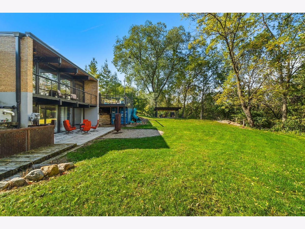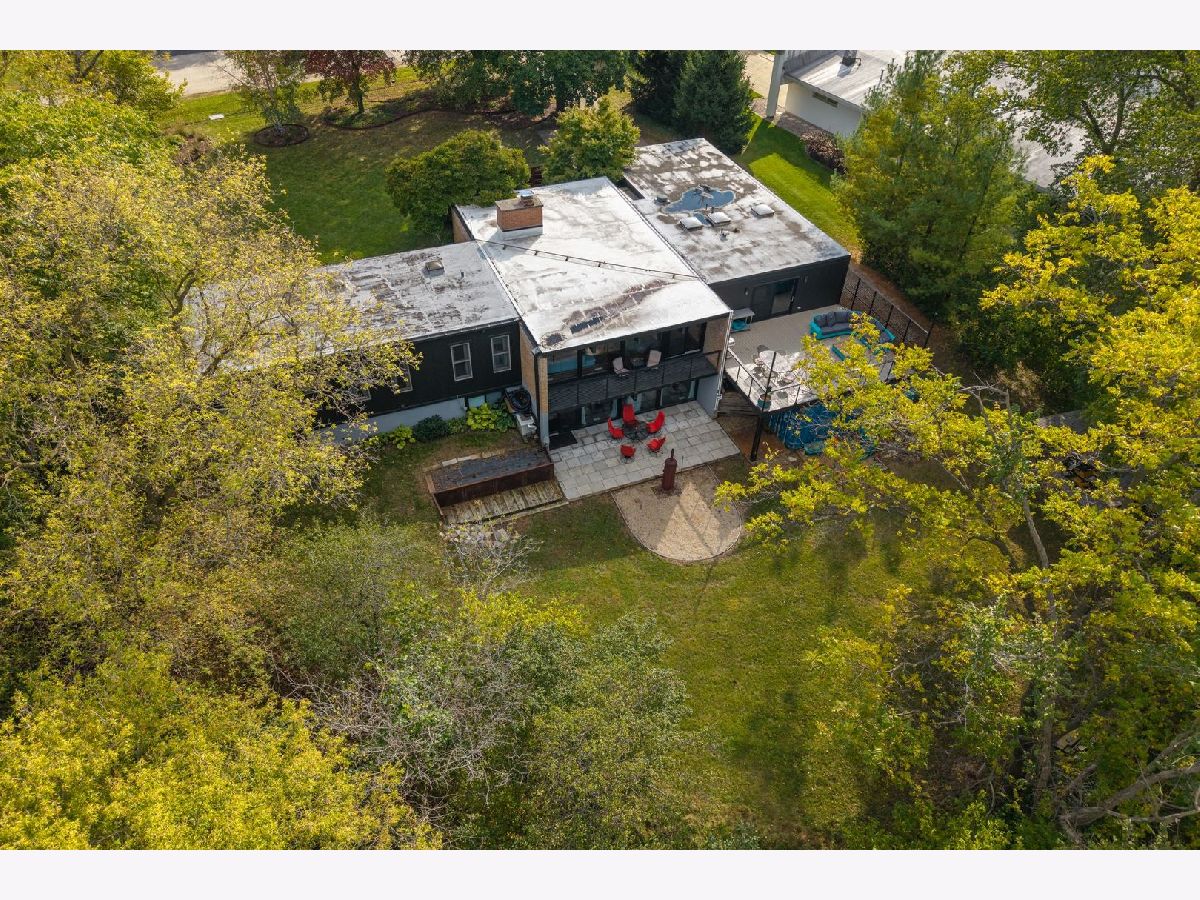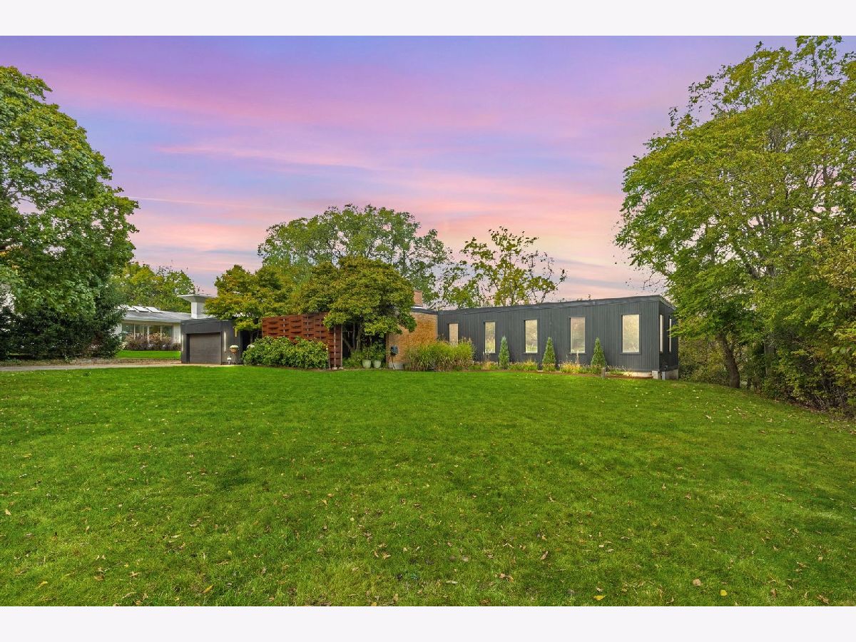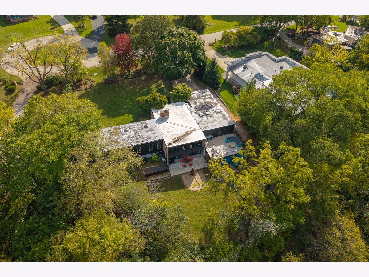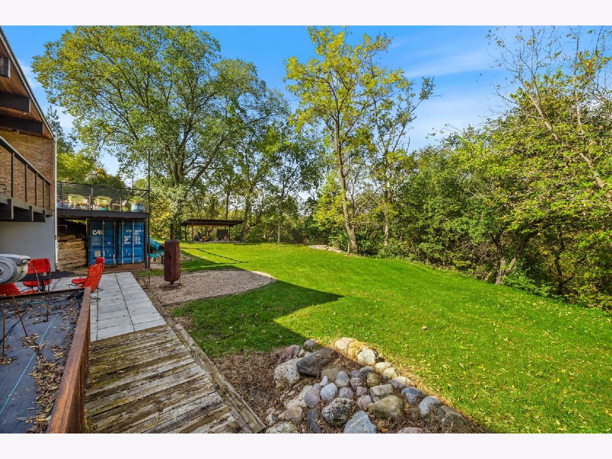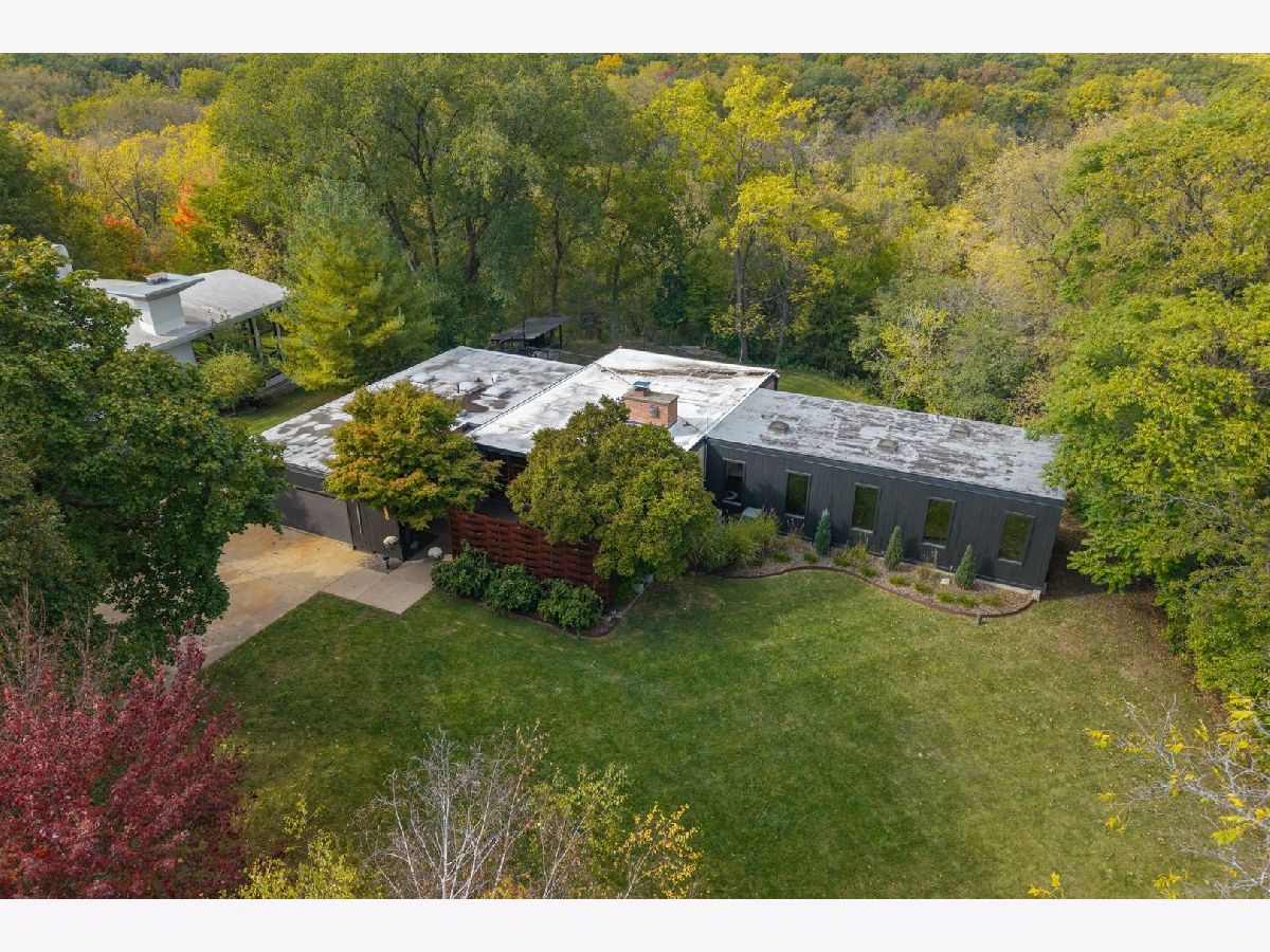 Discover a truly unique custom home nestled on a private 1-acre lot in the charming Morningside Estates subdivision. Perfectly positioned at the end of a quiet cul-de-sac and backing to the serene Tyler Creek Forest Preserve, this Mid-century Modern property offers unmatched privacy and natural beauty just minutes from I-90, downtown Elgin, Rt 31, Judson University, and Larkin High School. Approaching the home you'll notice an aesthetically pleasing ornamental pond and custom woven metal privacy wall. Step inside to find a thoughtfully updated home blending character and modern comfort. The bedroom wing was completely rebuilt in 2017 and the basement wing in 2021, showcasing quality craftsmanship throughout while adding modern conveniences. Enjoy the inviting open layout with floor-to-ceiling picture windows, exposed brick accents, hardwood floors, skylights, and a cozy fireplace that creates a warm, timeless atmosphere. The kitchen is a chef's delight featuring granite countertops, a spacious island, pendant lighting, and new sliding doors that open to a custom composite deck with built-in lighting-perfect for entertaining or relaxing while surrounded by nature. Retreat to the master suite with exposed beams, a walk-in closet, and a luxurious bath featuring a dual vanity. The finished basement adds even more living space with a tub, steam shower, recessed lighting, and plenty of room to unwind or host guests. Modern upgrades include triple-zoned HVAC, a smart thermostat, video doorbell, tankless water heater (2022), updated plumbing and electrical (2017), and new windows throughout. The property also offers a deep 2-car attached garage equipped with a 220V EV charging outlet. Additional features include a functional mud room and a shed with electricity for added convenience. If you're looking for a private, move-in-ready home that combines thoughtful design with a peaceful setting-this Morningside Estates gem is a must-see.