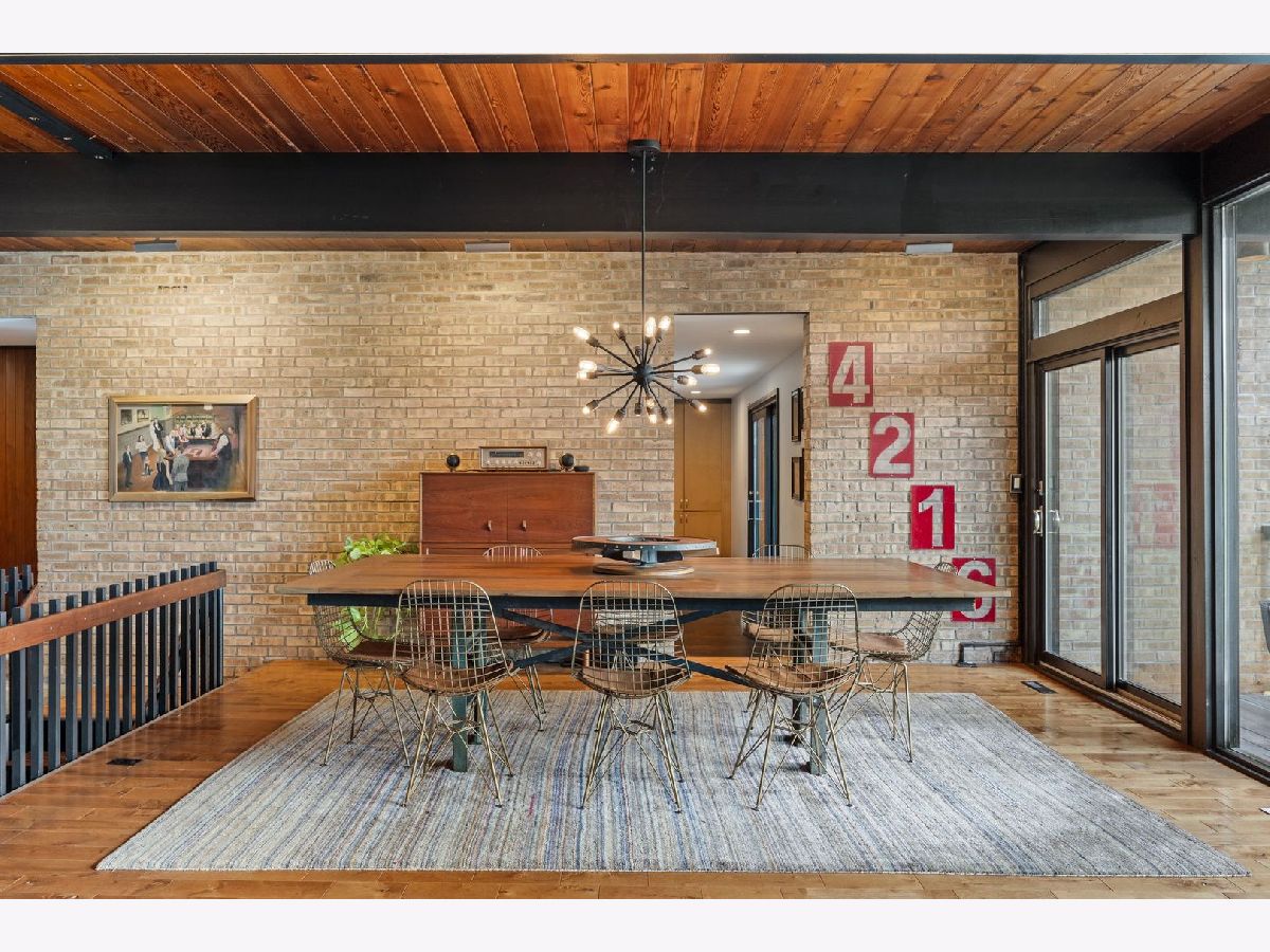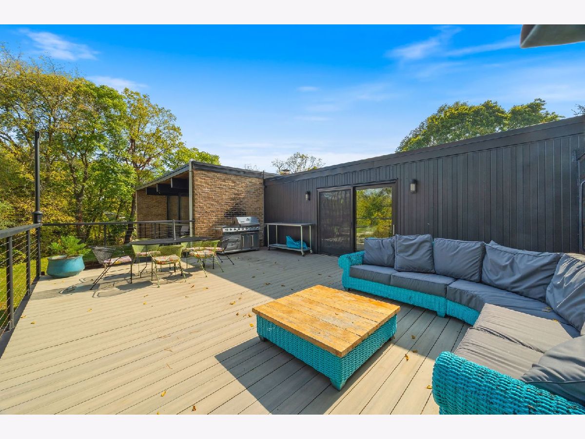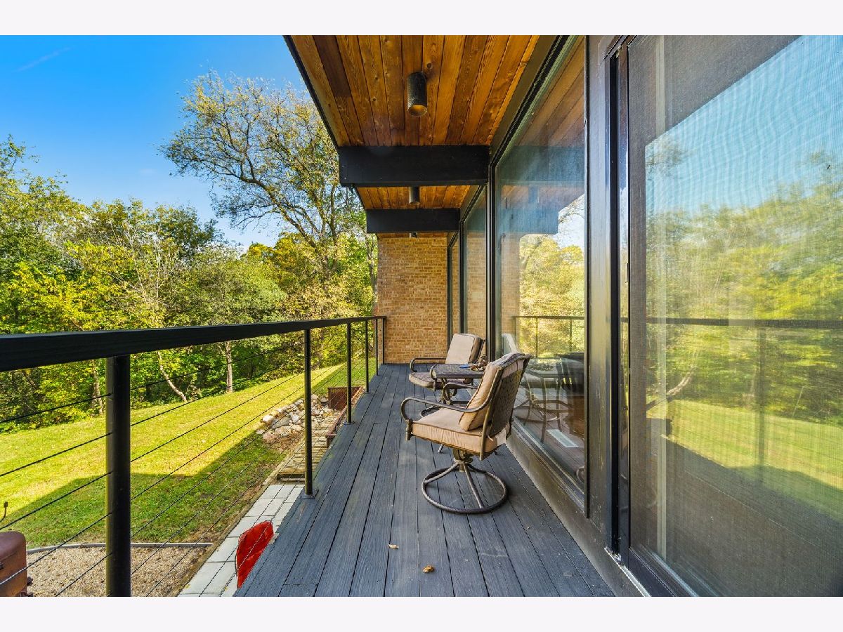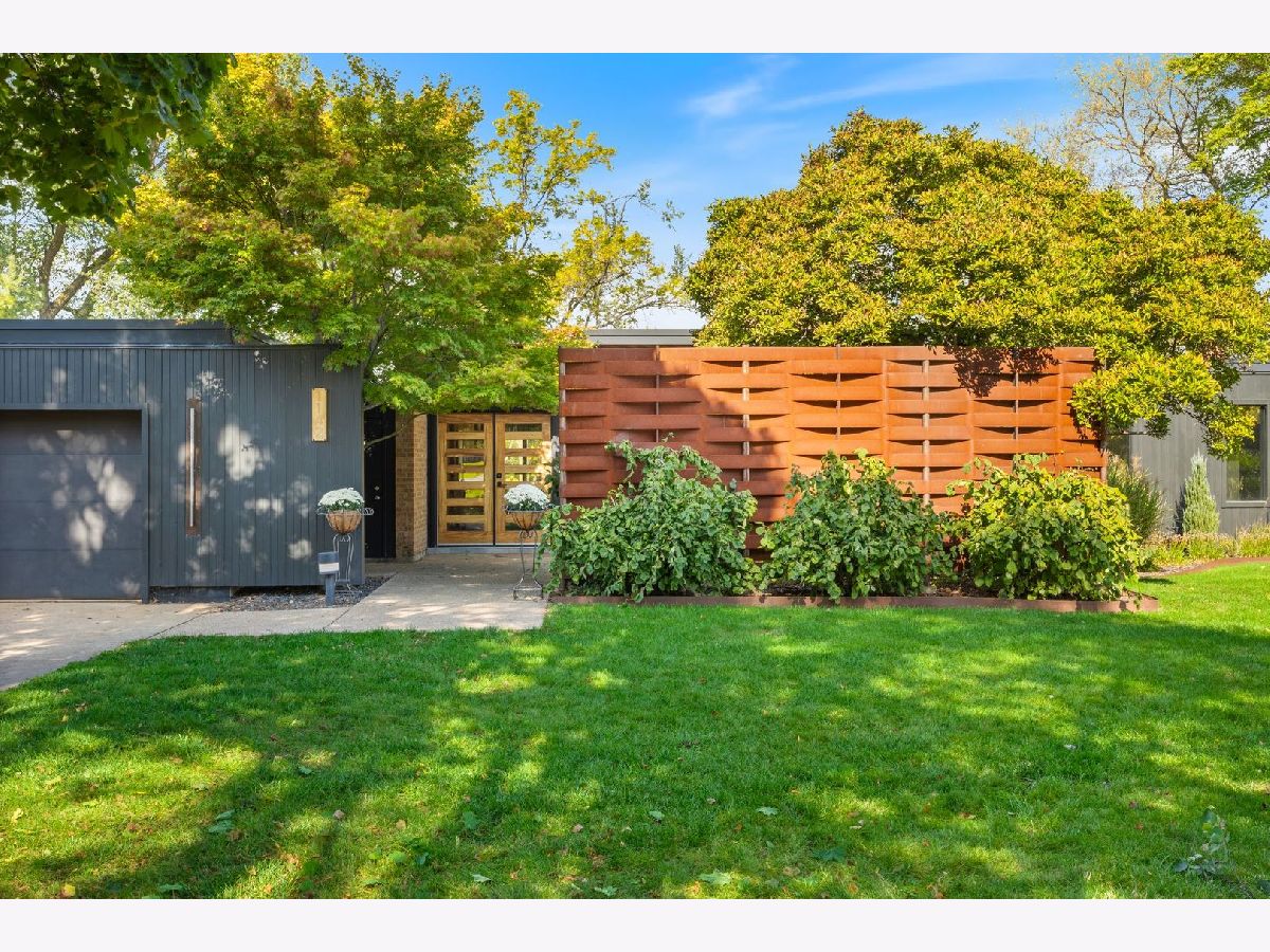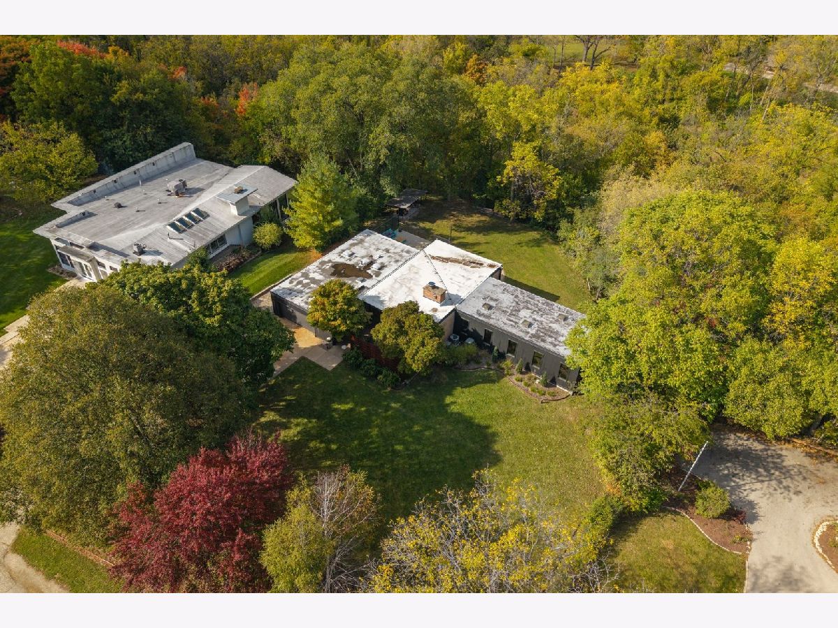 Discover a truly unique custom home nestled on a private 1-acre lot in the charming Morningside Estates subdivision. Perfectly positioned at the end of a quiet cul-de-sac and backing to the serene Tyler Creek Forest Preserve, this Mid-century Modern property offers unmatched privacy and natural beauty just minutes from I-90, downtown Elgin, Rt 31, Judson University, and Larkin High School. Approaching the home you'll notice an aesthetically pleasing ornamental pond and custom woven metal privacy wall. Step inside to find a thoughtfully updated home blending character and modern comfort. The bedroom wing was completely rebuilt in 2017 and the basement wing in 2021, showcasing quality craftsmanship throughout while adding modern conveniences. Enjoy the inviting open layout with floor-to-ceiling picture windows, exposed brick accents, hardwood floors, skylights, and a cozy fireplace that creates a warm, timeless atmosphere. The kitchen is a chef's delight featuring granite countertops, a spacious island, pendant lighting, and new sliding doors that open to a custom composite deck with built-in lighting-perfect for entertaining or relaxing while surrounded by nature. Retreat to the master suite with exposed beams, a walk-in closet, and a luxurious bath featuring a dual vanity. The finished basement adds even more living space with a tub, steam shower, recessed lighting, and plenty of room to unwind or host guests. Modern upgrades include triple-zoned HVAC, a smart thermostat, video doorbell, tankless water heater (2022), updated plumbing and electrical (2017), and new windows throughout. The property also offers a deep 2-car attached garage equipped with a 220V EV charging outlet. Additional features include a functional mud room and a shed with electricity for added convenience. If you're looking for a private, move-in-ready home that combines thoughtful design with a peaceful setting-this Morningside Estates gem is a must-see.