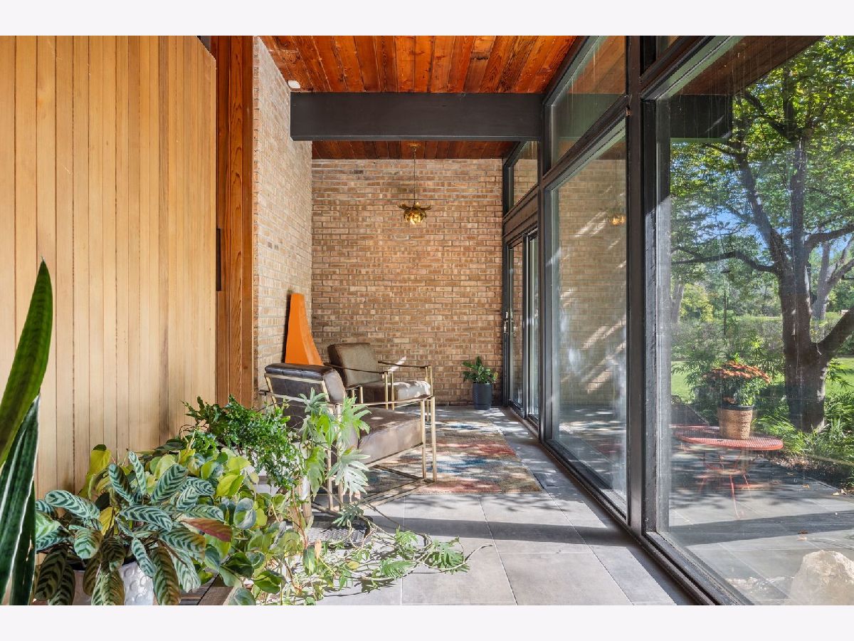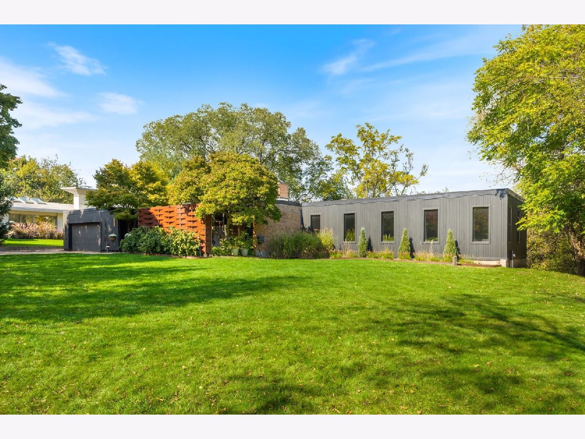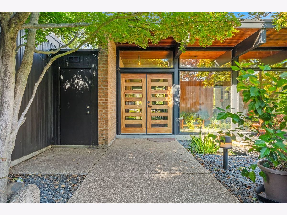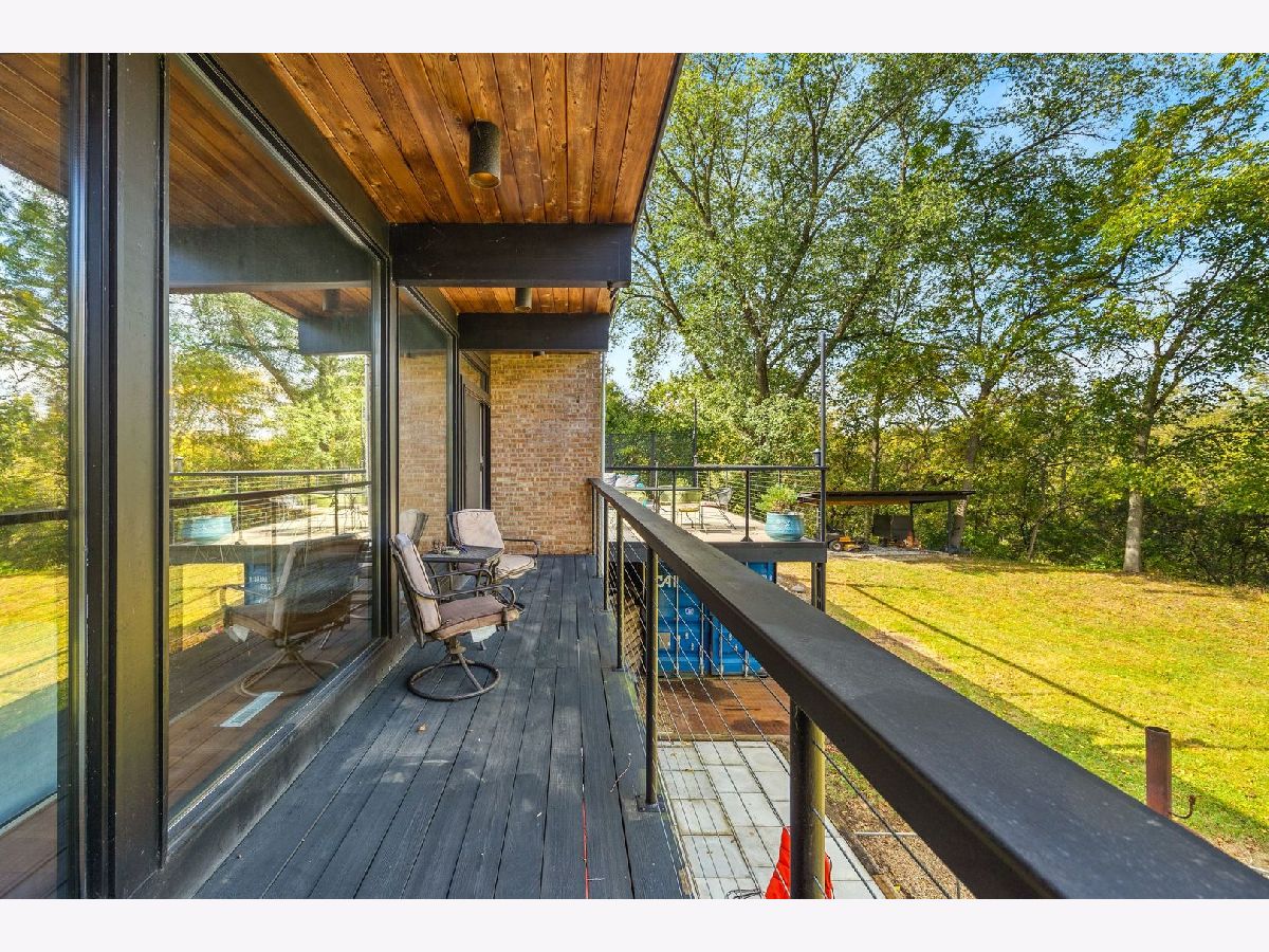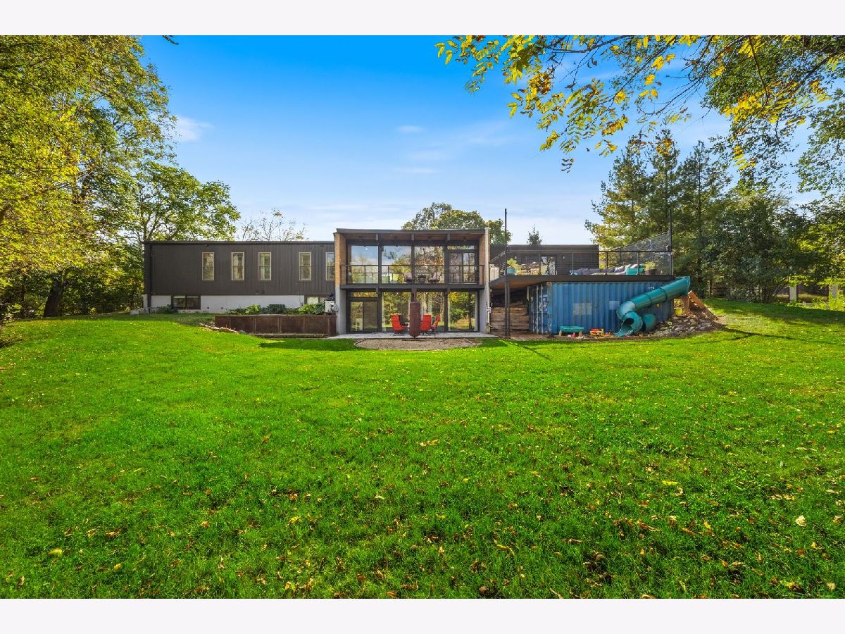 Discover a truly unique custom home nestled on a private 1-acre lot in the charming Morningside Estates subdivision. Perfectly positioned at the end of a quiet cul-de-sac and backing to the serene Tyler Creek Forest Preserve, this Mid-century Modern property offers unmatched privacy and natural beauty just minutes from I-90, downtown Elgin, Rt 31, Judson University, and Larkin High School. Approaching the home you'll notice an aesthetically pleasing ornamental pond and custom woven metal privacy wall. Step inside to find a thoughtfully updated home blending character and modern comfort. The bedroom wing was completely rebuilt in 2017 and the basement wing in 2021, showcasing quality craftsmanship throughout while adding modern conveniences. Enjoy the inviting open layout with floor-to-ceiling picture windows, exposed brick accents, hardwood floors, skylights, and a cozy fireplace that creates a warm, timeless atmosphere. The kitchen is a chef's delight featuring granite countertops, a spacious island, pendant lighting, and new sliding doors that open to a custom composite deck with built-in lighting-perfect for entertaining or relaxing while surrounded by nature. Retreat to the master suite with exposed beams, a walk-in closet, and a luxurious bath featuring a dual vanity. The finished basement adds even more living space with a tub, steam shower, recessed lighting, and plenty of room to unwind or host guests. Modern upgrades include triple-zoned HVAC, a smart thermostat, video doorbell, tankless water heater (2022), updated plumbing and electrical (2017), and new windows throughout. The property also offers a deep 2-car attached garage equipped with a 220V EV charging outlet. Additional features include a functional mud room and a shed with electricity for added convenience. If you're looking for a private, move-in-ready home that combines thoughtful design with a peaceful setting-this Morningside Estates gem is a must-see.