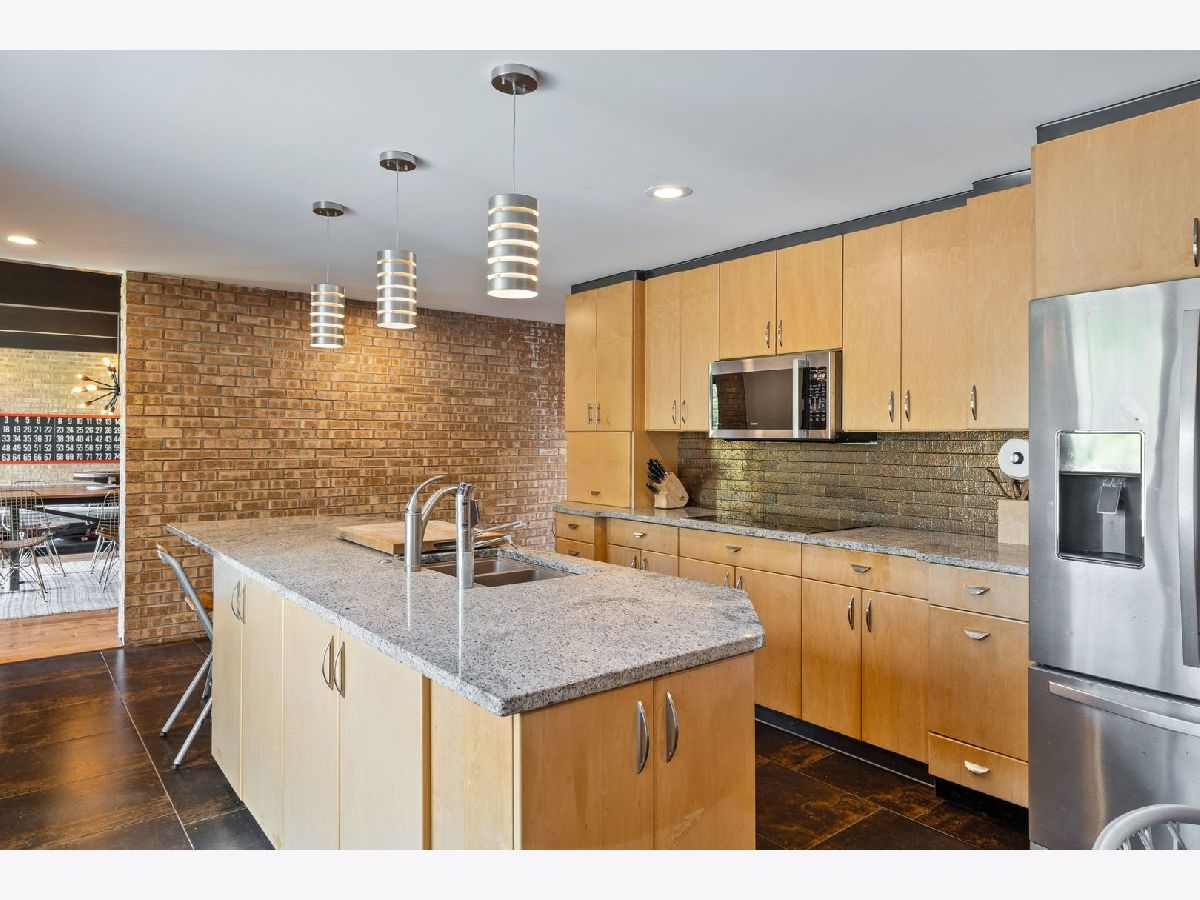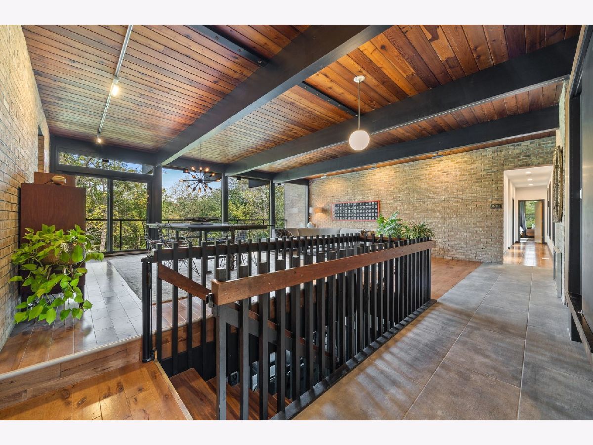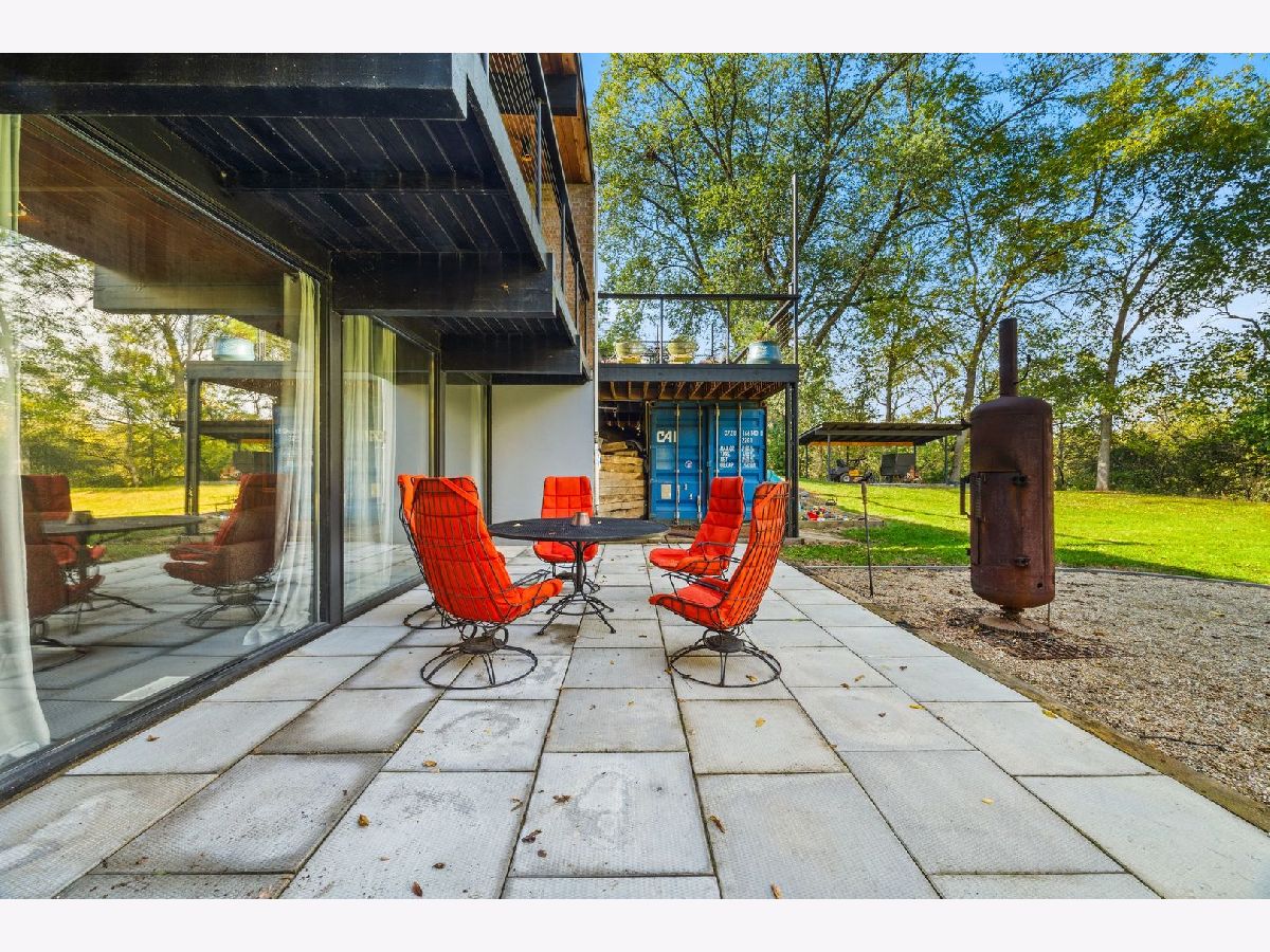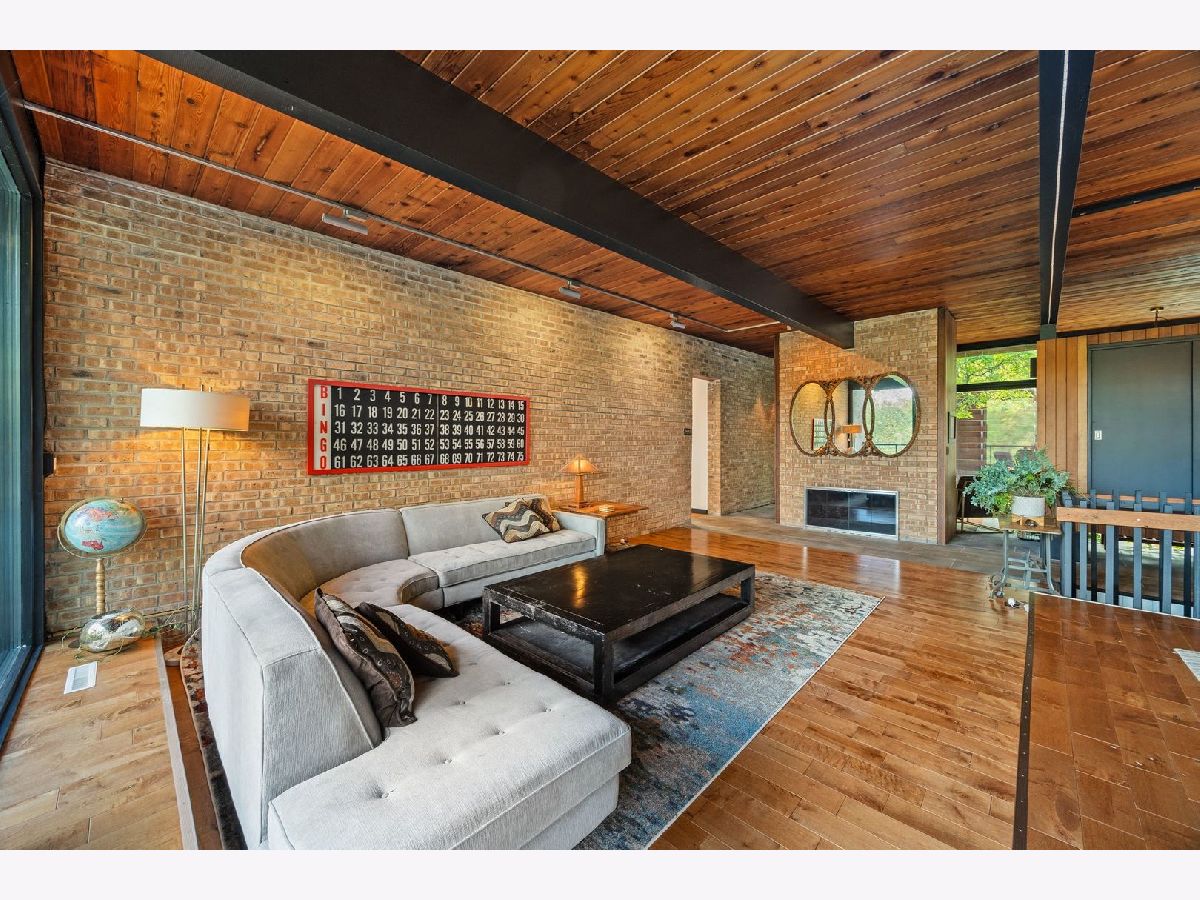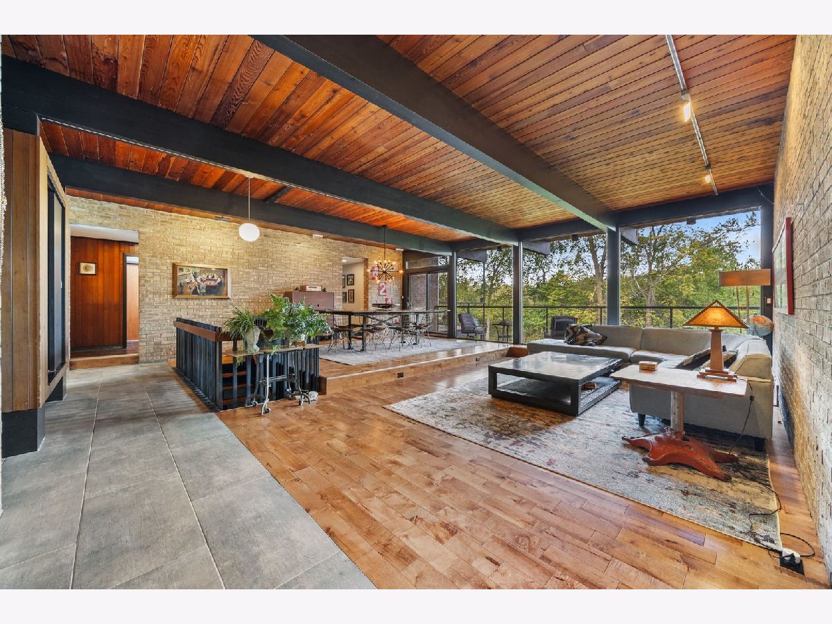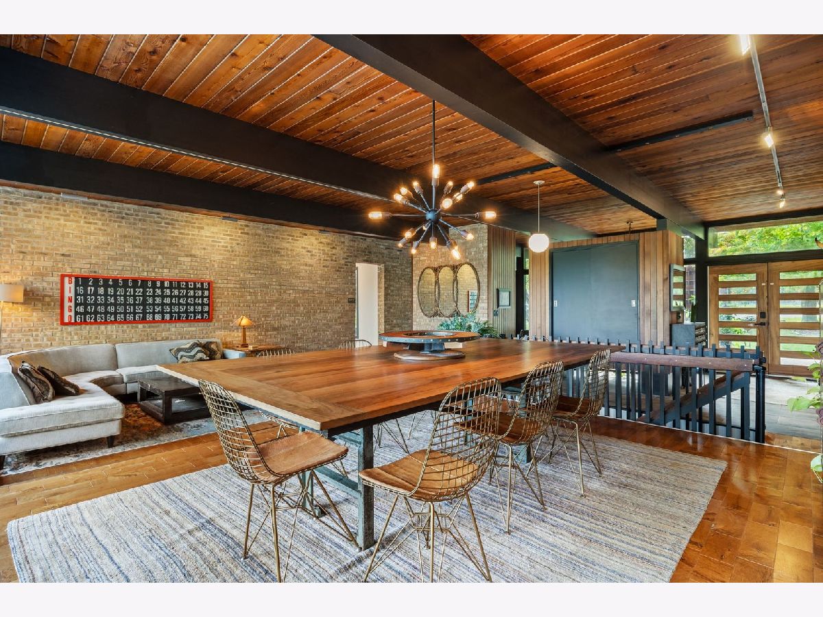 Discover a truly unique custom home nestled on a private 1-acre lot in the charming Morningside Estates subdivision. Perfectly positioned at the end of a quiet cul-de-sac and backing to the serene Tyler Creek Forest Preserve, this Mid-century Modern property offers unmatched privacy and natural beauty just minutes from I-90, downtown Elgin, Rt 31, Judson University, and Larkin High School. Approaching the home you'll notice an aesthetically pleasing ornamental pond and custom woven metal privacy wall. Step inside to find a thoughtfully updated home blending character and modern comfort. The bedroom wing was completely rebuilt in 2017 and the basement wing in 2021, showcasing quality craftsmanship throughout while adding modern conveniences. Enjoy the inviting open layout with floor-to-ceiling picture windows, exposed brick accents, hardwood floors, skylights, and a cozy fireplace that creates a warm, timeless atmosphere. The kitchen is a chef's delight featuring granite countertops, a spacious island, pendant lighting, and new sliding doors that open to a custom composite deck with built-in lighting-perfect for entertaining or relaxing while surrounded by nature. Retreat to the master suite with exposed beams, a walk-in closet, and a luxurious bath featuring a dual vanity. The finished basement adds even more living space with a tub, steam shower, recessed lighting, and plenty of room to unwind or host guests. Modern upgrades include triple-zoned HVAC, a smart thermostat, video doorbell, tankless water heater (2022), updated plumbing and electrical (2017), and new windows throughout. The property also offers a deep 2-car attached garage equipped with a 220V EV charging outlet. Additional features include a functional mud room and a shed with electricity for added convenience. If you're looking for a private, move-in-ready home that combines thoughtful design with a peaceful setting-this Morningside Estates gem is a must-see.