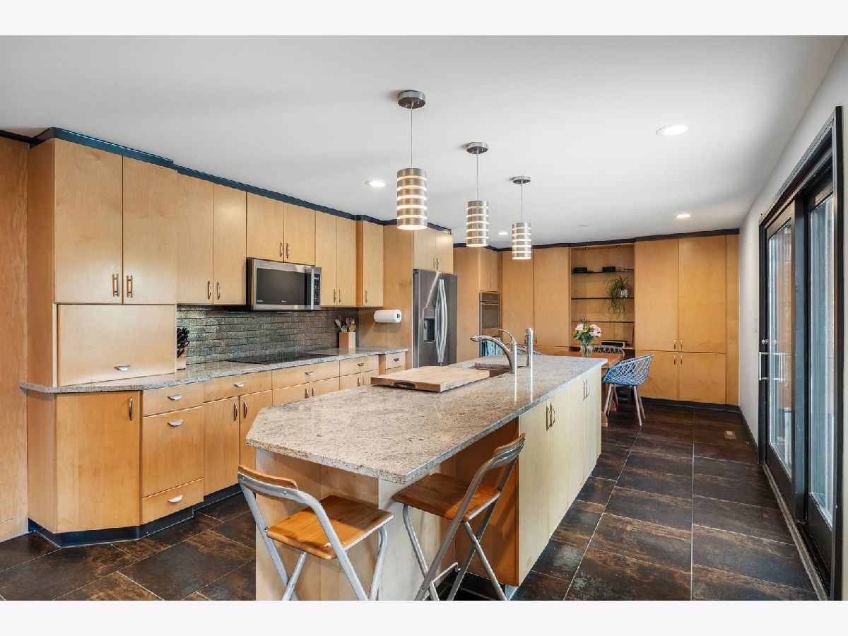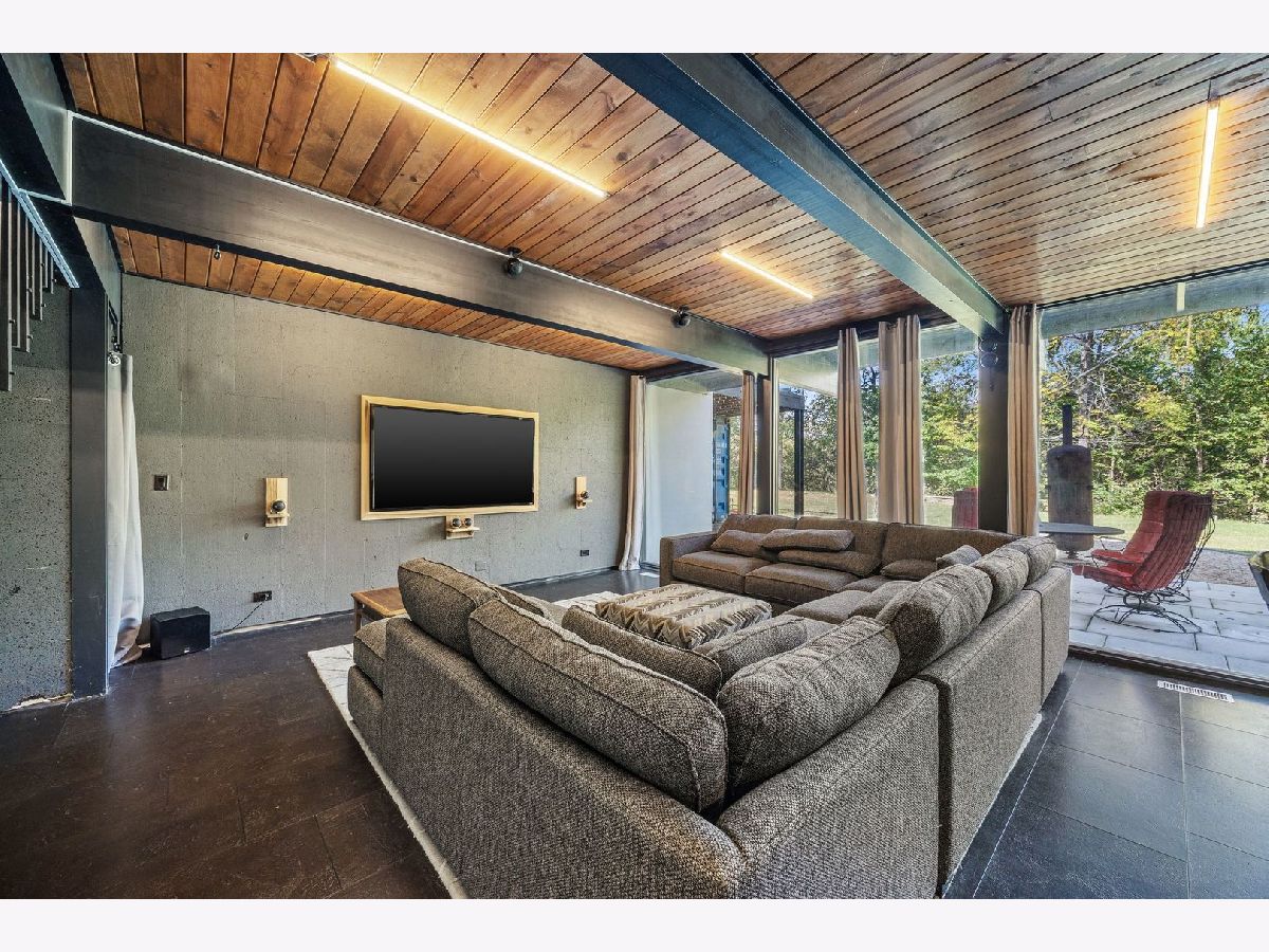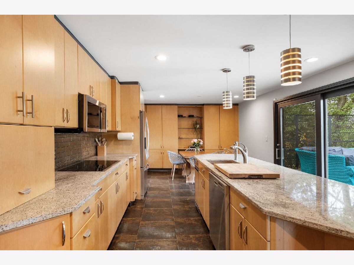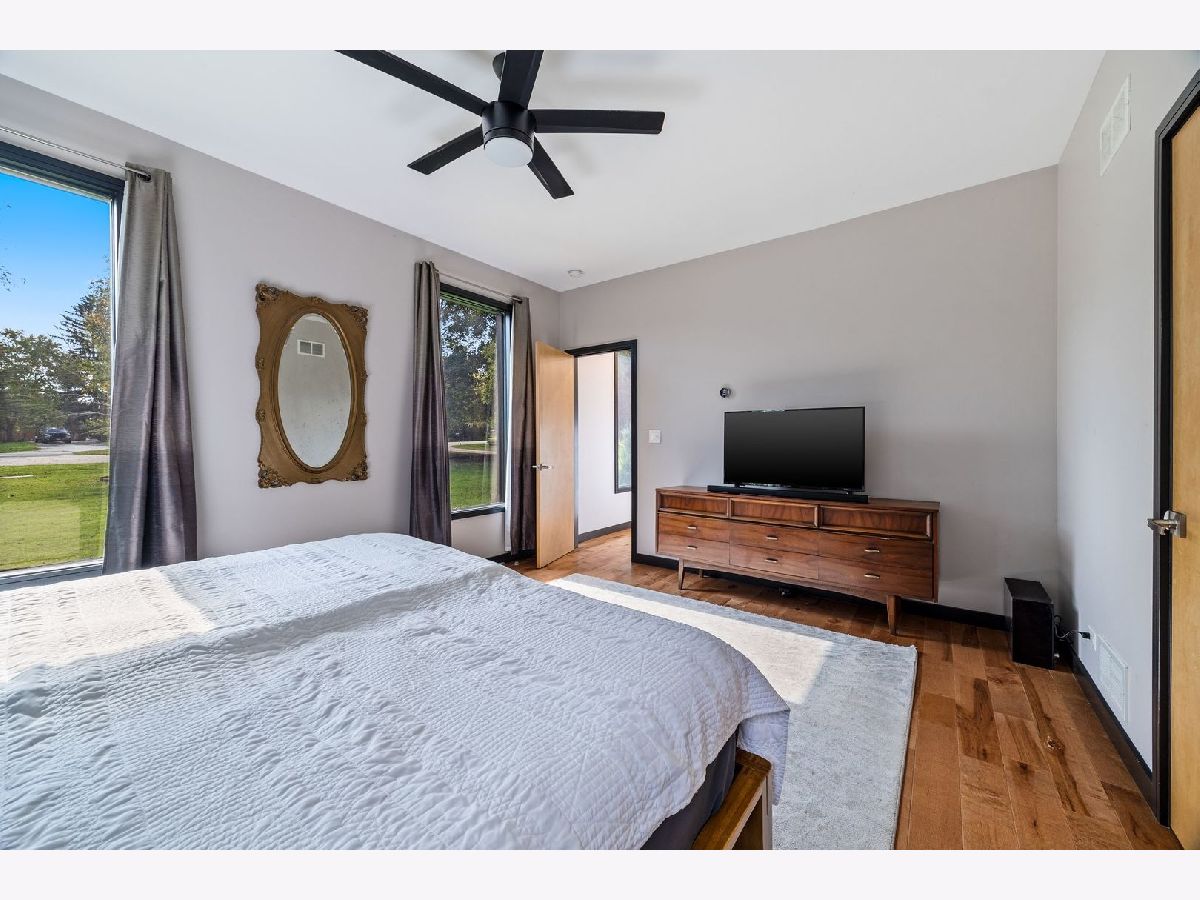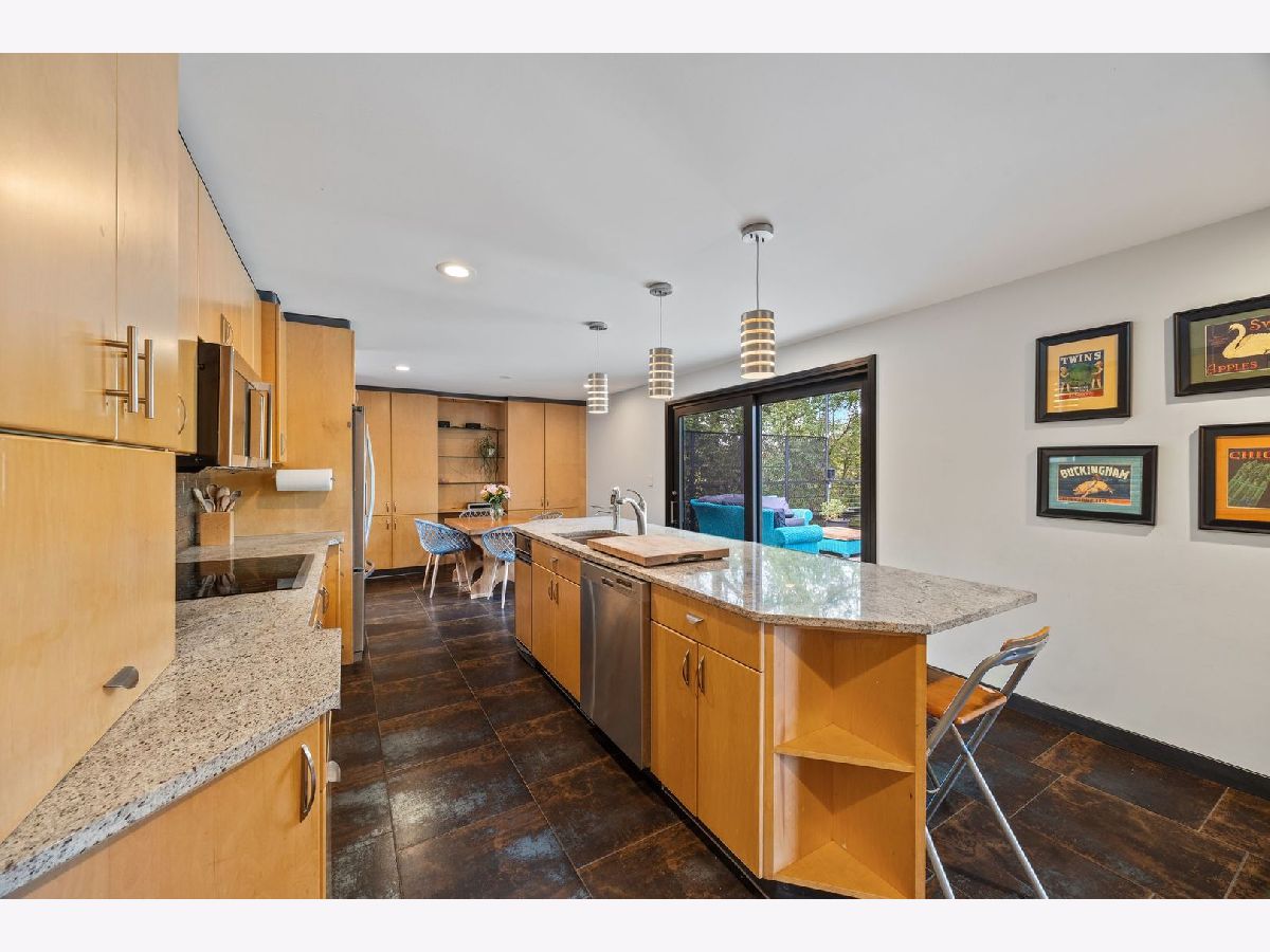 Discover a truly unique custom home nestled on a private 1-acre lot in the charming Morningside Estates subdivision. Perfectly positioned at the end of a quiet cul-de-sac and backing to the serene Tyler Creek Forest Preserve, this Mid-century Modern property offers unmatched privacy and natural beauty just minutes from I-90, downtown Elgin, Rt 31, Judson University, and Larkin High School. Approaching the home you'll notice an aesthetically pleasing ornamental pond and custom woven metal privacy wall. Step inside to find a thoughtfully updated home blending character and modern comfort. The bedroom wing was completely rebuilt in 2017 and the basement wing in 2021, showcasing quality craftsmanship throughout while adding modern conveniences. Enjoy the inviting open layout with floor-to-ceiling picture windows, exposed brick accents, hardwood floors, skylights, and a cozy fireplace that creates a warm, timeless atmosphere. The kitchen is a chef's delight featuring granite countertops, a spacious island, pendant lighting, and new sliding doors that open to a custom composite deck with built-in lighting-perfect for entertaining or relaxing while surrounded by nature. Retreat to the master suite with exposed beams, a walk-in closet, and a luxurious bath featuring a dual vanity. The finished basement adds even more living space with a tub, steam shower, recessed lighting, and plenty of room to unwind or host guests. Modern upgrades include triple-zoned HVAC, a smart thermostat, video doorbell, tankless water heater (2022), updated plumbing and electrical (2017), and new windows throughout. The property also offers a deep 2-car attached garage equipped with a 220V EV charging outlet. Additional features include a functional mud room and a shed with electricity for added convenience. If you're looking for a private, move-in-ready home that combines thoughtful design with a peaceful setting-this Morningside Estates gem is a must-see.