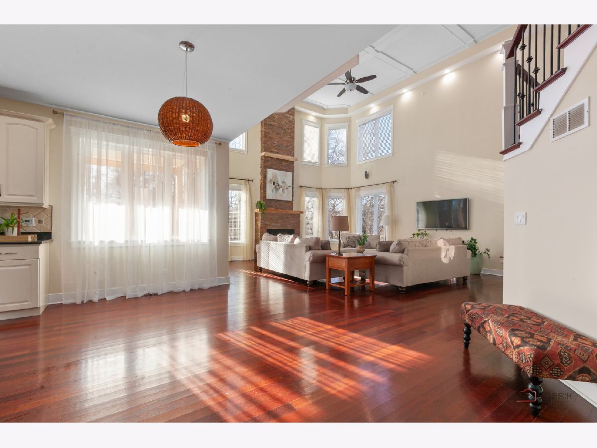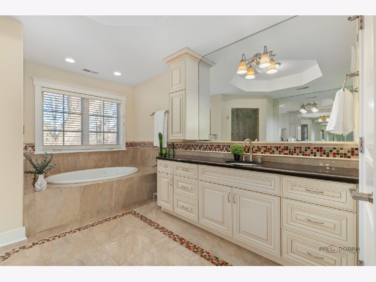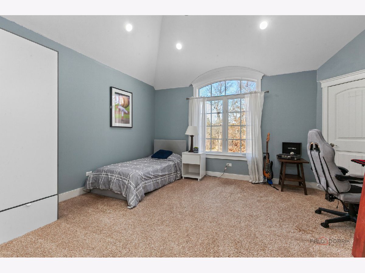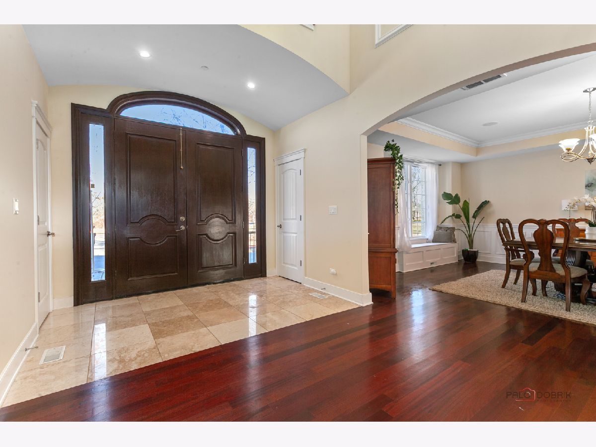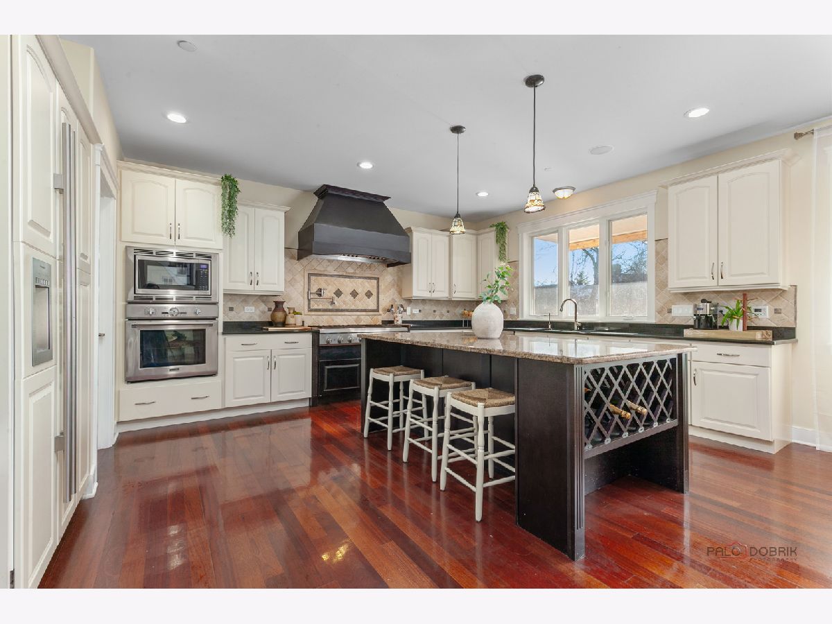 Nestled within the prestigious Grove Country Club community and just minutes from charming downtown Long Grove, this 5400+sqft stunning four-bedroom, four-bath home offers luxury, space, and architectural grandeur throughout. This exquisite 2015-built home is set on a private 1.2-acre lot enjoying picturesque golf course views along the 10th hole at Grove Country Club. Located in highly acclaimed District 96 and Stevenson High School District 125, this home combines elegance with top-tier education. A grand entrance welcomes you with a breathtaking butterfly staircase in the foyer, setting the tone for the elegance that unfolds inside. Rich Brazilian cherry hardwood flooring throughout the main level immediately sets a tone of refined luxury. The sunlit living and dining rooms are beautifully illuminated by the morning light, creating a warm and inviting start to the day. By evening, they transform into an ideal setting for entertaining, complete with easy access to a well-appointed wet bar. At the heart of the home, the dramatic two-story family room showcases a floor-to-ceiling stone fireplace and exterior access, creating an impressive and inviting gathering space. The chef's kitchen is designed to impress, featuring high-end stainless-steel appliances, a large paneled refrigerator, a massive island with breakfast bar seating, granite countertops, and a walk-in pantry. A main-level study with custom shelving and a full bath is ideal for office/guests. The large laundry/mud room offers exterior access to the east-facing side patio, where you will find yourselves enjoying a morning coffee or a yoga session. Upstairs, the luxurious primary suite includes a Juliet balcony overlooking the family room, a private outdoor balcony, and a bonus room ideal for an office, exercise space, or theater. The spa-inspired ensuite bath features a full-body spray, steam shower, dual vanities, soaking tub, and heated floors. The second bedroom offers a private ensuite bath and a walk-in closet, complemented by a charming loft-ideal for a cozy reading nook or creative retreat. Two additional bedrooms have their own walk-in closets, with one featuring its own fun loft space, perfect for kids or a personalized hideaway. A full unfinished basement provides endless possibilities for future expansion. Wood framing, insulation, and electrical work are already completed in the basement with rough-in plumbing for a bathroom. Outside, enjoy a large backyard with a spacious deck, ideal for entertaining or relaxing in a serene setting. This exceptional home offers refined living in one of the area's most sought-after communities.