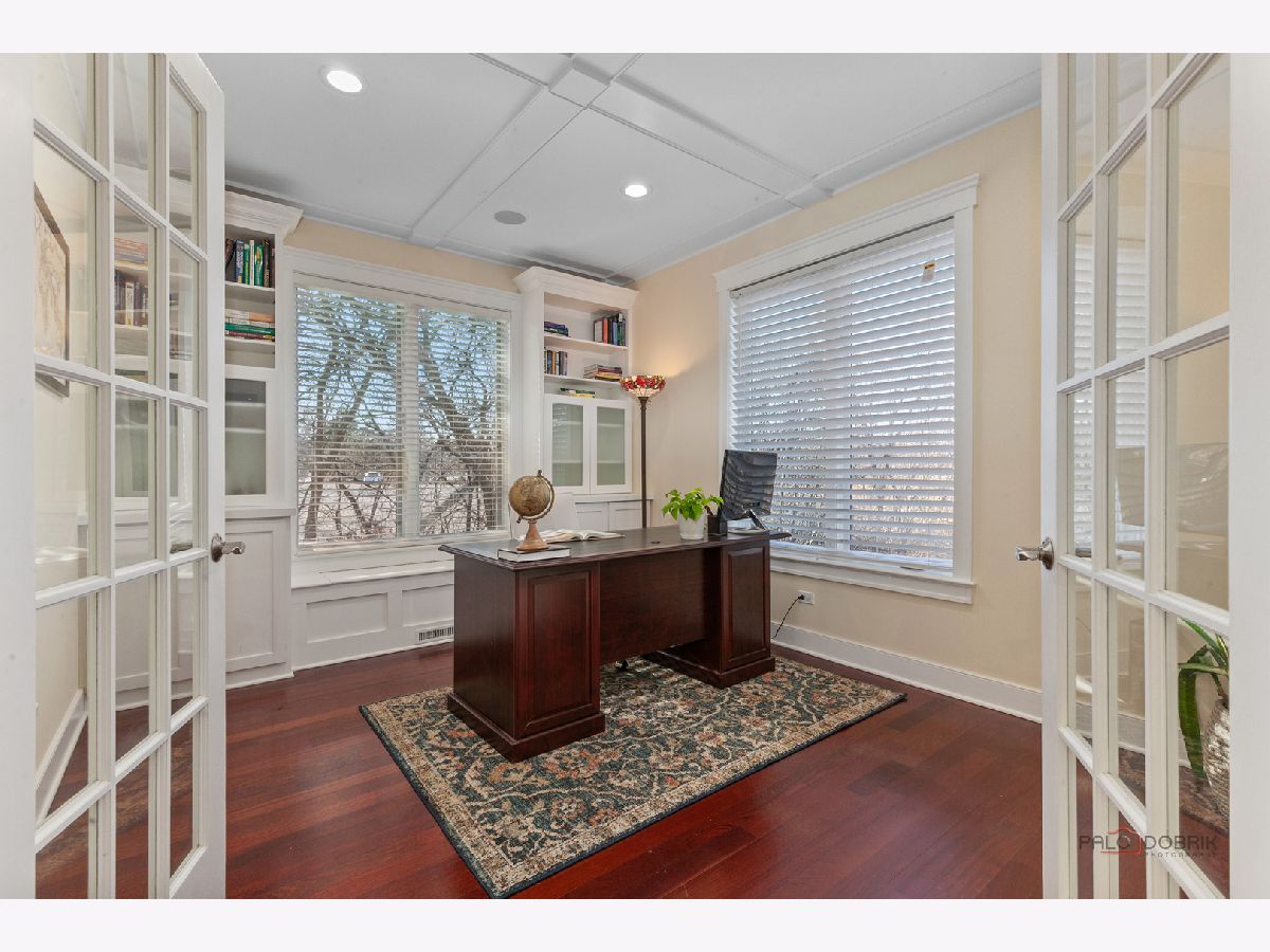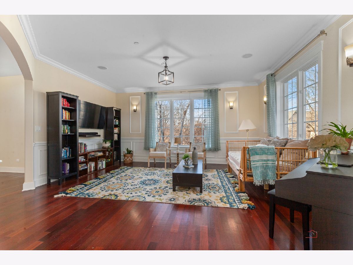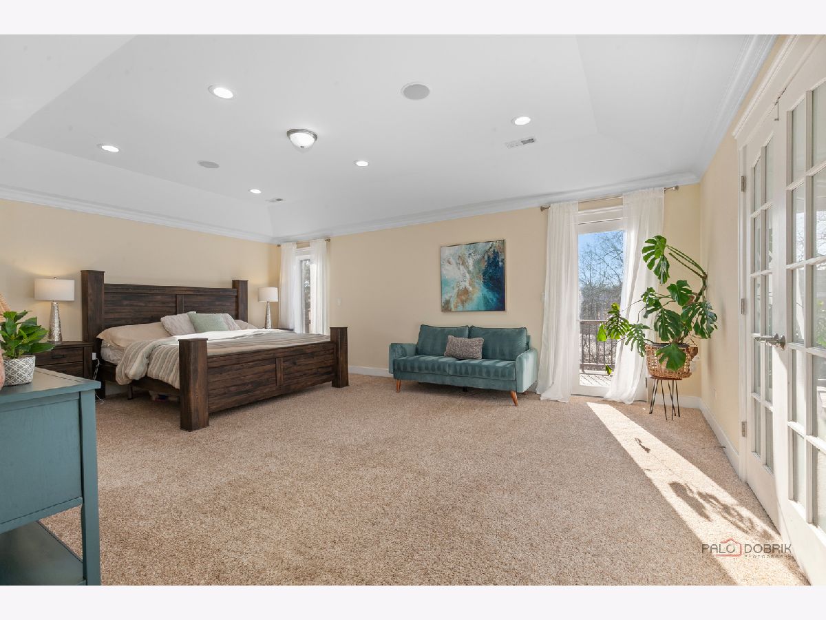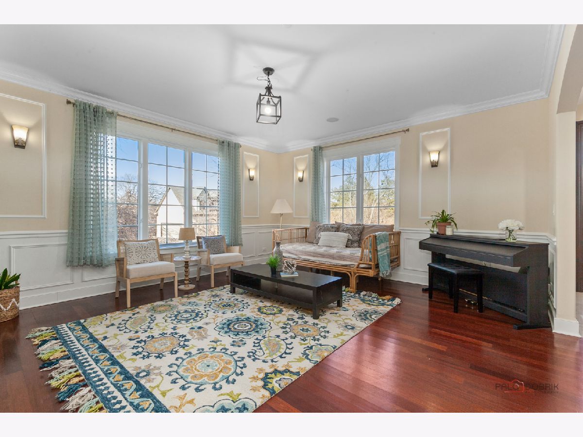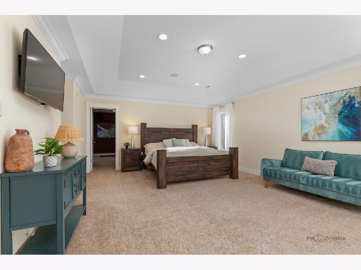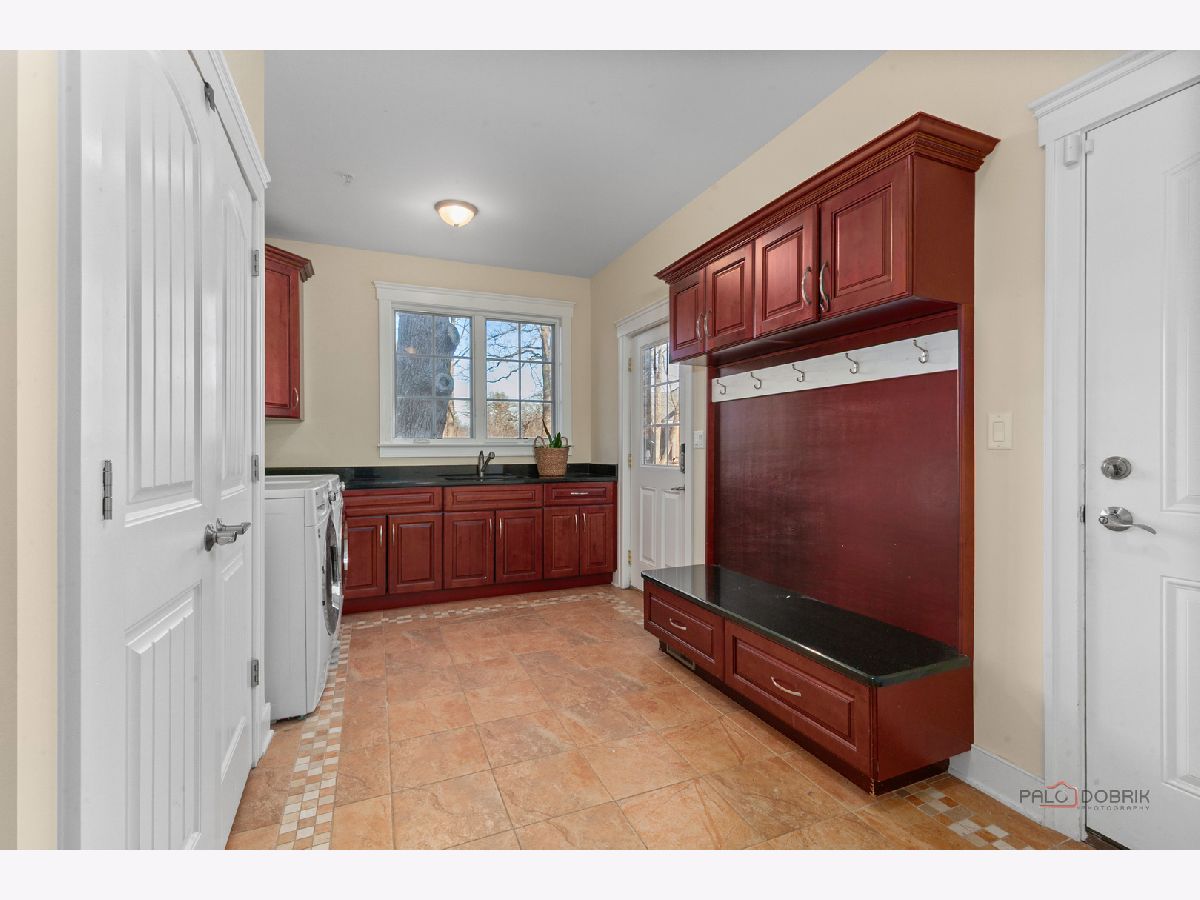 Nestled within the prestigious Grove Country Club community and just minutes from charming downtown Long Grove, this 5400+sqft stunning four-bedroom, four-bath home offers luxury, space, and architectural grandeur throughout. This exquisite 2015-built home is set on a private 1.2-acre lot enjoying picturesque golf course views along the 10th hole at Grove Country Club. Located in highly acclaimed District 96 and Stevenson High School District 125, this home combines elegance with top-tier education. A grand entrance welcomes you with a breathtaking butterfly staircase in the foyer, setting the tone for the elegance that unfolds inside. Rich Brazilian cherry hardwood flooring throughout the main level immediately sets a tone of refined luxury. The sunlit living and dining rooms are beautifully illuminated by the morning light, creating a warm and inviting start to the day. By evening, they transform into an ideal setting for entertaining, complete with easy access to a well-appointed wet bar. At the heart of the home, the dramatic two-story family room showcases a floor-to-ceiling stone fireplace and exterior access, creating an impressive and inviting gathering space. The chef's kitchen is designed to impress, featuring high-end stainless-steel appliances, a large paneled refrigerator, a massive island with breakfast bar seating, granite countertops, and a walk-in pantry. A main-level study with custom shelving and a full bath is ideal for office/guests. The large laundry/mud room offers exterior access to the east-facing side patio, where you will find yourselves enjoying a morning coffee or a yoga session. Upstairs, the luxurious primary suite includes a Juliet balcony overlooking the family room, a private outdoor balcony, and a bonus room ideal for an office, exercise space, or theater. The spa-inspired ensuite bath features a full-body spray, steam shower, dual vanities, soaking tub, and heated floors. The second bedroom offers a private ensuite bath and a walk-in closet, complemented by a charming loft-ideal for a cozy reading nook or creative retreat. Two additional bedrooms have their own walk-in closets, with one featuring its own fun loft space, perfect for kids or a personalized hideaway. A full unfinished basement provides endless possibilities for future expansion. Wood framing, insulation, and electrical work are already completed in the basement with rough-in plumbing for a bathroom. Outside, enjoy a large backyard with a spacious deck, ideal for entertaining or relaxing in a serene setting. This exceptional home offers refined living in one of the area's most sought-after communities.