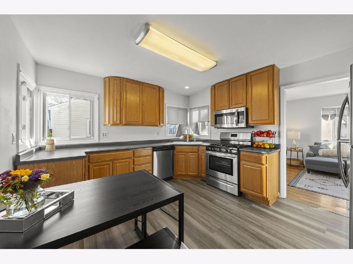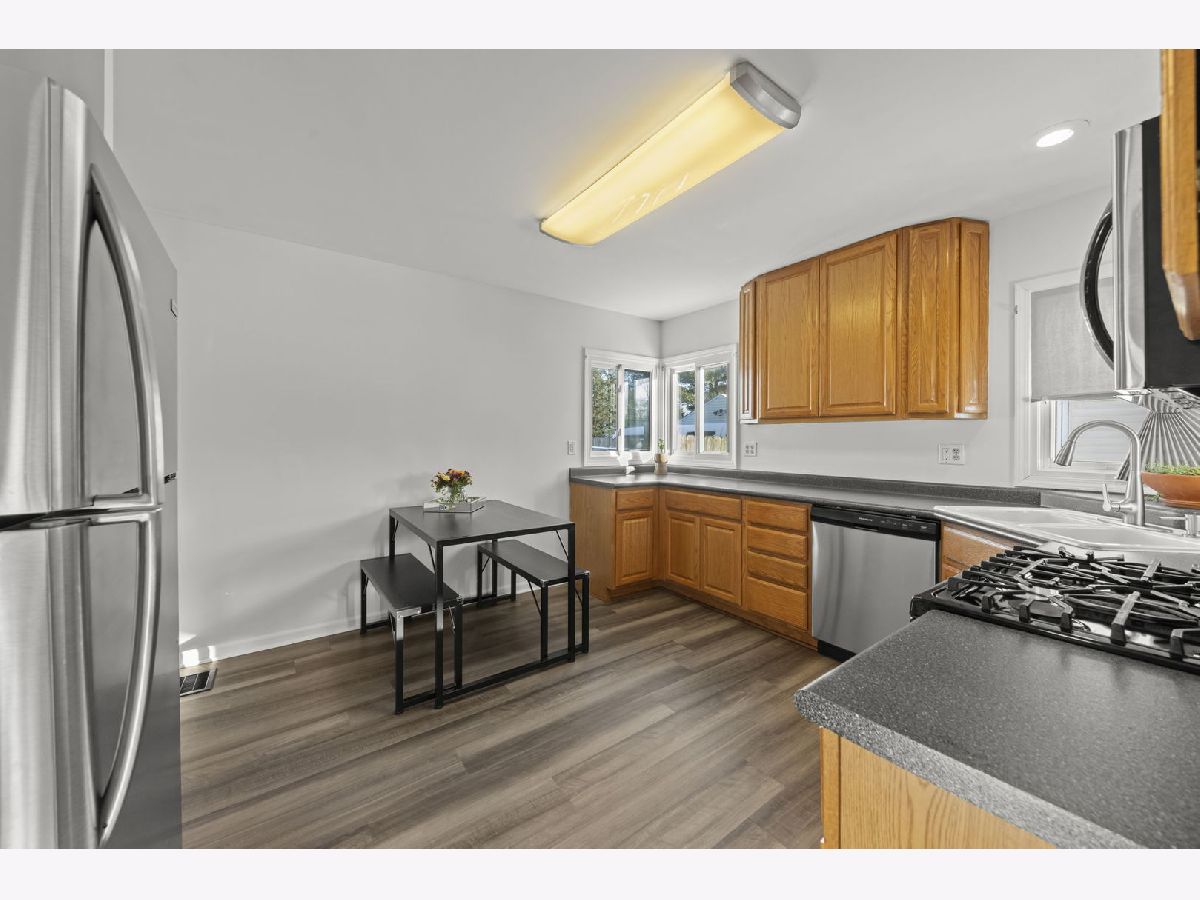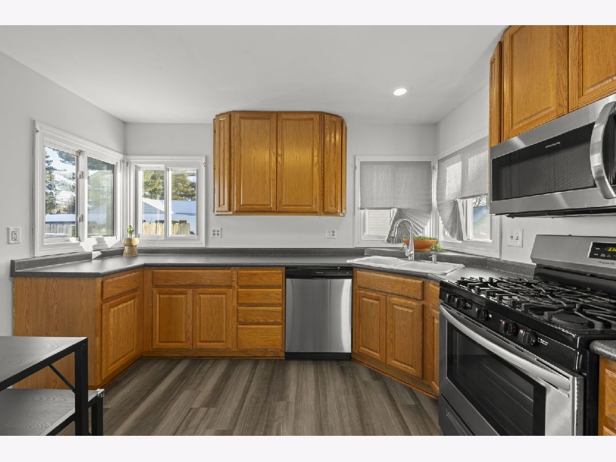Remarks: PERFECT STARTER HOME where all the work has been done! This adorable 2 bedroom, 1 bathroom home is totally move-in ready. See the huge list of updates and upgrades below. Comfortable and bright living room. Modern eat-in kitchen with newer appliances, cabinets, and countertops as well as lots of storage space. Master bedroom with big walk-in closet. Bonus room at the rear of the home could be an additional living space, home office, or (with a little modification) a 3rd bedroom! A new sliding glass door leads to a private back yard with deck and patio all surrounded by privacy cedar fence. 2 car heated garage with a shop. Great location close to West Aurora High School, Aurora University, Blackberry Farm, and Vibrant Downtown Aurora! // UPDATES: Bathroom (2025), Luxury Vinyl Plank flooring in Kitchen/Dining/Laundry (2025), Exterior Lights (2025), Kitchen Faucet (2025), Sliding Glass Patio Door (2025), Interior Paint (2025), Refinished Deck (2025), Fence Repairs (2025), Roof/Gutters/Downspouts (2022), Furnace (2021), Stainless Steel Kitchen Appliances (2021), Washer/Dryer (2021).