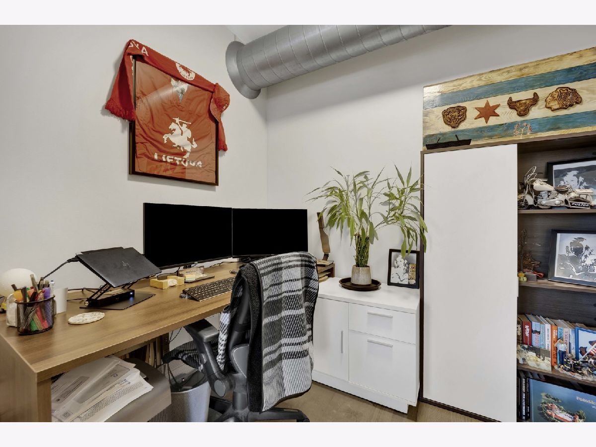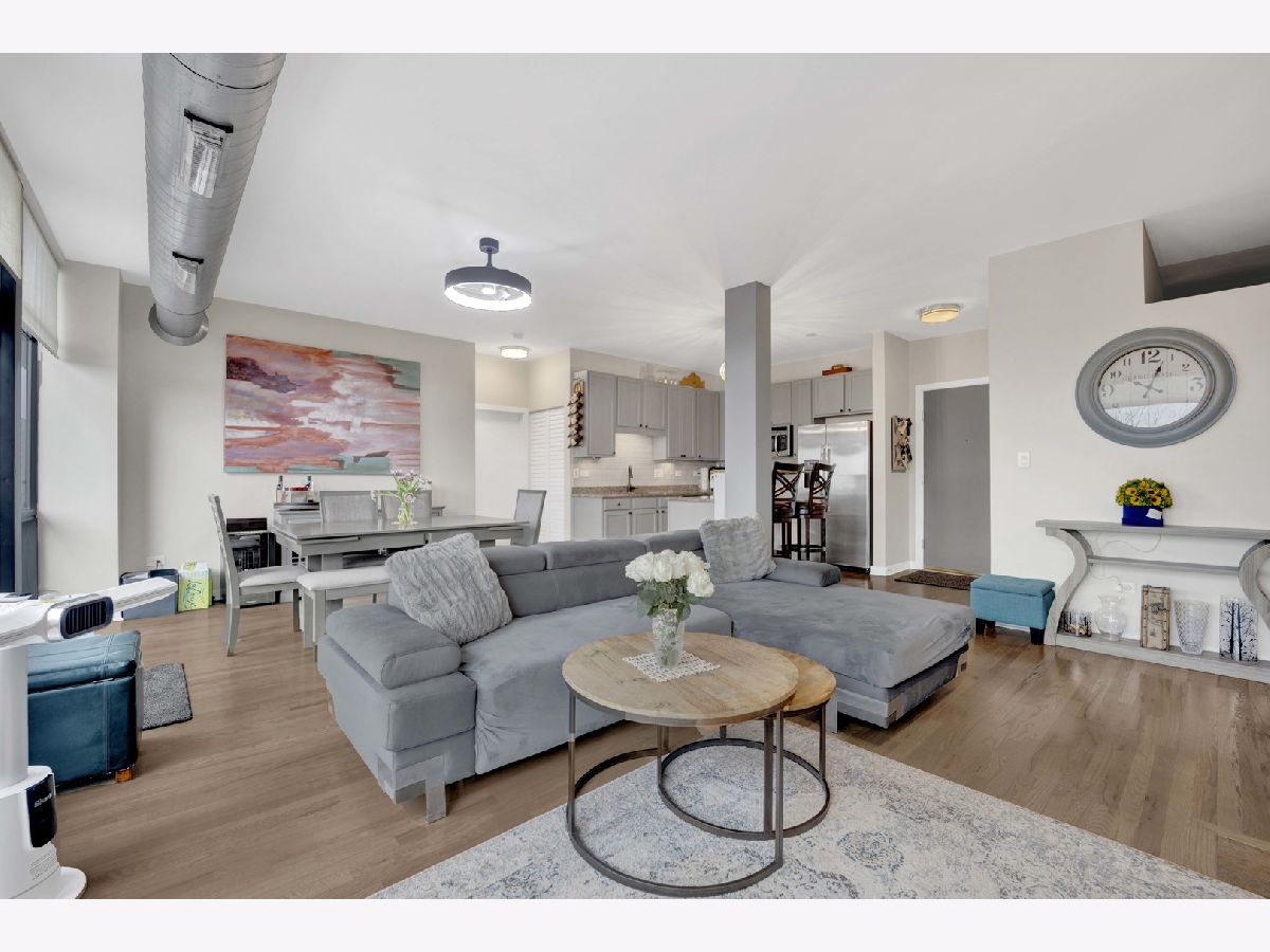 This highly upgraded 2-bedroom, 2-bath penthouse with an additional office/den sits atop a sought-after historic loft building in University Commons, ideally positioned between the West Loop and Pilsen neighborhoods. Inside, the home has been thoughtfully refreshed with a recently updated kitchen, fresh paint, and hardwood floors throughout, creating a clean, modern feel that stands out from other units in the building. The south-facing layout floods the space with natural light, enhanced by floor-to-ceiling windows that span the main living areas. The floor plan is one of the most desirable in the complex, featuring two fully enclosed bedrooms and a versatile 9x7 den, perfect for a home office or flex space. Step outside to your private 20x6 deck, ideal for grilling or unwinding. Additional features include granite countertops, stainless steel appliances, in-unit washer and dryer, and ceiling fans throughout. Monthly assessments include internet for added convenience. Residents enjoy access to a full suite of amenities including a fitness center, outdoor pool, recreation rooms, and a private movie theater. Perfectly situated for commuters, University Commons offers easy access to I-90/94, I-290, and Lake Shore Drive, along with nearby CTA options including the Pink Line (Polk and Ashland stations), the Blue Line at Racine, and multiple bus routes along Halsted, Ashland, and Roosevelt. This central location makes getting to the Loop, West Loop, Medical District, and beyond quick and convenient. Garage parking available for an additional cost.