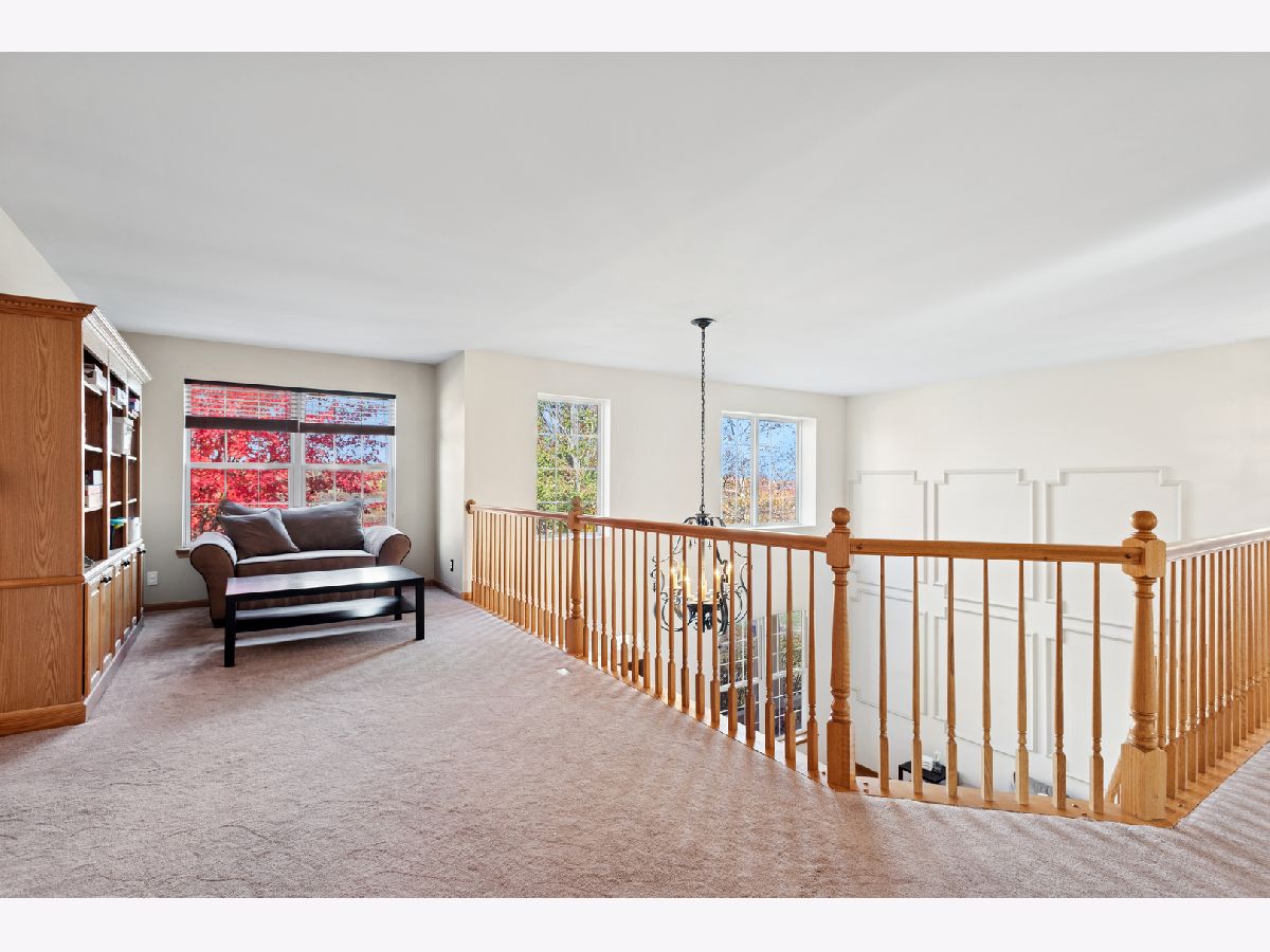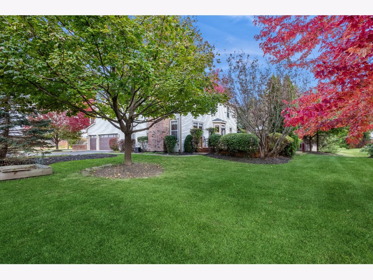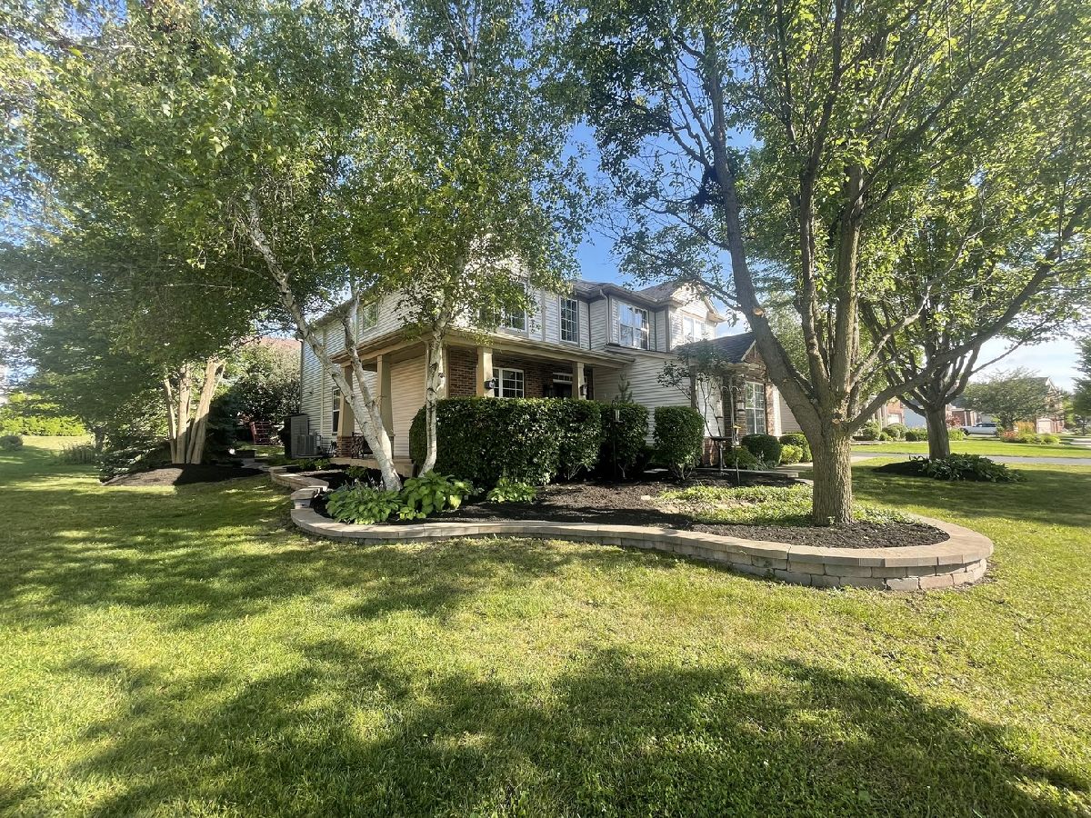 Former model home for the subdivision with many extra upgrades. Peaceful backyard setting, the sparkling water views, or the sunsets on the wrap around front porch, soaring ceilings, solid oak doors, black hardware and hinges throughout plus a warm and inviting charm that's unmatched in today's market. Walk into the 2 story foyer and living room with cathedral ceilings, custom accent wall, wall of windows, coat closet. Kitchen, open to family room, granite counters, stone back splash, Stainless Steel appliances, Thermador oven and dishwasher, eat in area, island, pantry, under cabinet lighting, canned lighting, door to backyard, eat in area. Formal dining, trayed ceiling, wainscotting. The cozy gas, fireplace, with brick front accents is the focal point of the family, open to the kitchen, built in storage cabinet. Home office with floor to ceiling, custom built-ins, bay window. Powder room, updated toilet, granite counters, crown molding. 1st floor full laundry, washer/dryer stay, cabinets, utility sink, door into garage. As you enter the 2nd floor the large loft gives a stunning view of the whole first floor, built in bookcases, great for many uses. Nice size hall utility closet. Primary bedroom, his-n-hers walk in closets, double doors, ceiling fan with lights, vaulted ceiling, wainscotting with ensuite, separate soaker tub, walk in shower beautifully appointed with custom tile work, niche, seat, dual sinks, heated floors. Jack-n-Jill bath between bedrooms 1 and 2, separate tub/shower and commode area, dual sinks in other area. Bedroom 3 has walk in closet. Basement room with studded walls and electricity, other open area for rec/game/other uses, egress window, crawl space for extra storage. The back-yard oasis with wild flowers and perennials, delivering the perfect escape, enormous, tree lined deck with many available places for seating, could put a gate on the deck, custom fire pit, Curvilinear pavers around sidewalks and brick patio, trellis with clematis vine, raised bed garden, shed, invisible fencing. 3 car side load garage, cabinets, extra wide, asphalt driveway for extra parking or easy turn around. Enjoy Walnut Woods Park with basketball courts, sand volleyball, open green space, pavilion, areas of wood/ponds and marshes. Updates: '25 freshly painted, deck power washed, toilet in 1/2 bath: 20' water heater, 21' radon, invisible fence, sump pump, 19', air conditioning, refrigerator, roof, 16' dishwasher, oven, Furnace & a/c have been serviced every 6 months. All of this just moments to I-88 as well as everything from scenic walking paths to round of golf or quick grocery run. Kaneland schools. Could do a quick close.