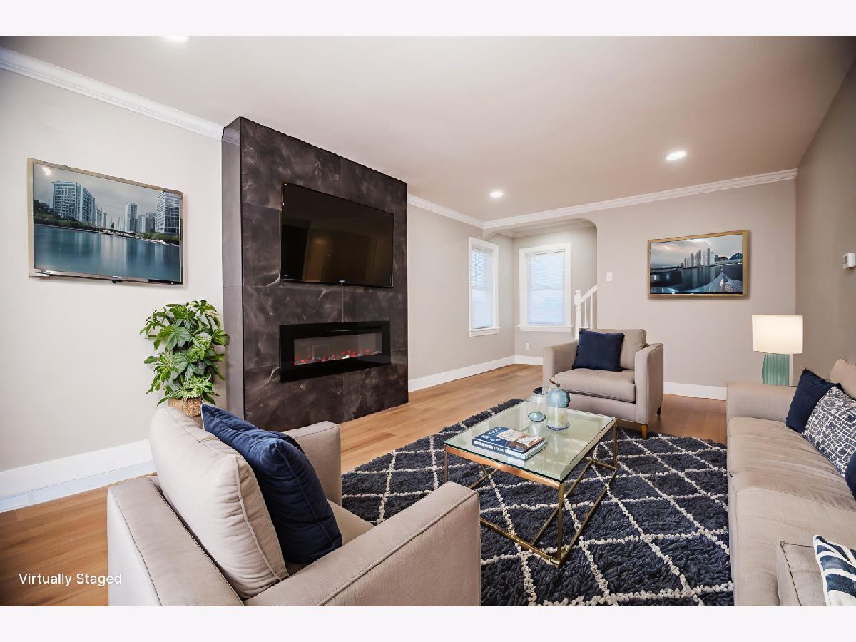 Beautifully rehabbed 3-bedroom, 2-bath Cape Cod home just minutes from downtown Chicago with easy freeway access. This light filled Cape Cod single-family home offers a modern, updated design and worry free living featuring three bedrooms and two full baths, a full basement, back yard space w/concrete patio area and a detached 2 car garage all sitting on a spacious corner lot! Must come to see this home today for a walk-through! You will not be disappointed! Thoughtfully renovated on the inside and the outside, all updates providing long-term value and low maintenance. The layout will impress--Upon entering the home you are greeted with the bright modern kitchen which flows nicely into the adjoining dining area, perfect for everyday living and entertaining. Continue into the living room featuring an electric fireplace adding to the coziness....continue and head upstairs where two spacious bedrooms and a full bath await. The 3rd bedroom, located in the basement, allows for additional privacy and an entry off the patio back door. You will also find additional storage in the basement, mechanical/laundry area. Excellent opportunity for first time homebuyers as there is nothing to do but move right in and start building equity! Schedule your walk-through today with your favorite realtor before this rehabbed beauty is gone!