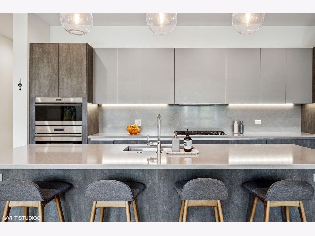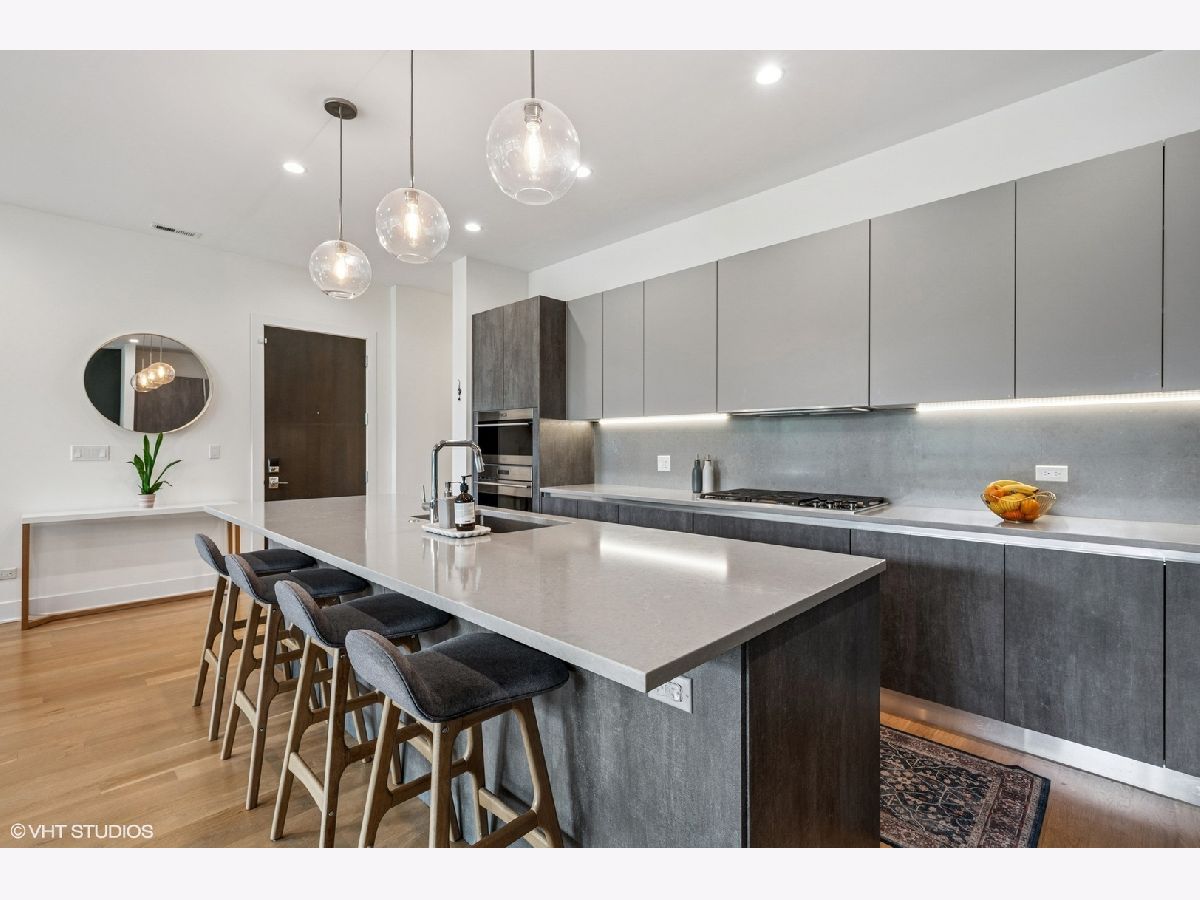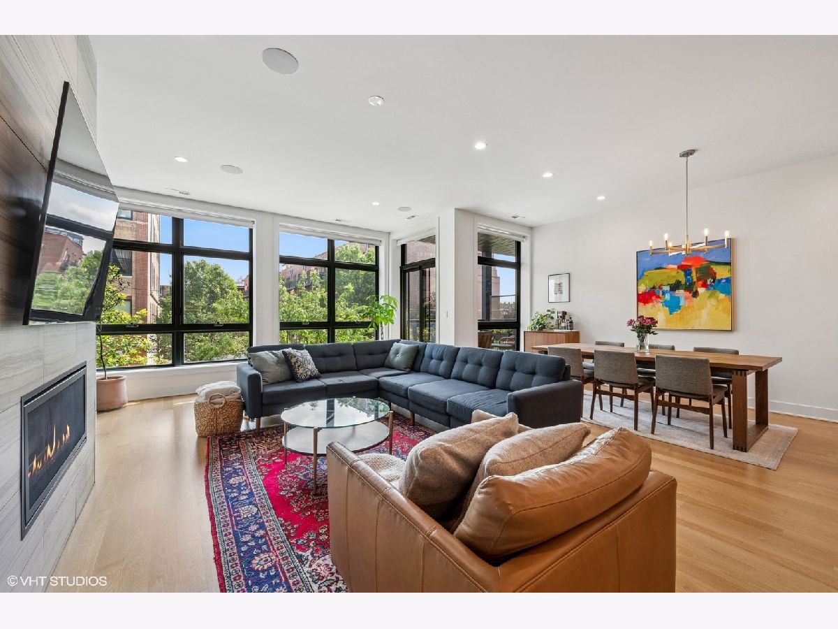 Stunning 3 bedroom 2.1 bath condo in wonderful boutique 8-unit elevator building. At the nexus of West Town, River North and Fulton Market. Modern and open 1927 sq. ft. floor plan with huge windows and amazing south exposure. Unit is flooded with light. Wonderful, highly upgraded kitchen featuring Bosch, Sub-Zero and Miele appliances, Italian cabinetry, Caesarstone countertops. Primary bedroom features great organized closet, wonderful bath with double vanity, soaking tub, and radiant heated floors. Unit has 4" solid oak floors, GBFP, upgraded light fixtures, motorized blinds, and Nest system. Unit has large (17x23) private rear deck over the garage with new pressure treated lumber and a lovely front terrace off the public rooms.Full masonry building with concrete floors. 9.5"+ ceilings throughout the unit. 1 car garage parking with EV charging station. Location is ideal: a 10 minute walk to the Grand Ave Blue Line stop, 2 minute drive to 90/94, close to Randolph Street and Loop. Perfect neutral decor. Move right in. Easy to show.